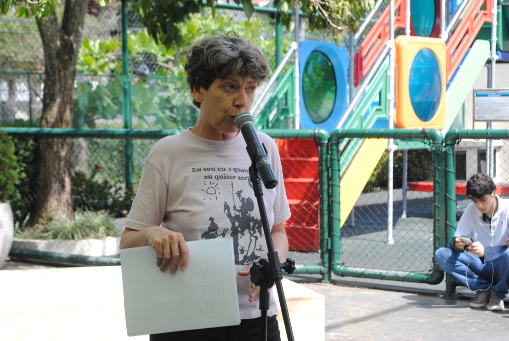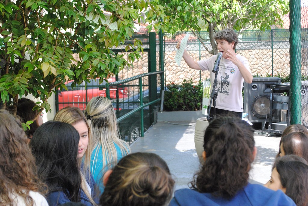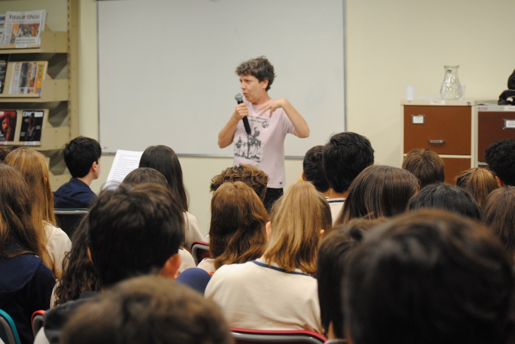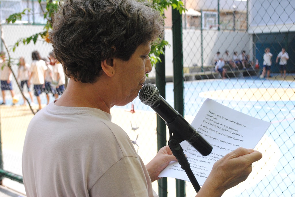 Além da palestra, Dília Gouveia aproveitou a vinda e declamou poesias durante o recreio.