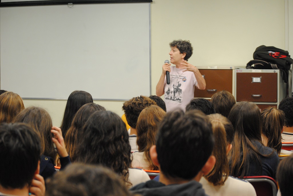 Como parte da programação do nosso Mês Literário, recebemos a visita da filósofa e artista portuguesa Dília Gouveia. A amante declarada da literatura, nascida em Lisboa, veio trazer aos alunos do 8º ano uma apresentação sobre a biografia, o cotidiano e o ambiente de Fernando Pessoa, um autor tão consagrado.