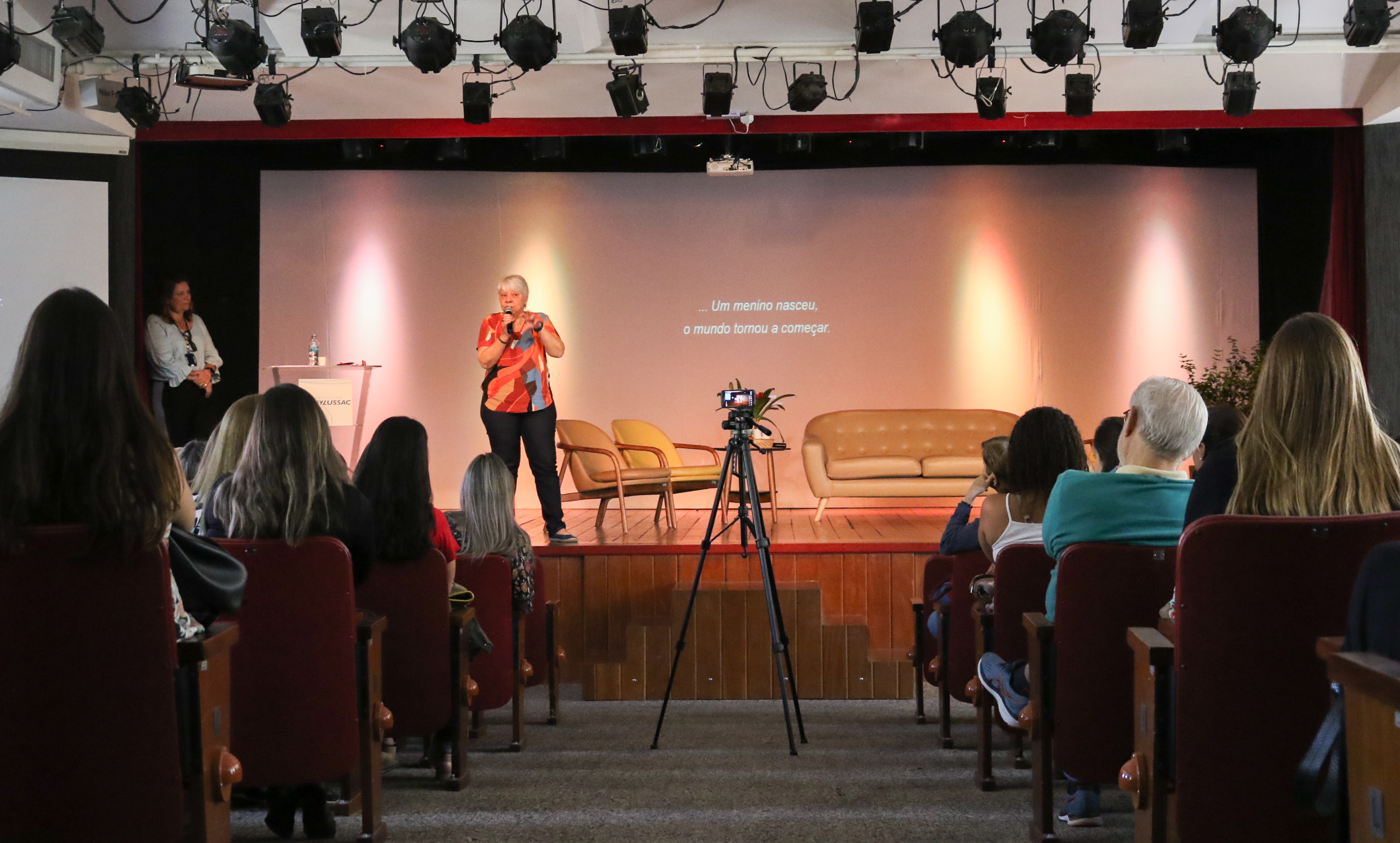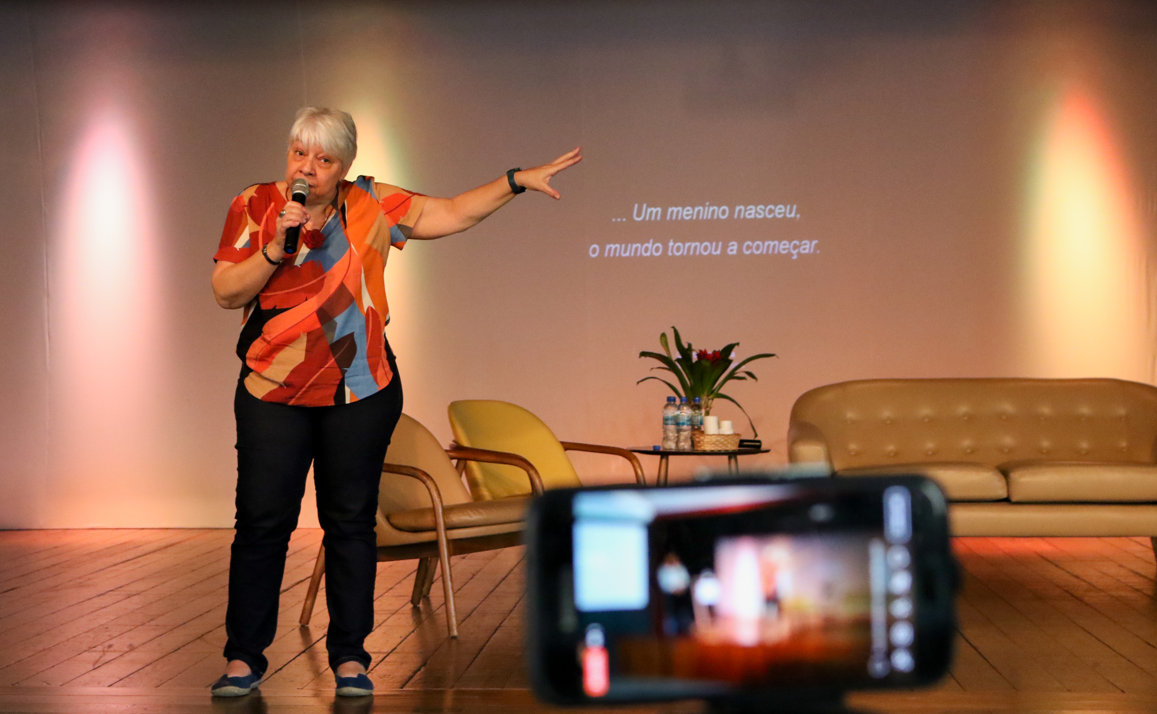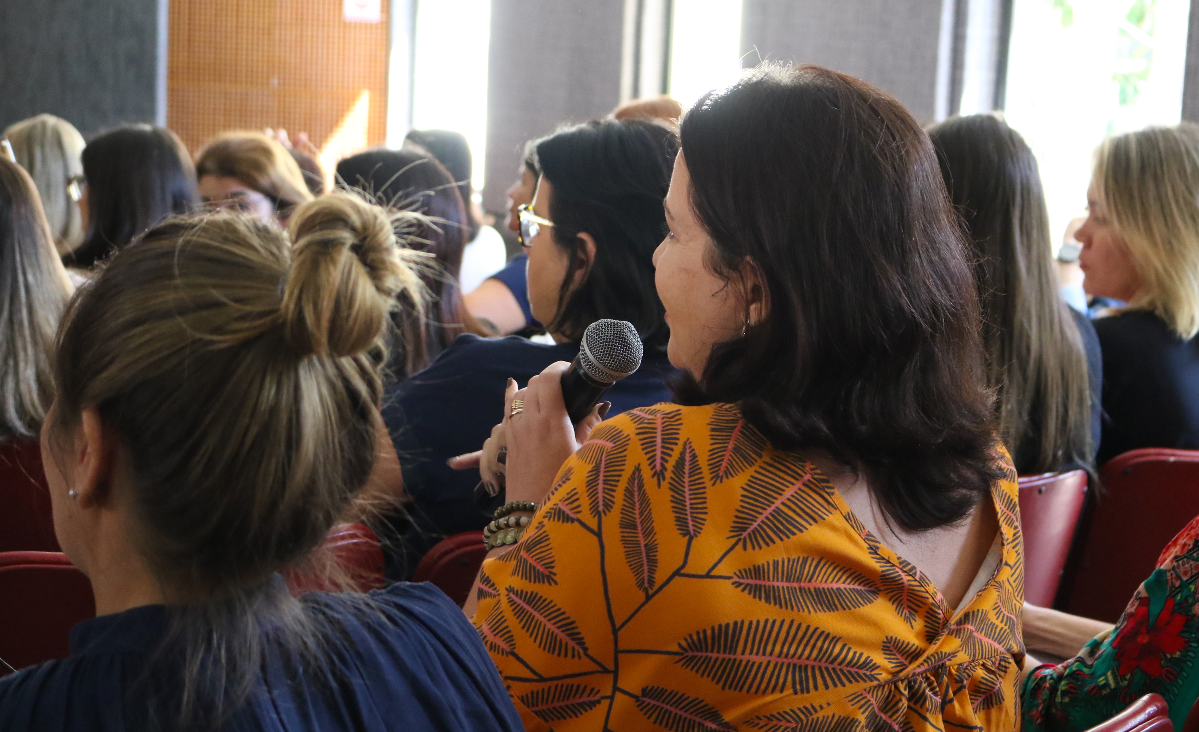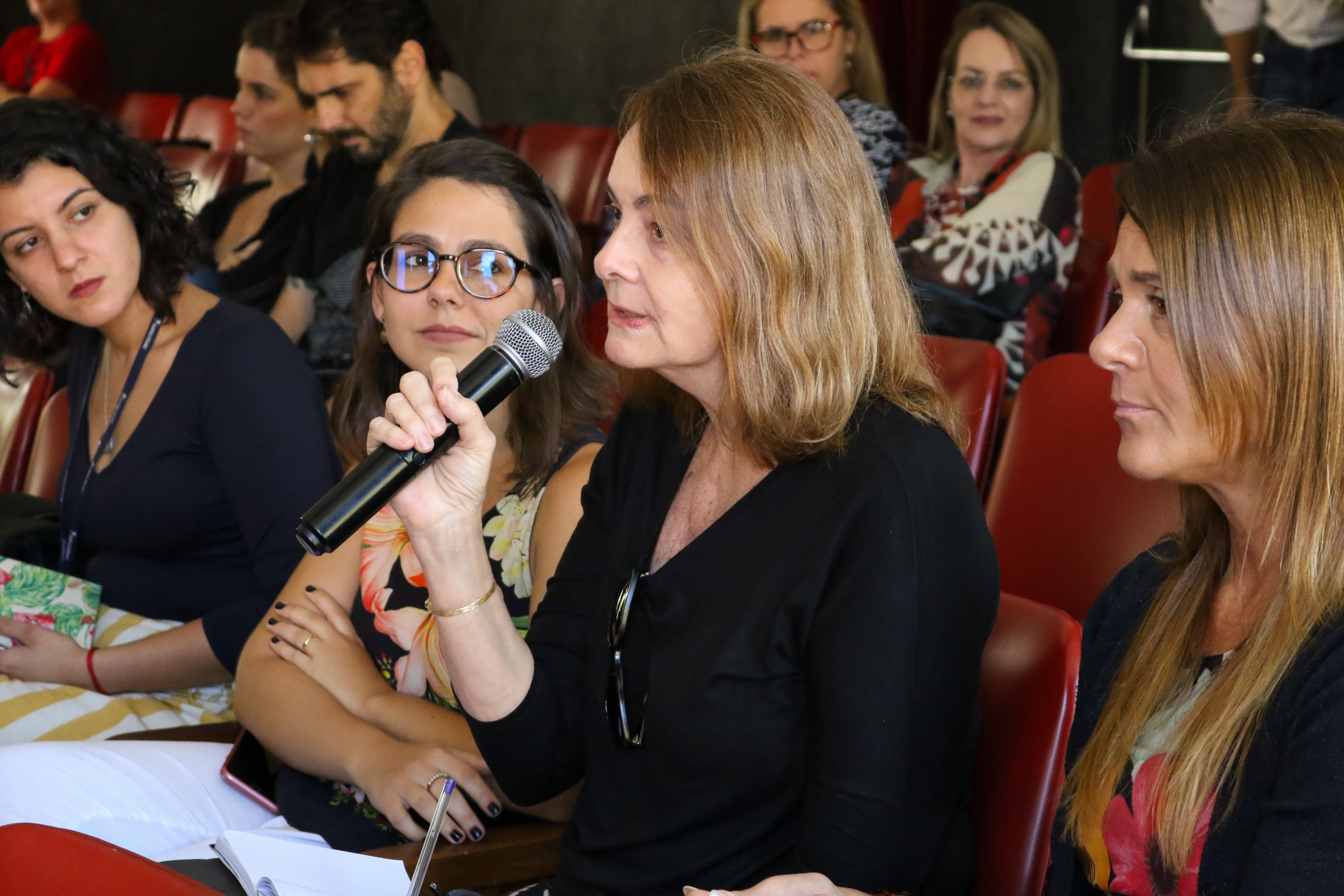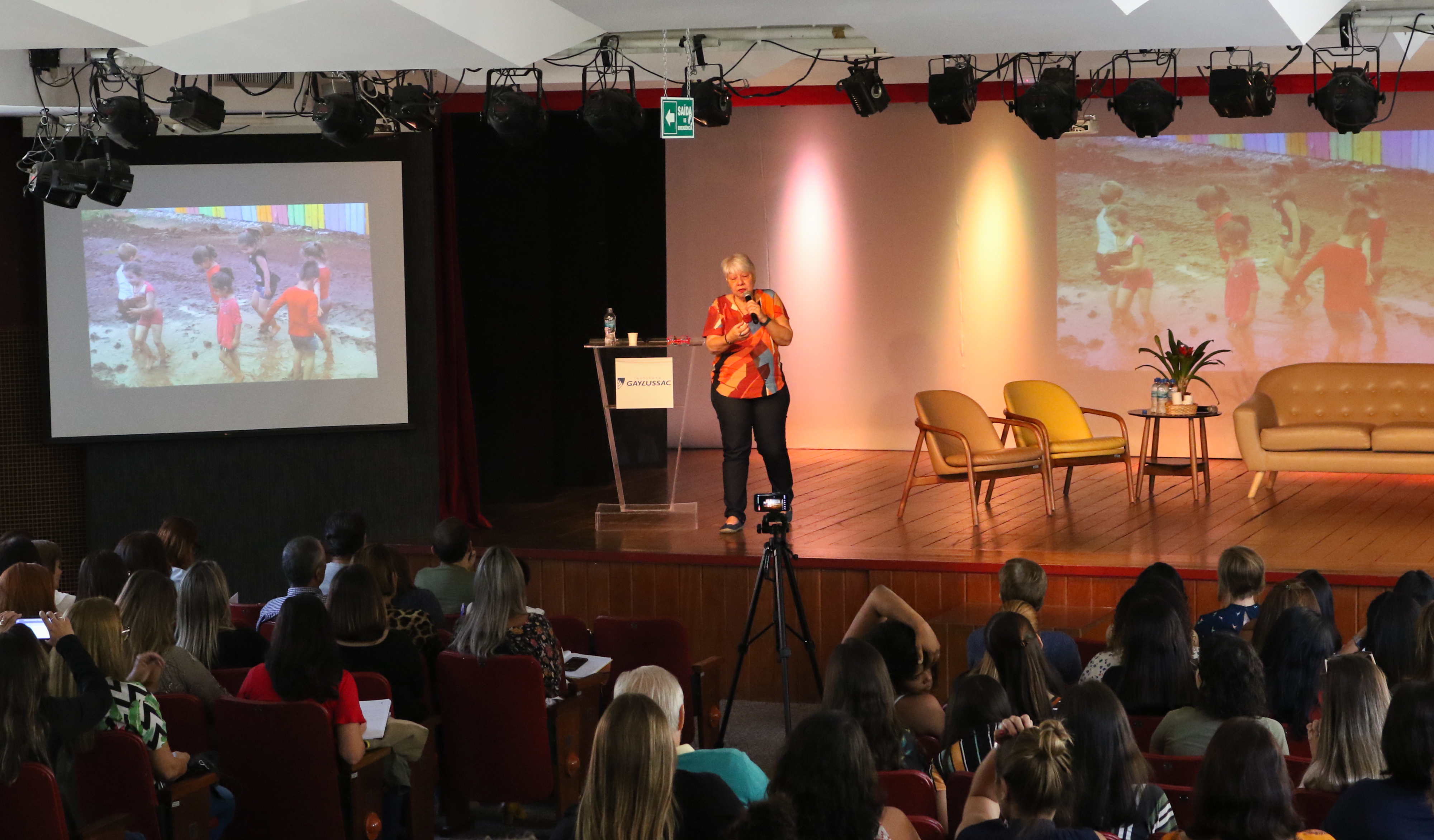 A palestra da professora da UFRGS, Dra. Sandra Regina Simonis, provocou indagações sobre a primeira infância como instância e experimentação. “Os professores de 0 a 3 anos precisam perceber que todos os começos estão ali. Vir ao mundo é vir à linguagem e a grande questão dos adultos é a inserir as crianças nesse universo da linguagem. As artes, ferramentas essenciais para isso, são plurais, são relatos irredutíveis e estão presentes desde os tempos imemoriais”.