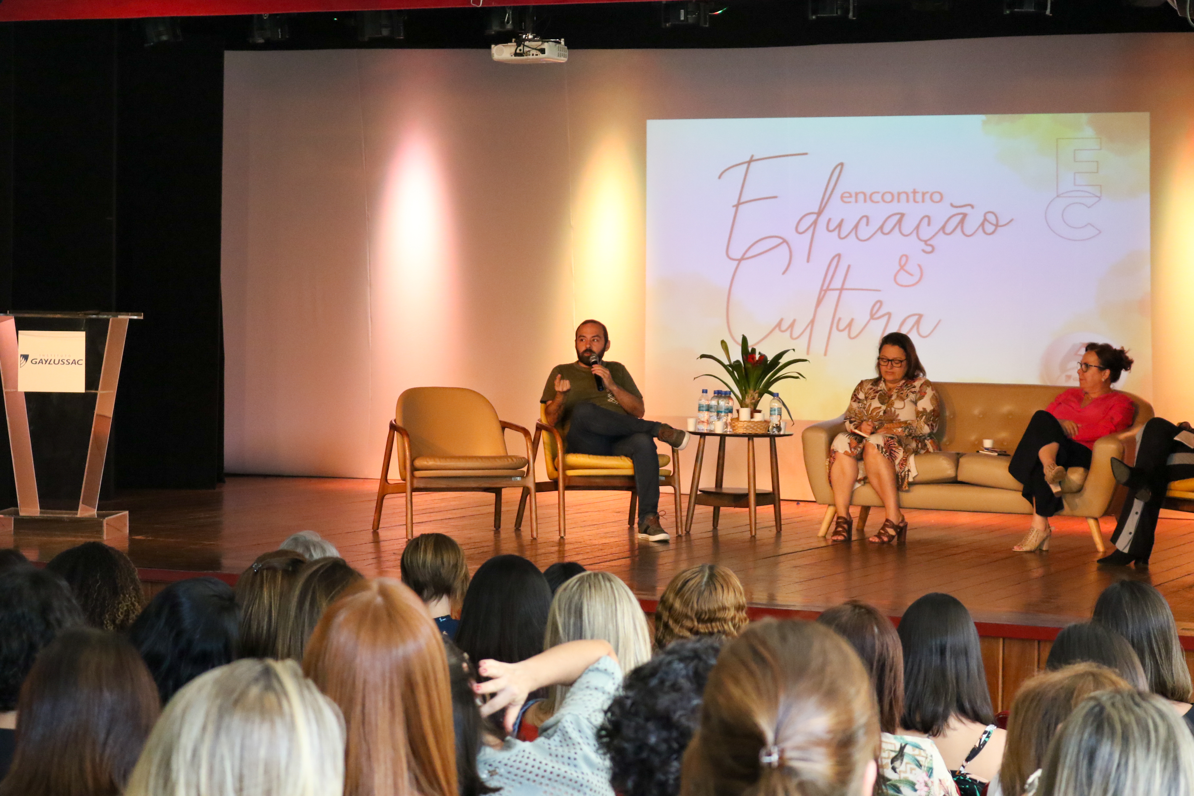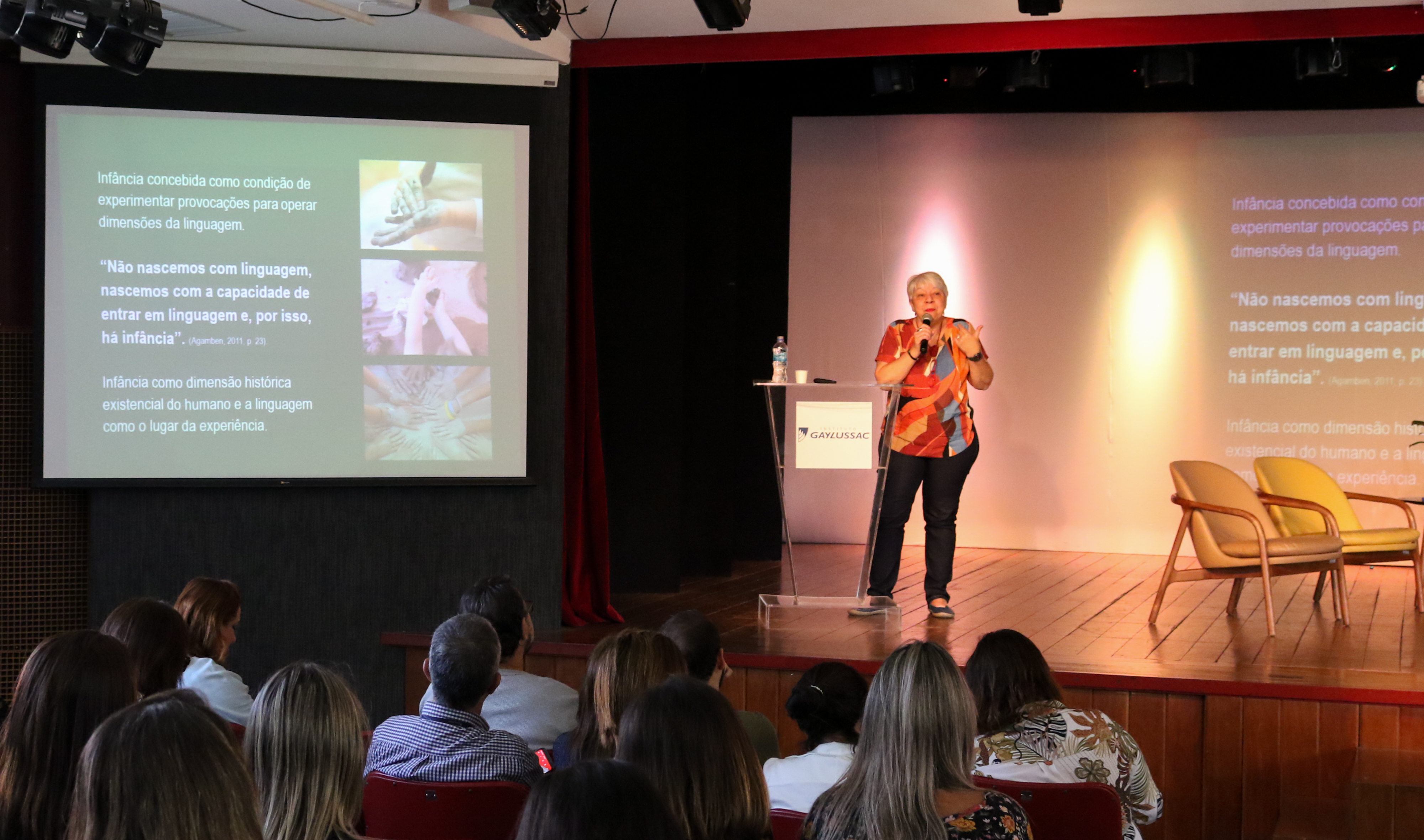 Em comemoração aos 65 anos da escola, o Teatro Gaylussac foi palco de um evento que se propôs travar um diálogo entre Educação e Cultura, público e privado, infância e arte. No dia 31 de agosto foi momento de refletir a função social da escola em uma era em que “tudo que é sólido se desmancha no ar”. Pois é no diálogo que nos humanizamos. Presentes estavam professores da escola, artistas e a comunidade da cidade, em uma manhã de rico de debate.