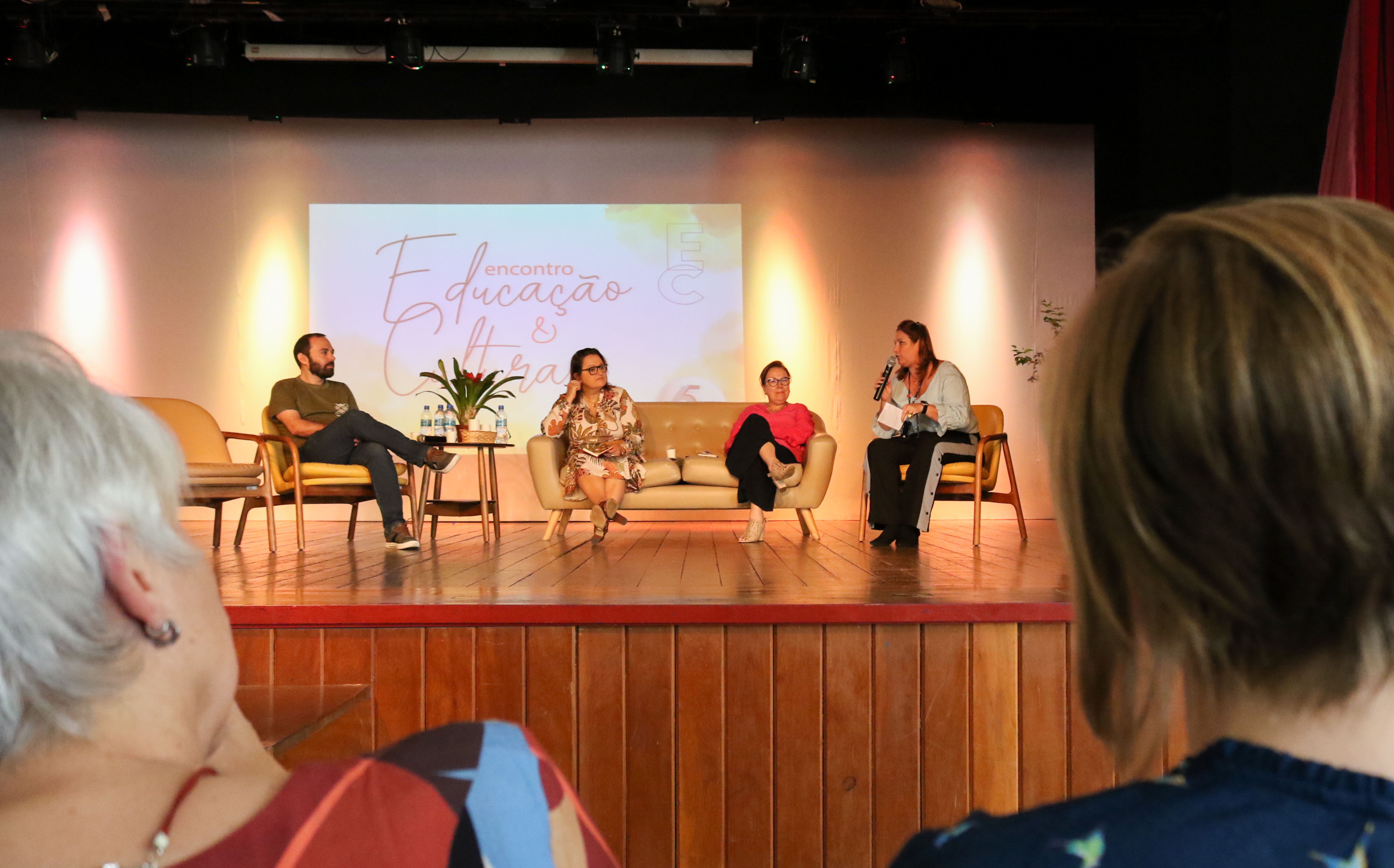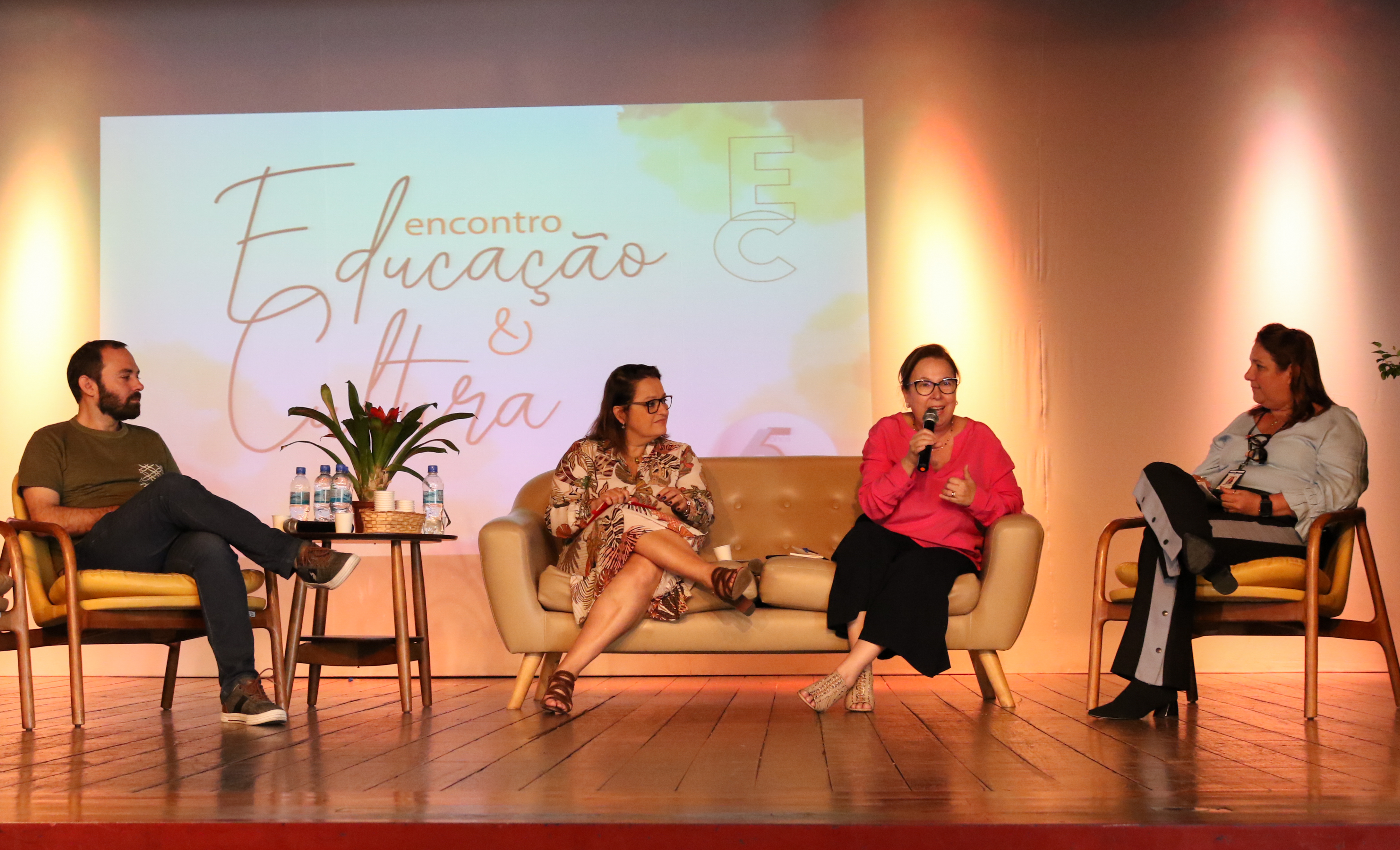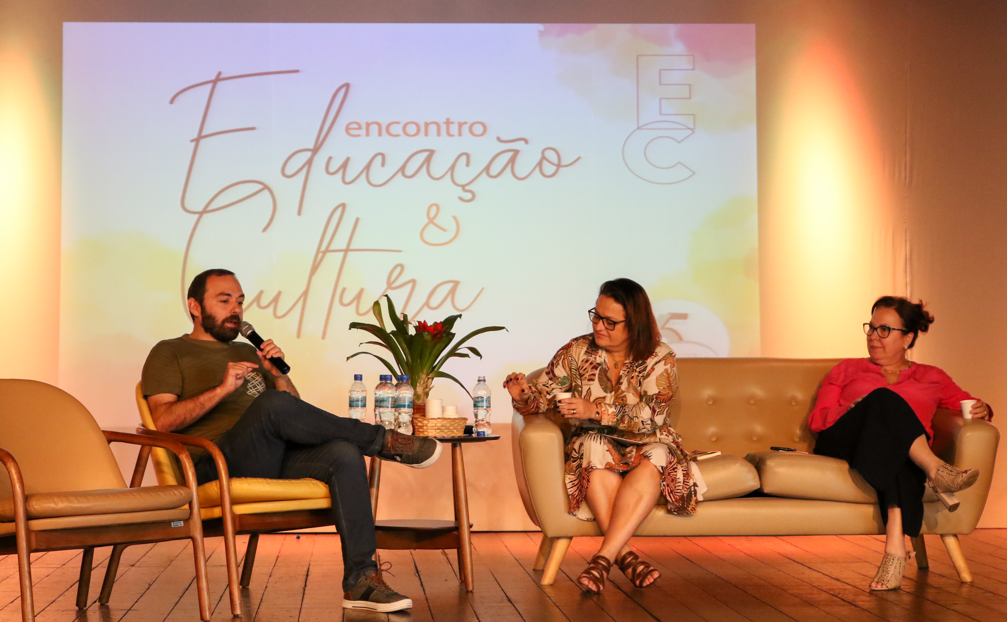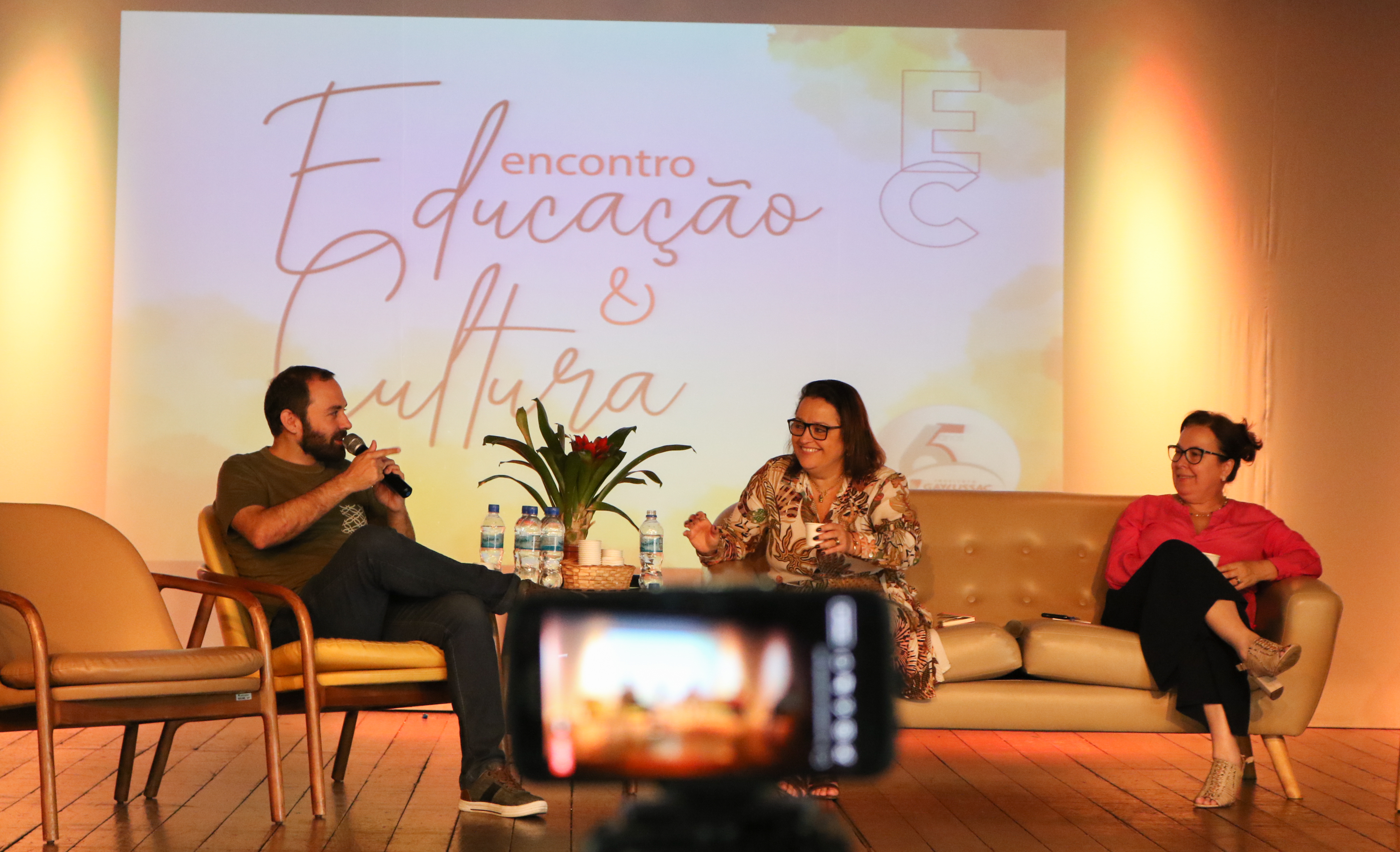 A mesa redonda com a presença do secretário de Cultura de Niterói, Victor Wolf, e da Secretária de Educação, Flávia Monteiro, tinha como tema cultura e arte e foi mediada pela nossa Vice-Diretora Pedagógica, Renata Pestana. “A arte faz parte das relações que o homem faz em seu entorno. A escola é lugar de produção cultural”, explica Pestana.