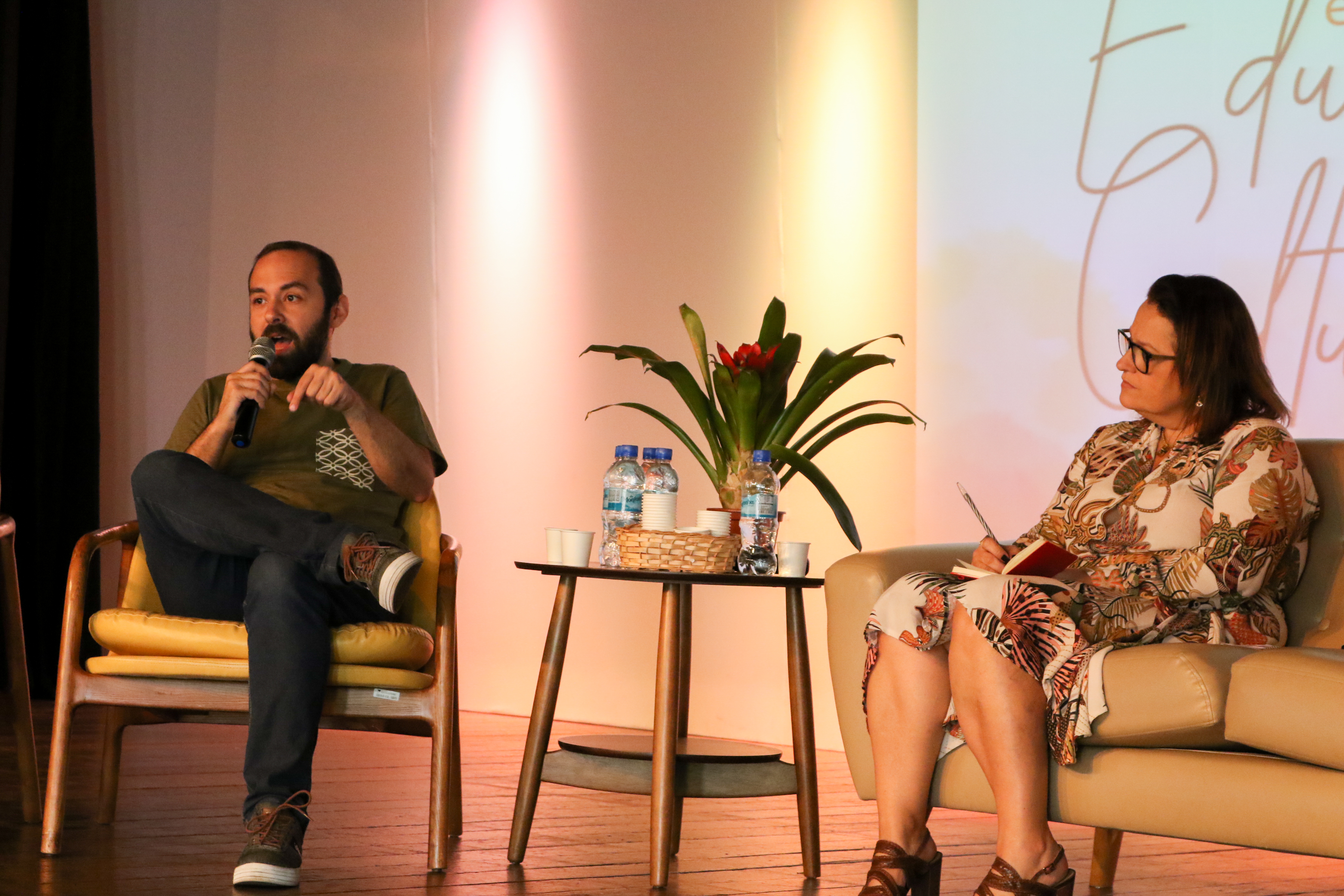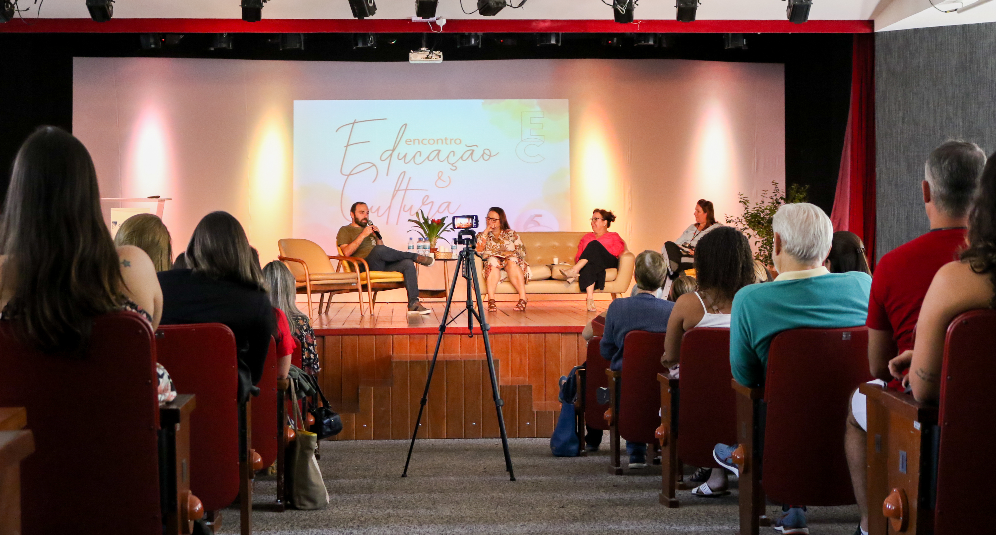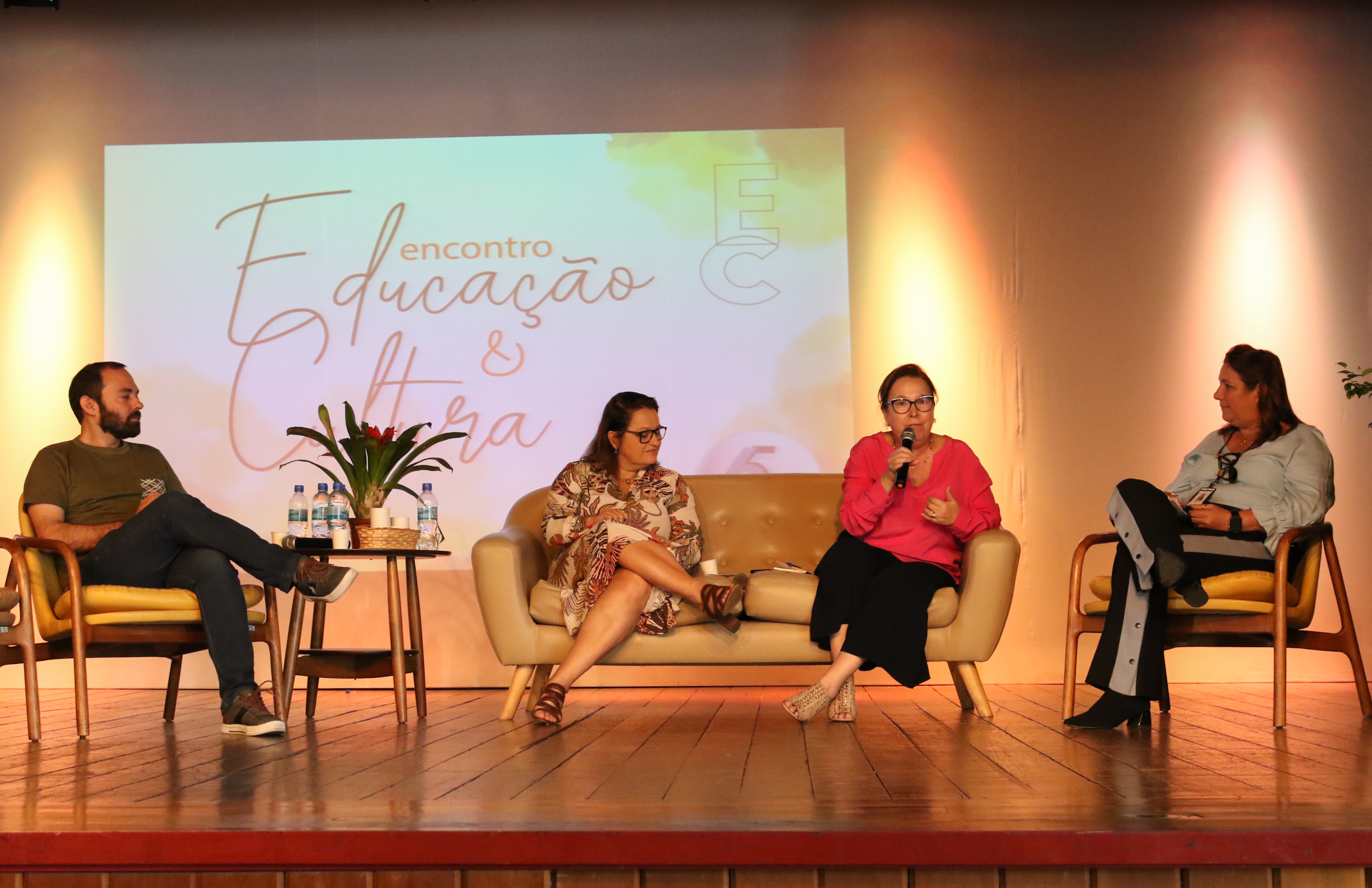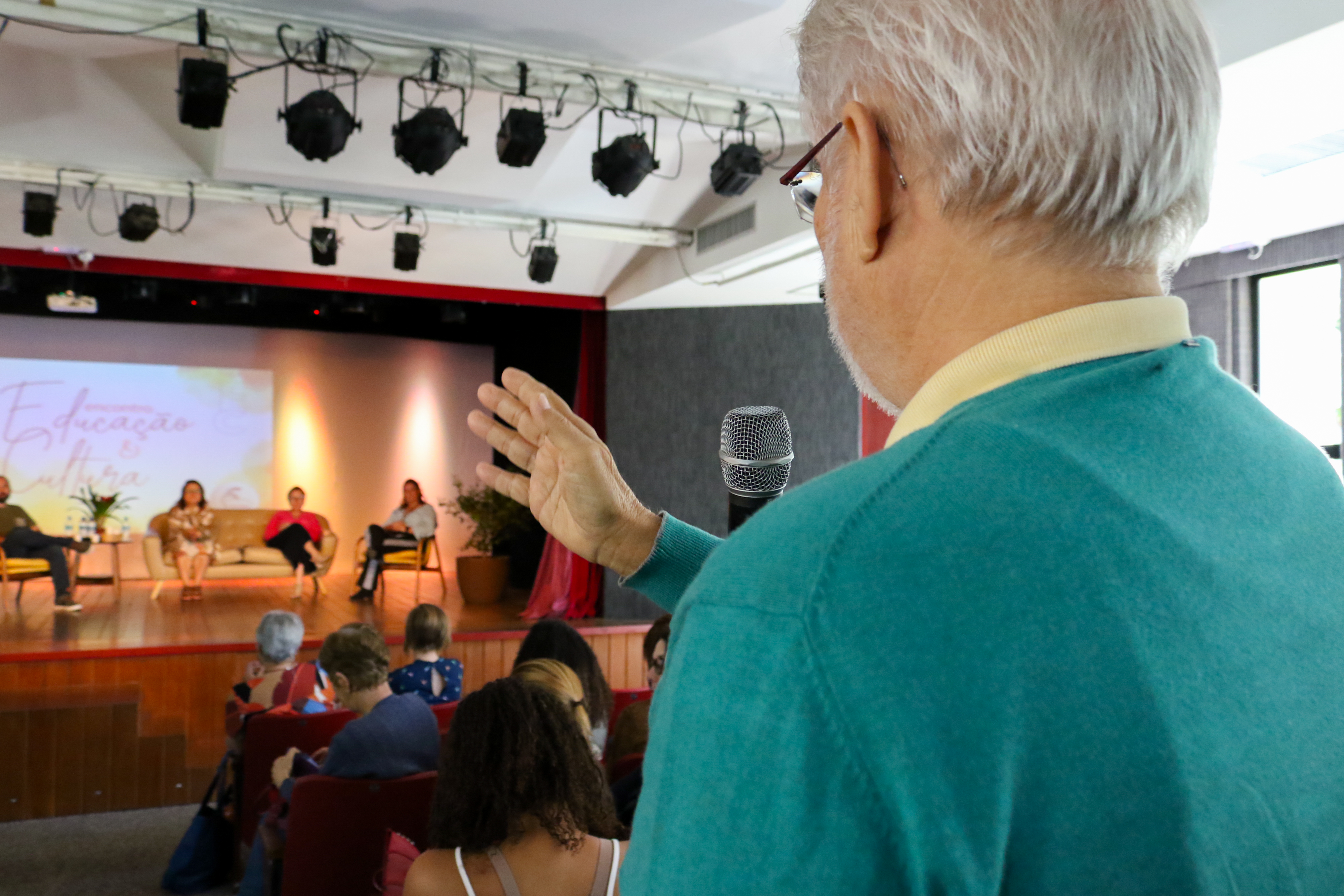 A mesa redonda com a presença do secretário de Cultura de Niterói, Victor Wolf, e da Secretária de Educação, Flávia Monteiro, tinha como tema cultura e arte e foi mediada pela nossa Vice-Diretora Pedagógica, Renata Pestana. “A arte faz parte das relações que o homem faz em seu entorno. A escola é lugar de produção cultural”, explica Pestana.