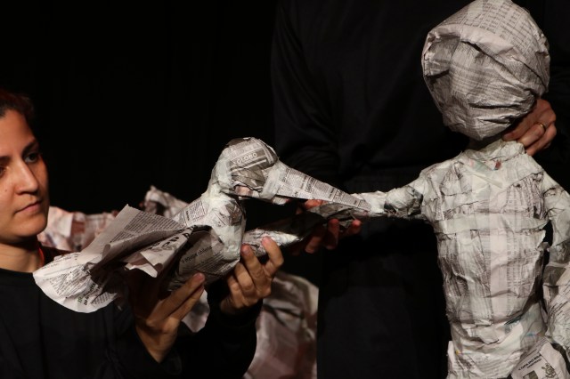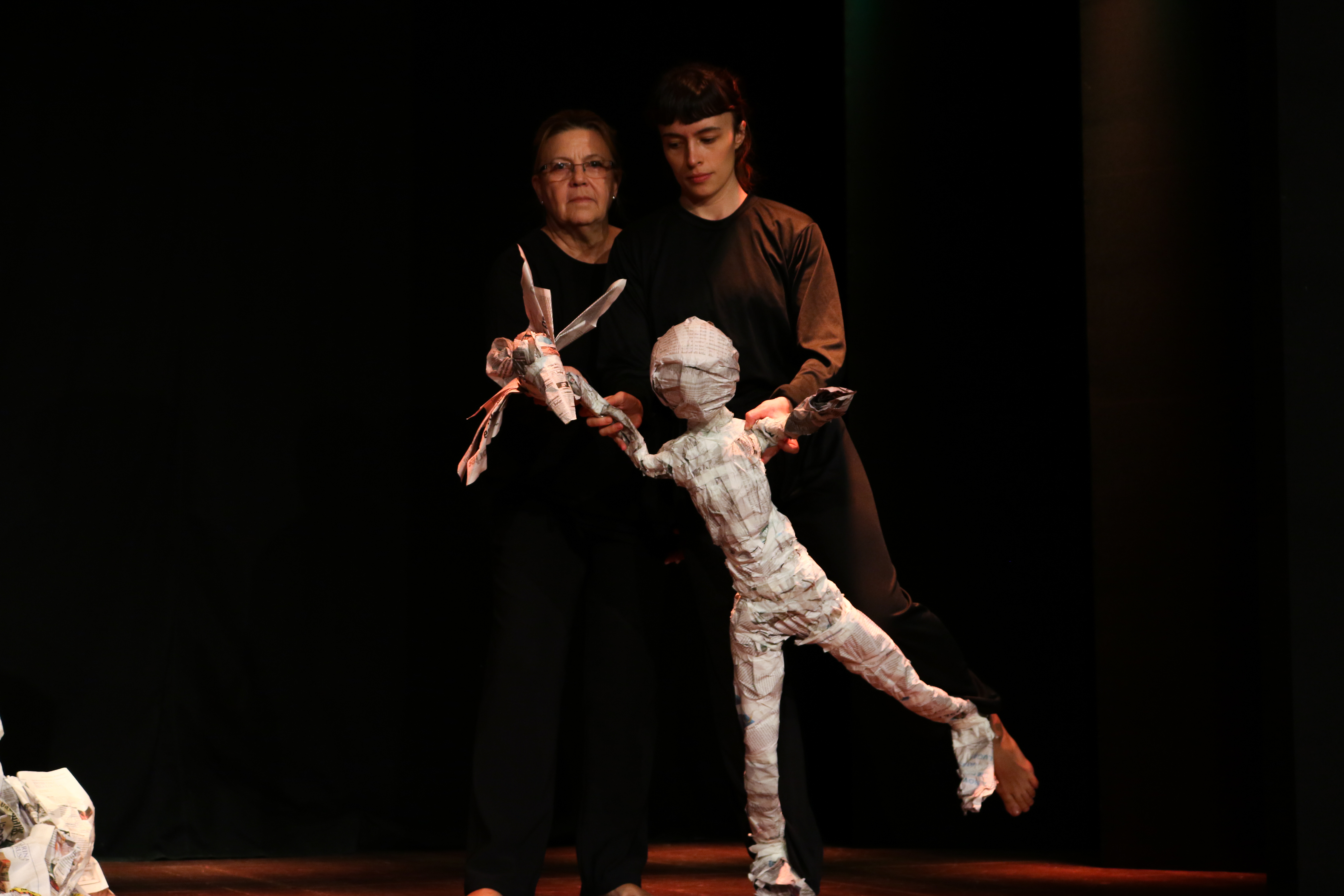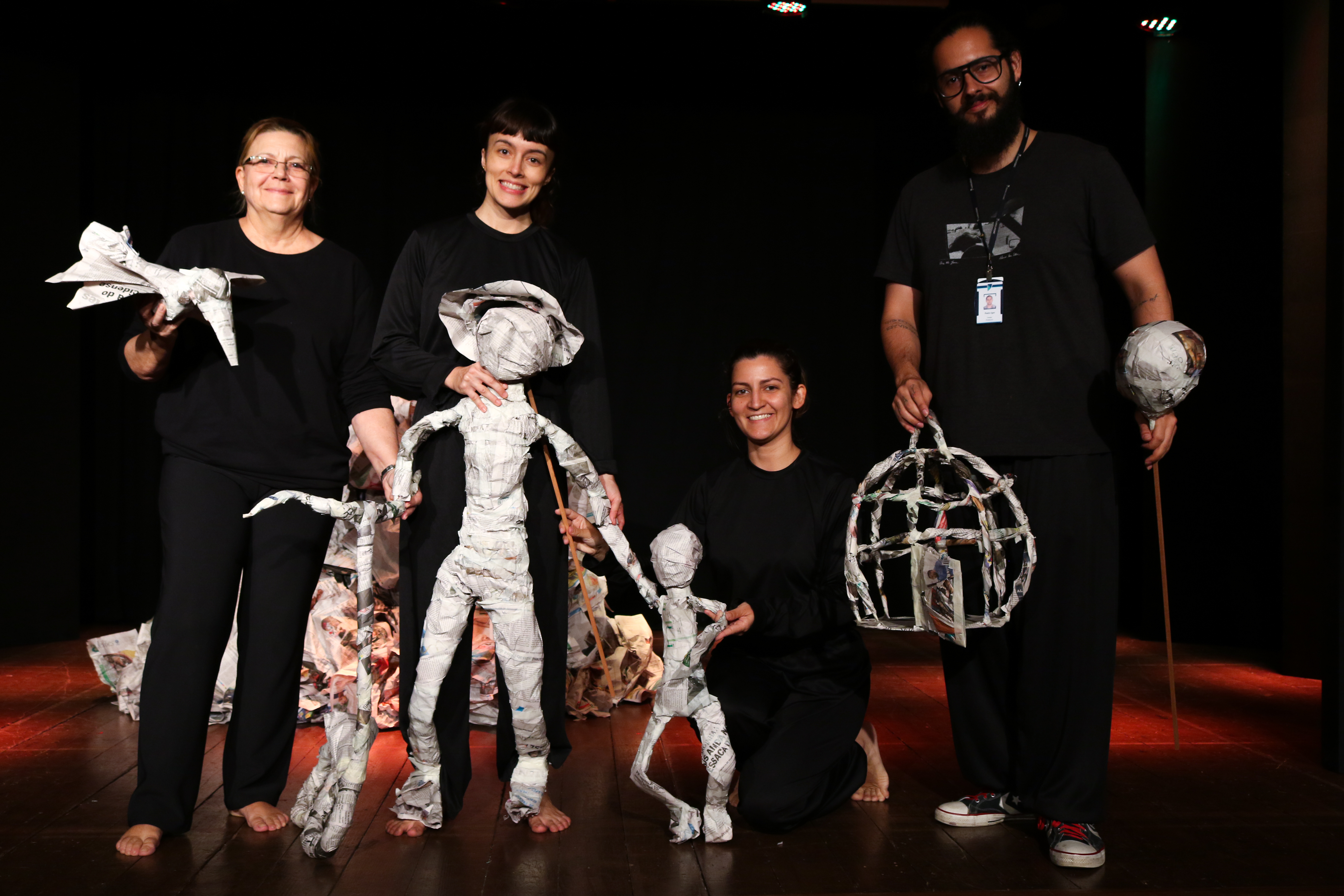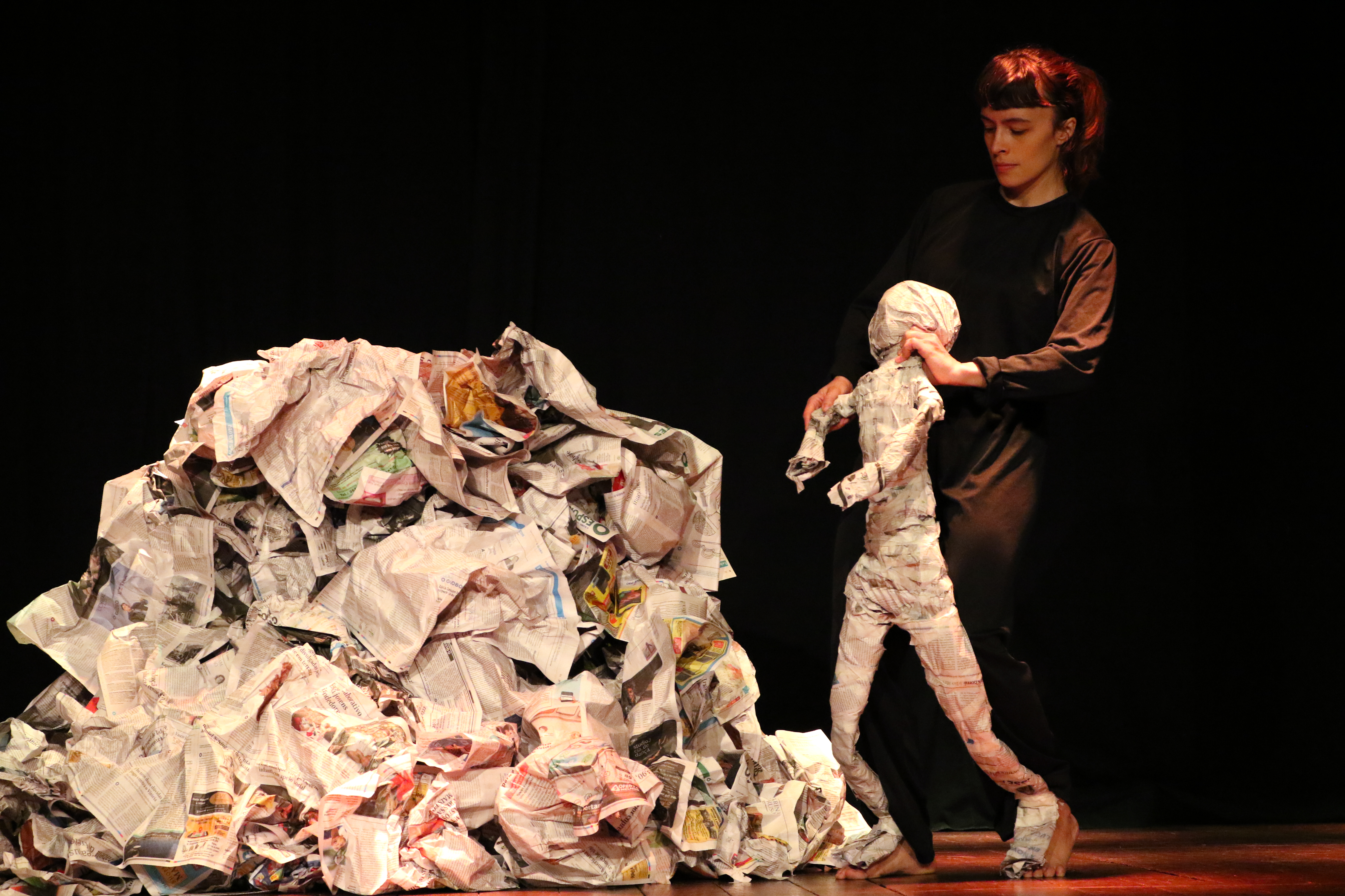 Através de jornais trazidos pelas crianças e professores, a Turma do Alegretto criou todos os personagens e objetos utilizados para a construção da narrativa. Através de manipulação direta das formas de jornal e sem nenhuma fala, utilizaram trilha sonora e sonoplastias para embarcar as crianças na história. A atriz Bianca Buhring, da Turma do Alegretto, conta: “Nosso objetivo foi ampliar os sentidos e conceitos das crianças. Não existe certo ou errado, se a história é ou não de um jeito ou outro, o que importa é o que tocou, o que se sentiu ao assistir. É um espetáculo aberto a diversas percepções, e todas as possibilidades são certas e reais”.