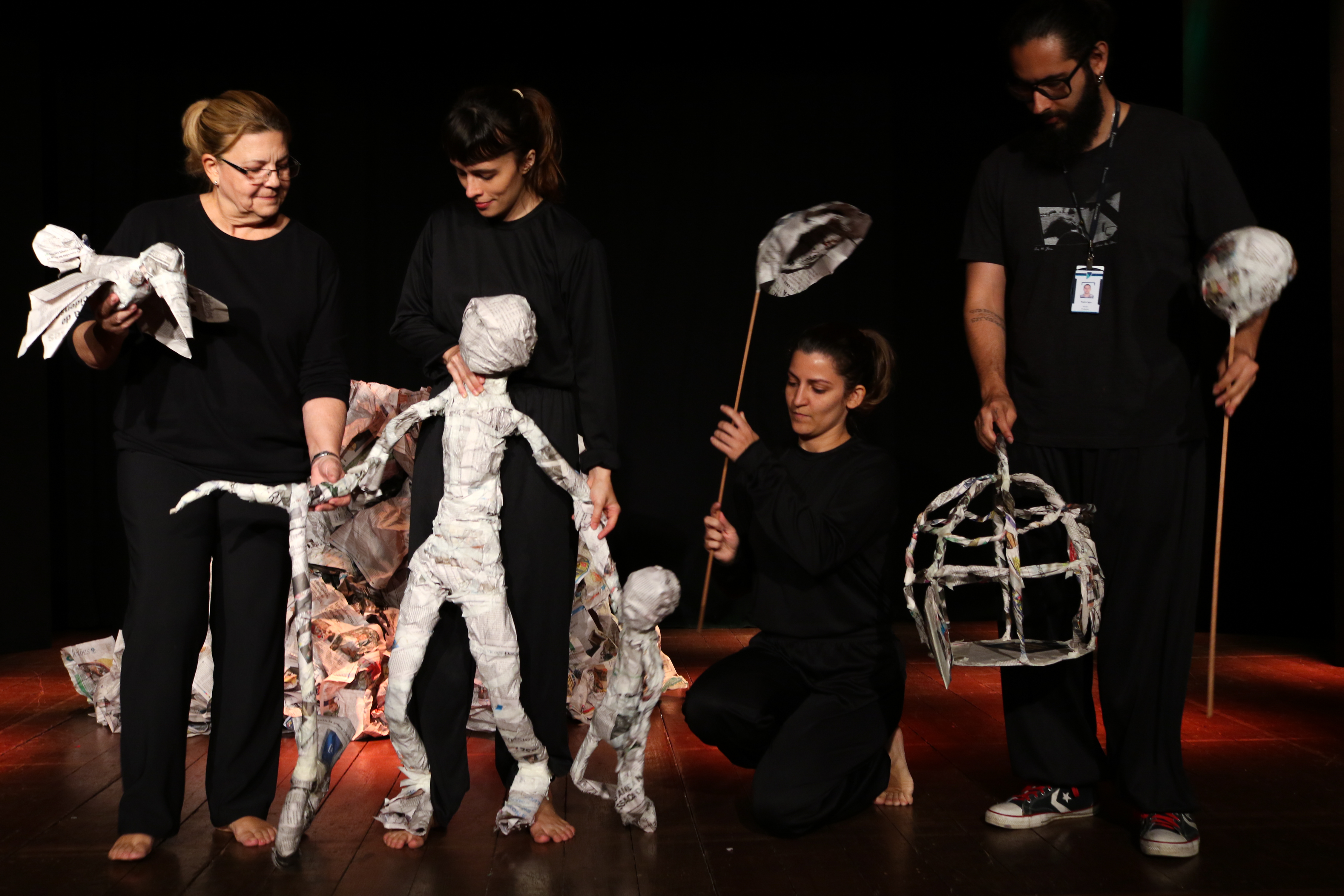 Como material, o papel de jornal. Como sentimento, a descoberta. Esses foram os componentes que integraram a peça “Estou aqui”, feita pelo Teatro Alegretto, em novembro. Com um roteiro inédito e autoral, a peça buscou levar aos alunos da Educação Infantil um novo tipo de manipulação de formas animadas, estimulando a sua imaginação. Nesse espetáculo, muito mais do que ver, as crianças foram convidadas a sentir a peça.