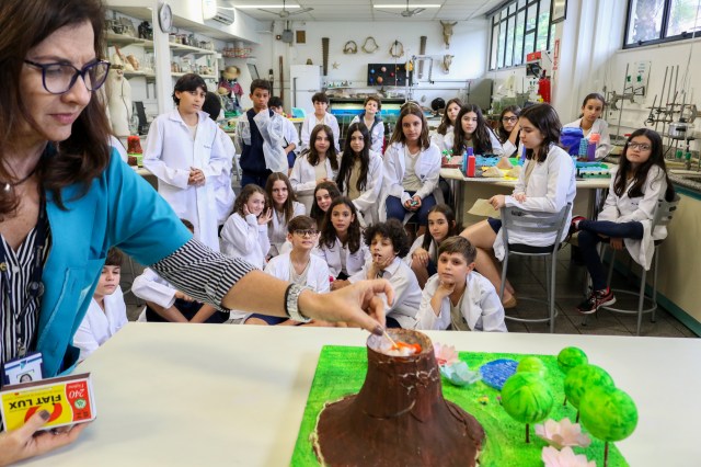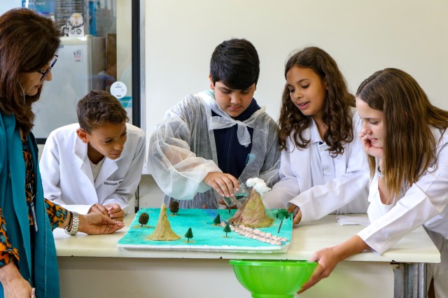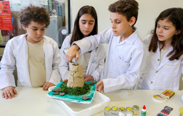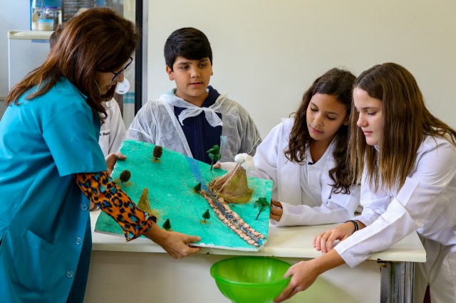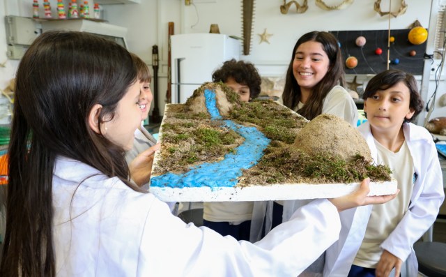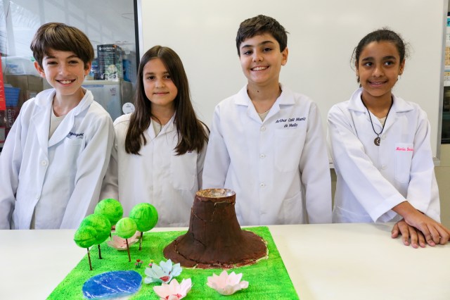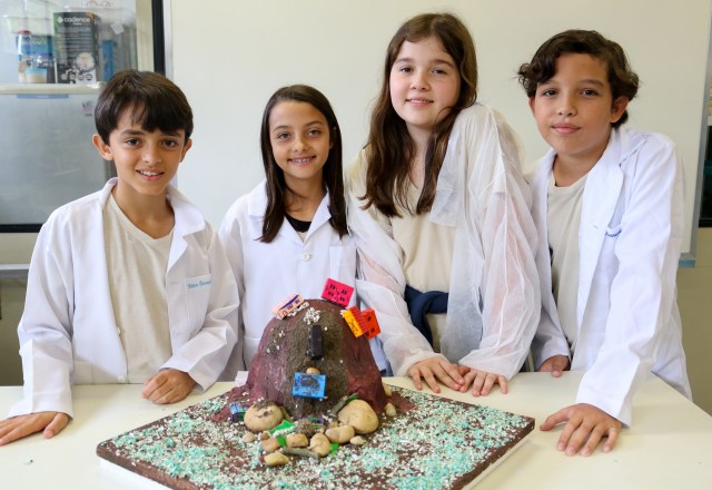 Como se forma um vulcão? Quais as consequências de um terremoto? Como que a montanha vira areia? E como visualizar esses processos na prática? Essas foram algumas das questões norteadoras do trabalho interdisciplinar realizado pelos professores José Victor Cosandey, de Geografia, e Lana Salgado, de Ciências, no 6º ano do Ensino Fundamental, em outubro. Através da construção de maquetes feitas pelos alunos, a atividade “A ação dos agentes internos e externos”, buscou apresentar como esses fatores podem modificar o relevo terrestre.