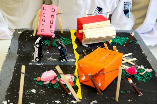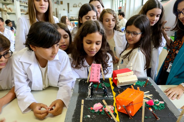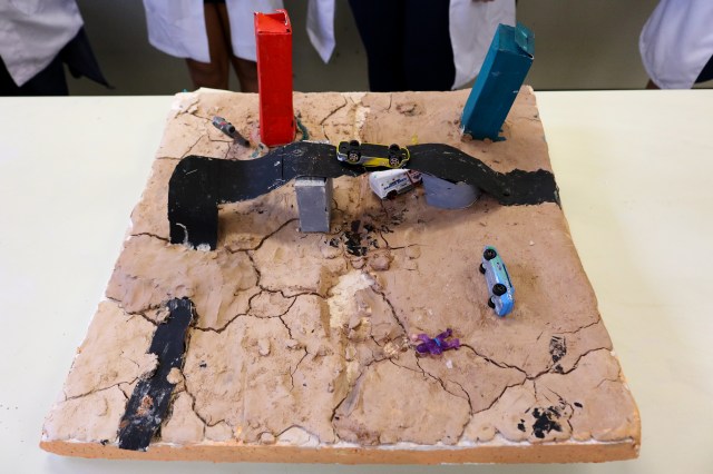 Além de construírem e apresentarem as maquetes, os alunos deveriam explicar teoricamente o fenômeno e apresentar um vídeo que se relacionasse com as aulas. O aluno Vítor Duarte, da 6M1, conta: “Nós preferimos representar as consequências de um terremoto na maquete. Eu gostei de fazer o trabalho porque aí o aprendizado fica mais interativo e lúdico”.