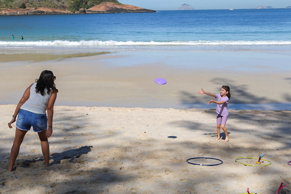 Pé na areia e beira do mar… assim foi o Evento da Família na praia do Forte Barão do Rio Branco. Rodeados pela Baía de Guanabara, as famílias viveram um dia de integração e sintonia fina com a natureza. Preparamos várias atividades como piquenique, música, golfe, futebol e desenho na areia, vôlei de peteca, além da presença da sereia trazida pelo Projeto Aruanã. A preservação ambiental estava presente em toda a proposta. Mas quem reinou nas brincadeiras das crianças foi o mar de águas cristalinas refletindo o lindo dia de sol.