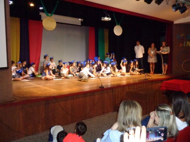 A cerimônia contou com a apresentação de uma peça sobre as Olimpíadas e o recebimento do Yearbook digital, que foi produzido pelos alunos com supervisão dos professores Michell Nascimento e Fabiola Touchon. O exemplar contêm textos dos alunos, além de pessoas e atividades que marcaram durante esse último ano no projeto. “É bastante satisfatório ver a evolução dos alunos não só com relação à aquisição da língua como também no que se diz respeito ao crescimento como indivíduo”, afirma a professora Fabiola.