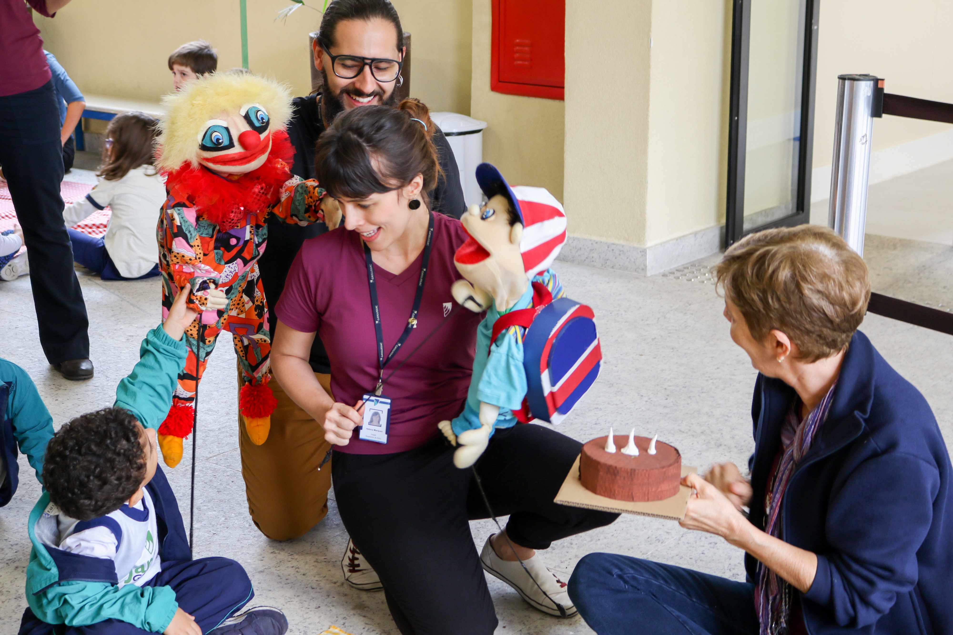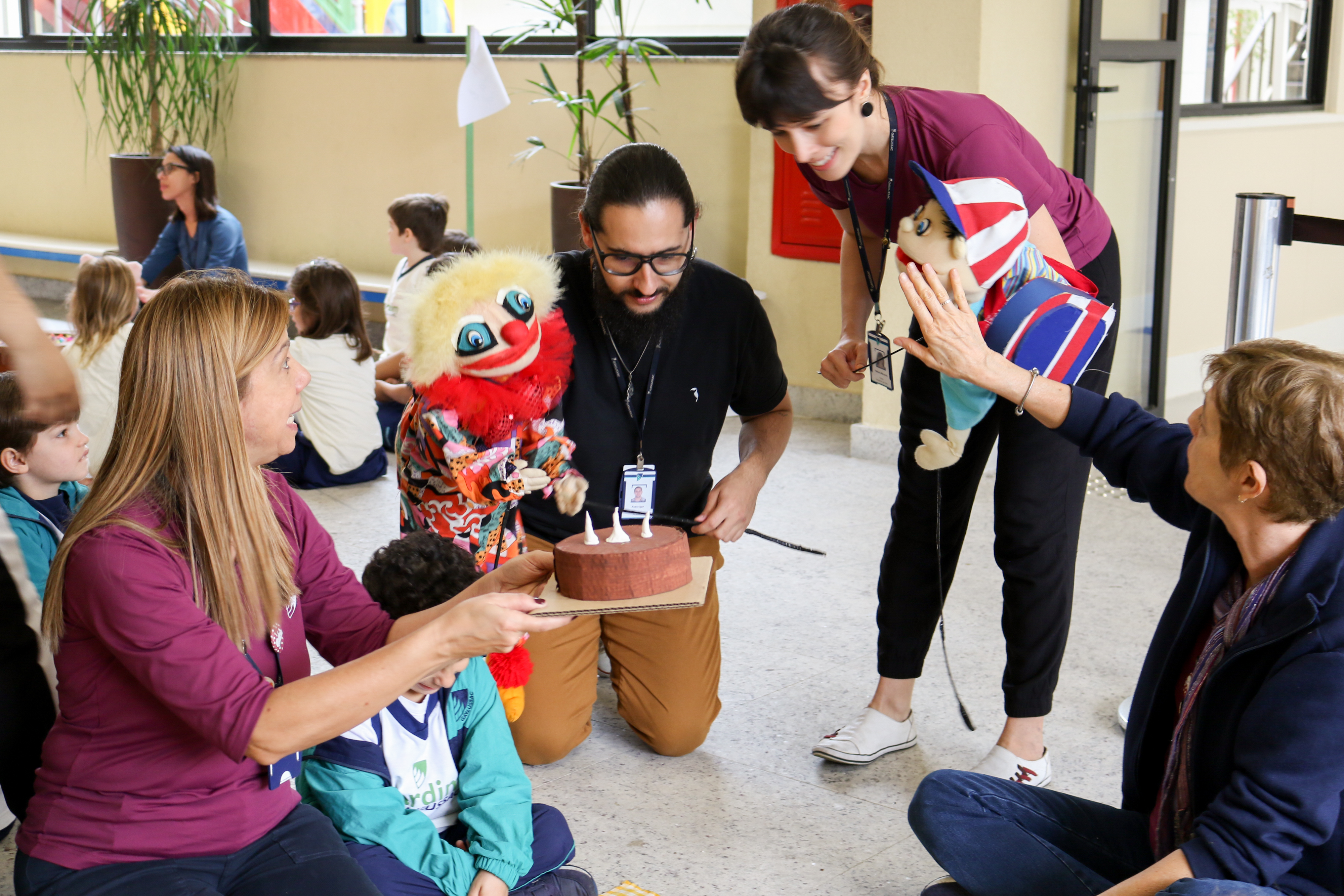 Happy birthday to you… Surprise! Em agosto, após uma longa viagem para visitar seus familiares, a mascote do Projeto Bilíngue, Nick, retornou em clima de festa. Apresentando um esquete para contar de suas aventuras na terra natal, em Orlando, Nick também recebeu dos alunos e de seu primo, o Alegretto, uma festa surpresa para comemorar a vinda dos seus 6 anos. Com muito bolo e abraço dos amigos, Nick teve um excelente retorno à escola.