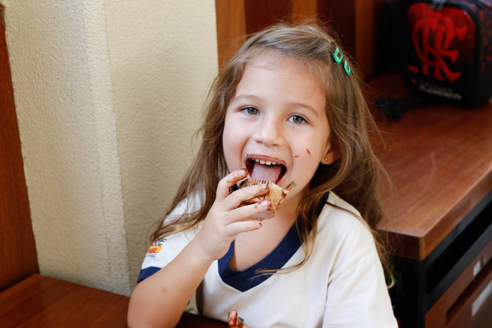 Os alunos da turma Sydney contam: “Nick is Alegretto’s cousin. He is a boy and he is from England. He doesn’t speak Portuguese. He speaks English. We had a delicious cupcake para comemorar Nick’s Birthday.”