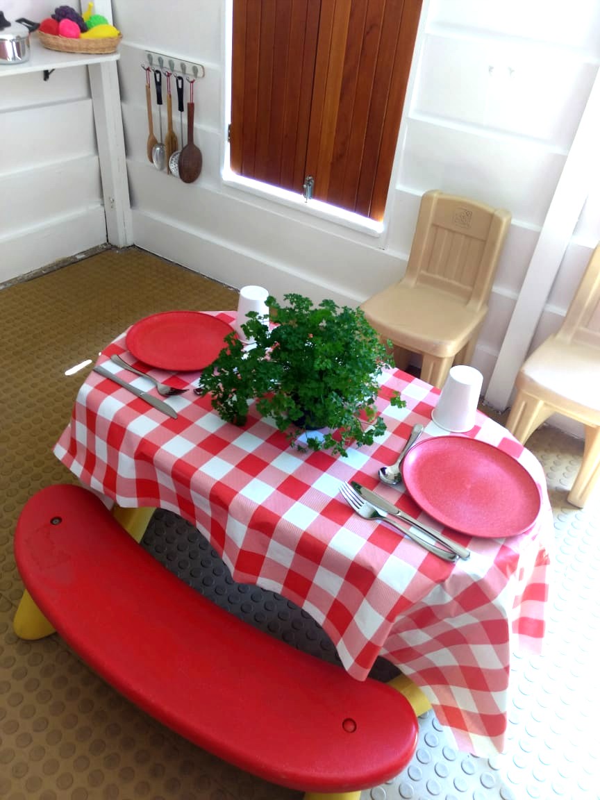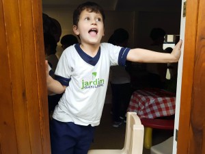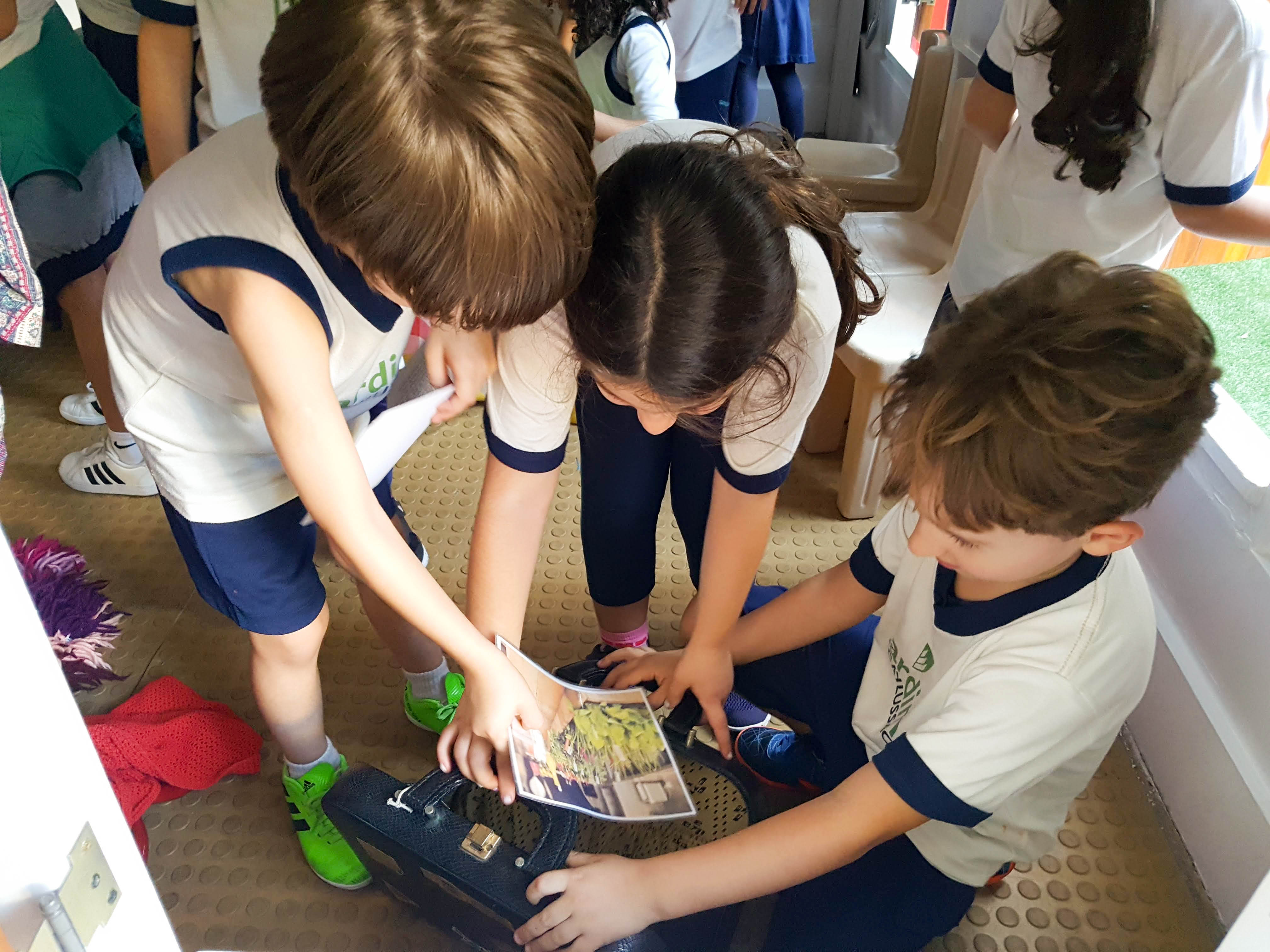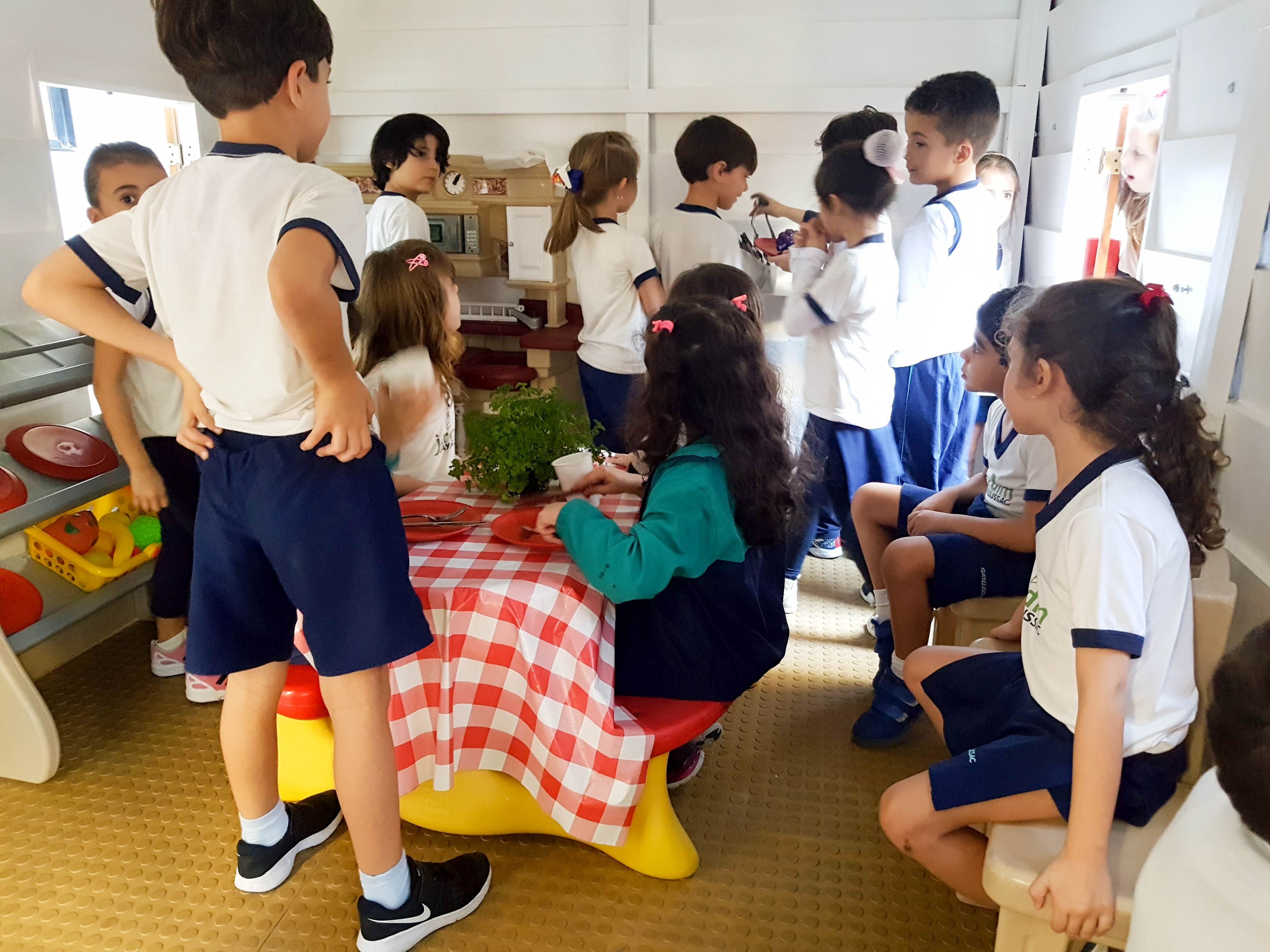 Através dos buraquinhos, as turminhas do Jardim já haviam espiado as mudanças que estavam acontecendo. Suposições, hipóteses e muita imaginação rondaram essa reforma. Ao longo da tarde, todos visitaram a casinha. A turma das professoras Márcia Elen e Luna Silva, a J2T3, descreveu suas descobertas: “A casinha ficou muito legal. Tem fogão, copos, talheres de verdade, chapéu e um monte de fotos na maleta”. A turma comparou com o desenho que havia feito, imaginando como seria a casinha e concluiu que a casa ficou “melhor que todos os desejos”.