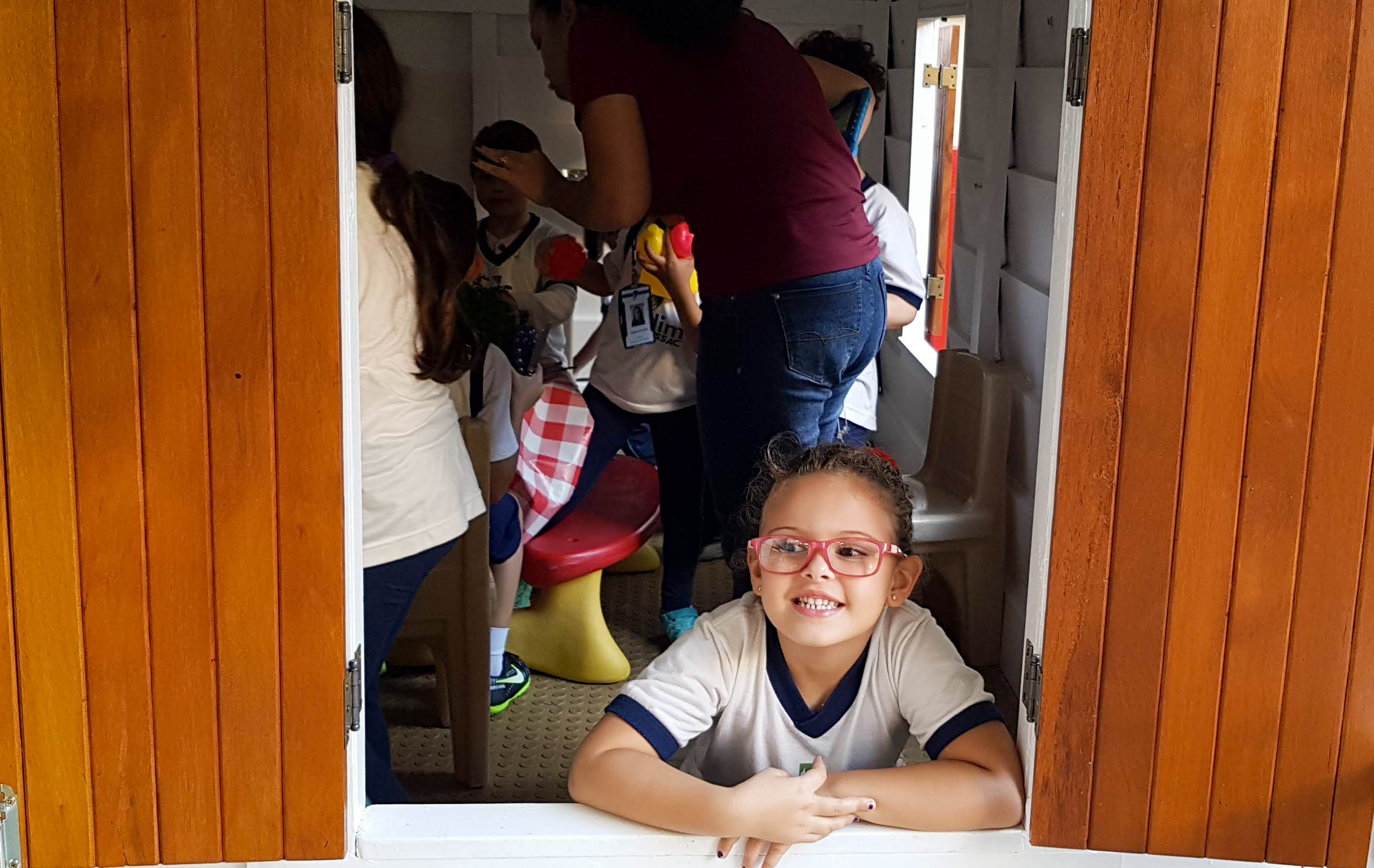 A professora da J2T4, Juliana, conta: “Eles estavam repletos de expectativa e ansiosos com a inauguração. Acharam a casinha sensacional”.