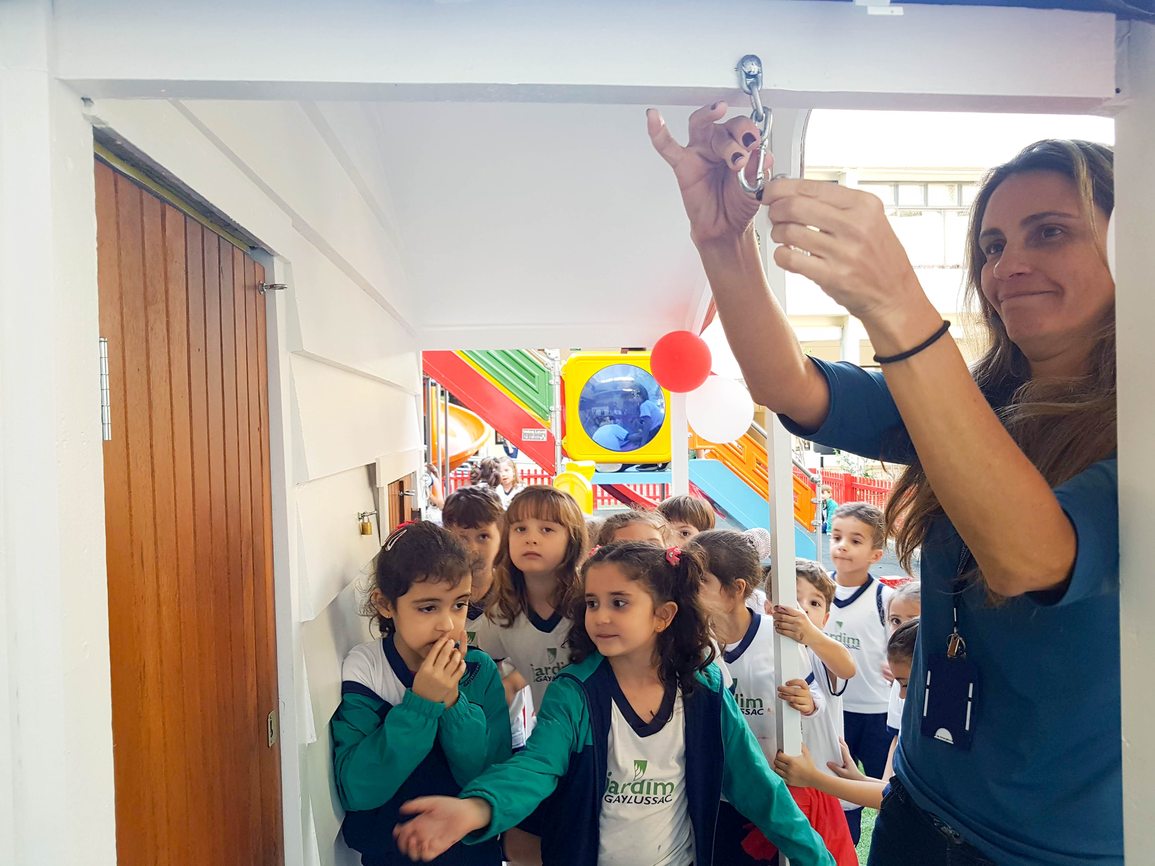 Na semana de aniversário de 64 anos do GayLussac, quem ganhou um lindo presente foram as crianças. No dia 29 de agosto, após semanas de muita expetativa, indagações e investigações sobre o que estaria acontecendo com a Casa da Boneca – que estava desde a volta às aulas em obra, coberta com um misterioso tapume – o GayLussac Jardim amanheceu diferente. Decorada com uma imensa fita vermelha, a nova casinha aguardava as crianças pronta para ser inaugurada.