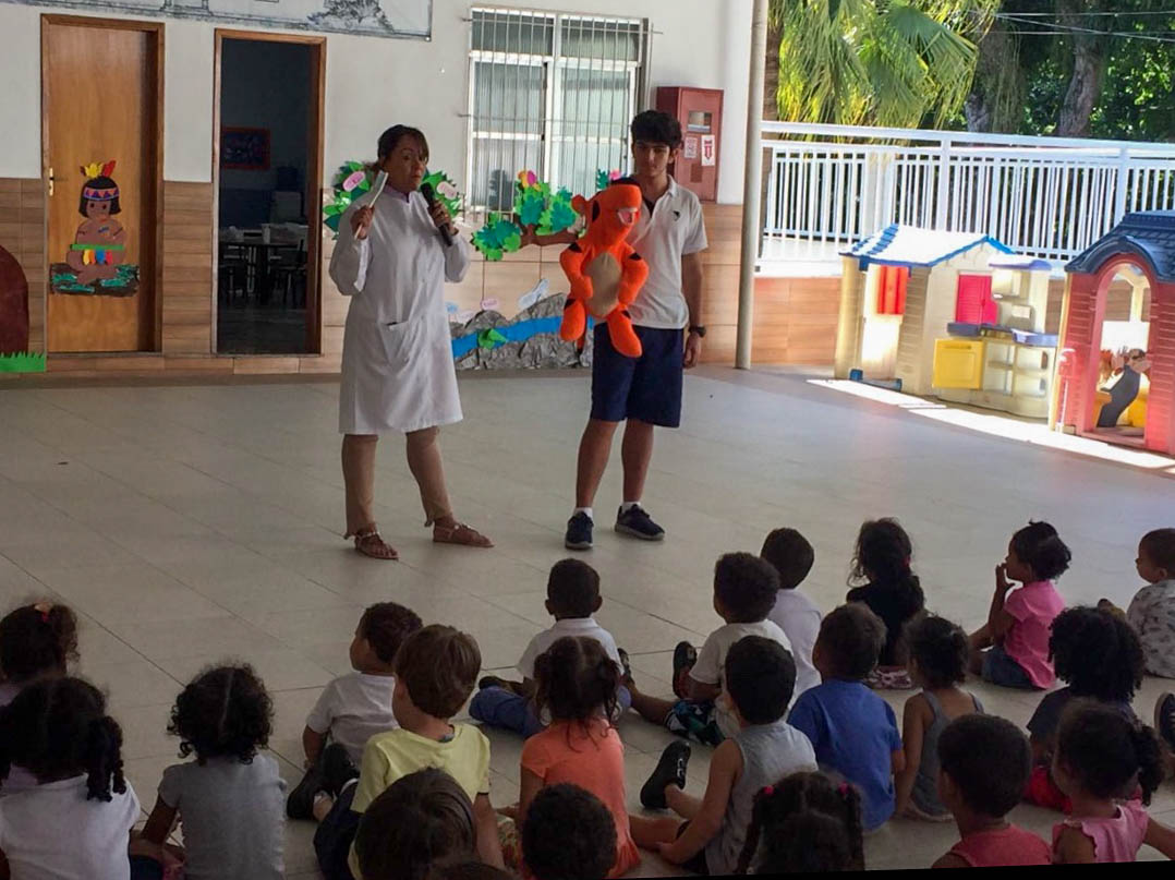 Observando esse quadro, não demorou muito para que o espírito de solidariedade e a vontade de transformação tomasse conta dos alunos e os mobilizasse. Assim, além de participarem da educação de limpeza bucal junto à dentista Raquel, os alunos arrecadaram 400 escovas e pastas de dentes para a doação para às crianças da Creche: “Nós fomos muito ajudados pelos alunos do Gay. Os pais entraram em contato comigo querendo saber do projeto e ajudar nas doações. Na visita, os alunos escovaram os dentes das crianças, as ensinaram a escovarem os dentes sozinhas, explicaram da formação das cáries com bonequinhos interativos… então foi uma atividade muito prazerosa”, conta Raquel.
