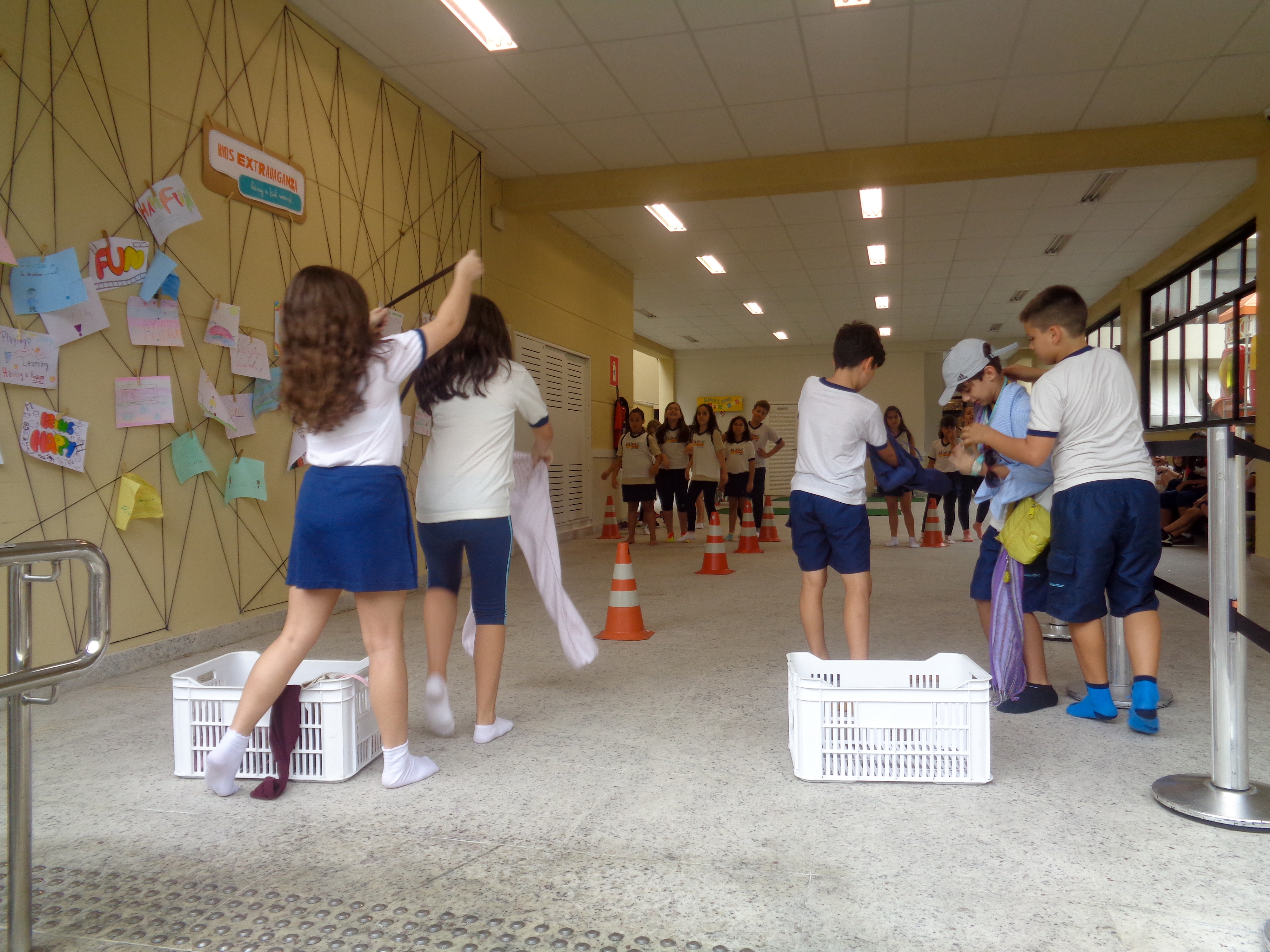 A aluna Sofia Elizabeth, da turma Cambridge, conta a experiência: “I liked a lot the special dodgeball that we played with our group. It was really fun because it was not a normal day in Physical Education, we had an extra time. The day of Kids Estravaganza was also very nice because we had a great time and I loved the special lunch. The best game in my opinion was the dodgeball and then the dress up relay. We had to run to put all the clothes of the basket on our friend. I liked it very much.”