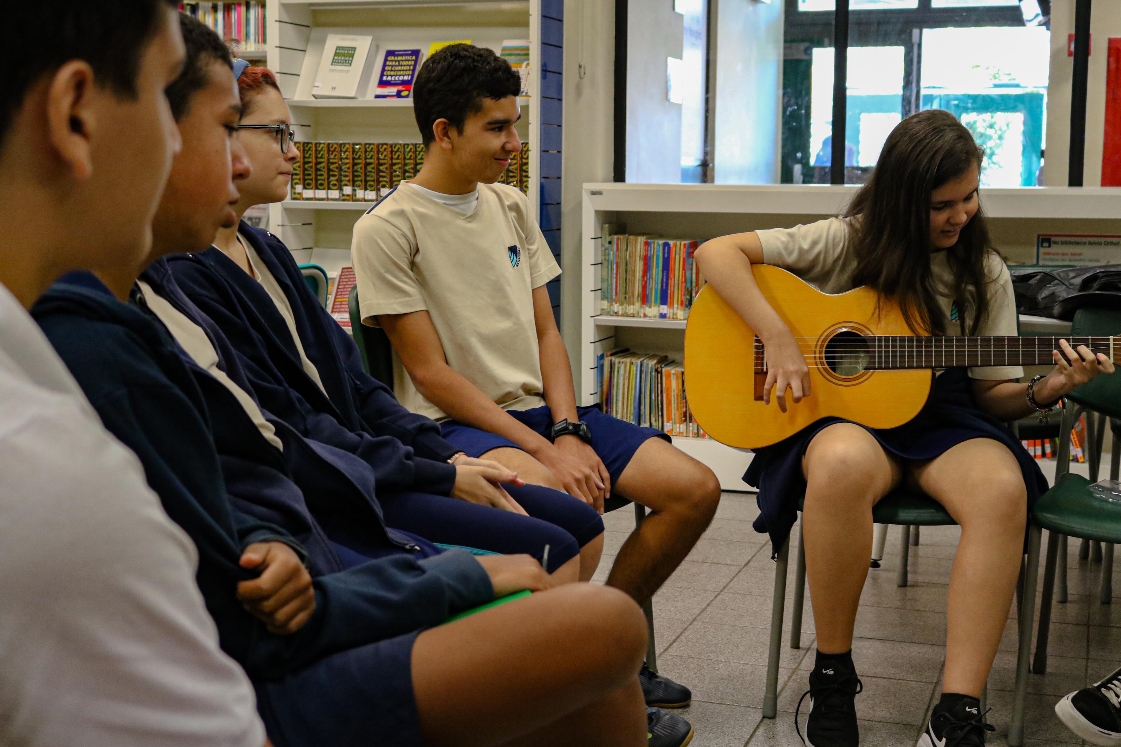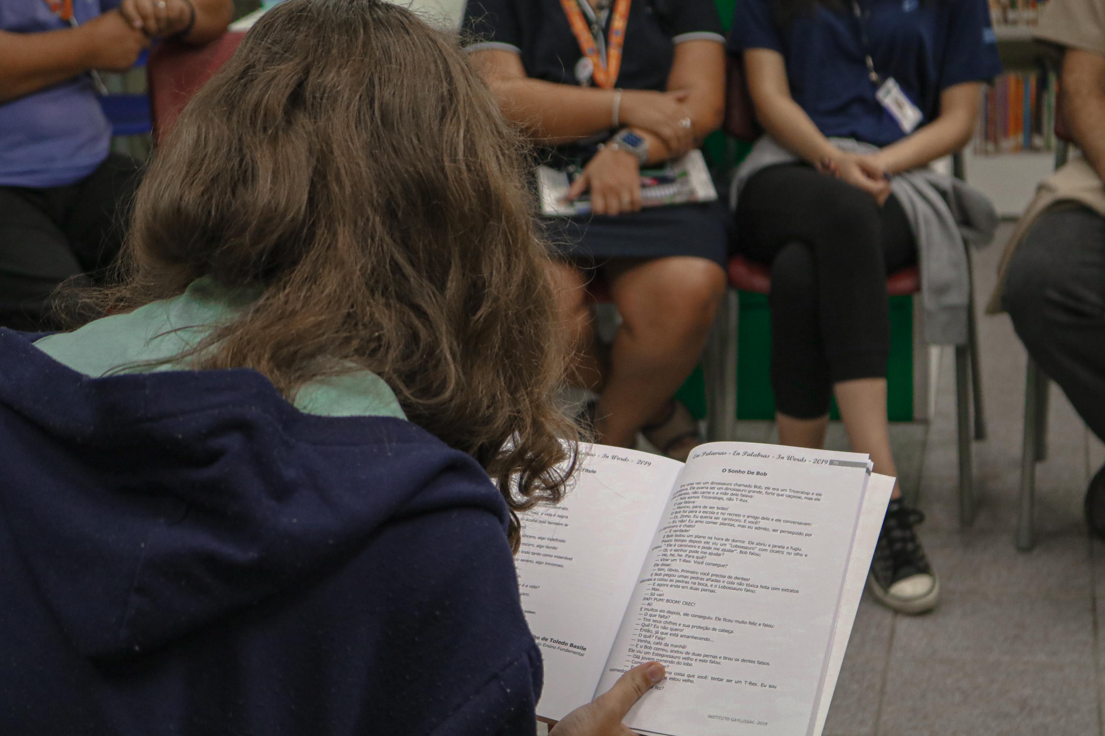 Dividido em 3 sessões, os estudantes têm uma hora de poesia para exercitar sua verve literária. A biblioteca se torna um espaço repleto de confiança e entrosamento, recebendo os alunos e suas mais diversas manifestações artísticas e culturais.