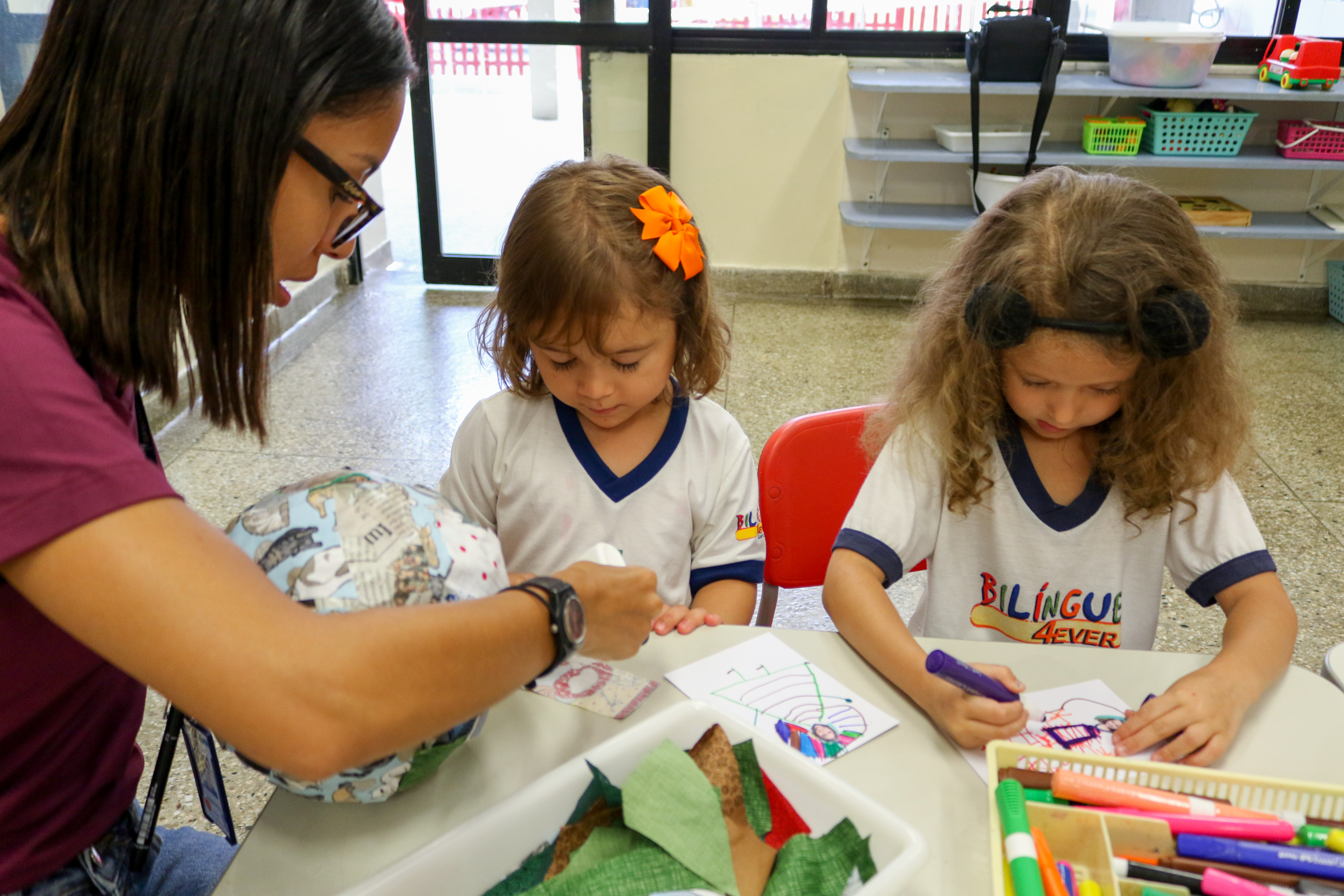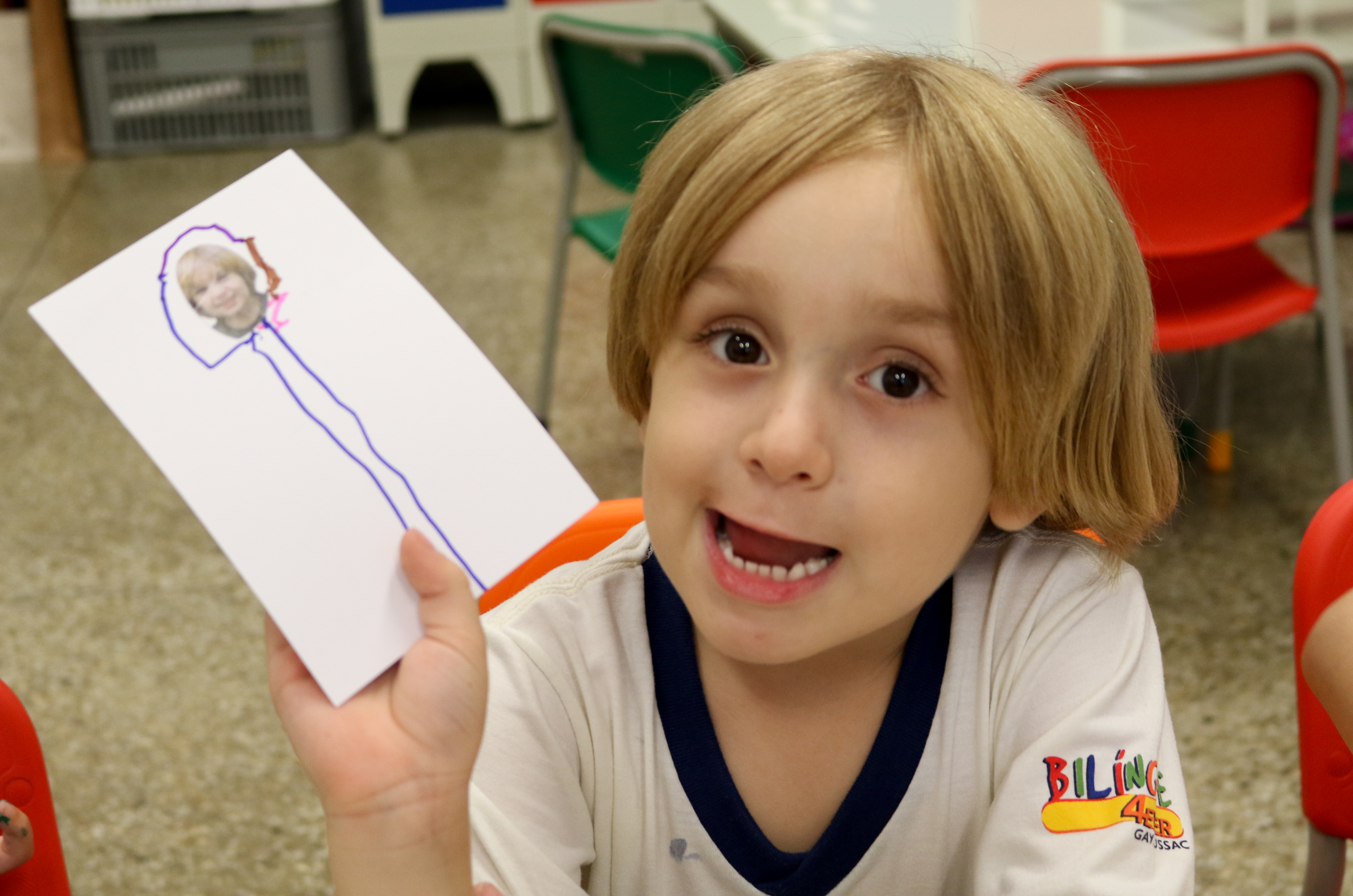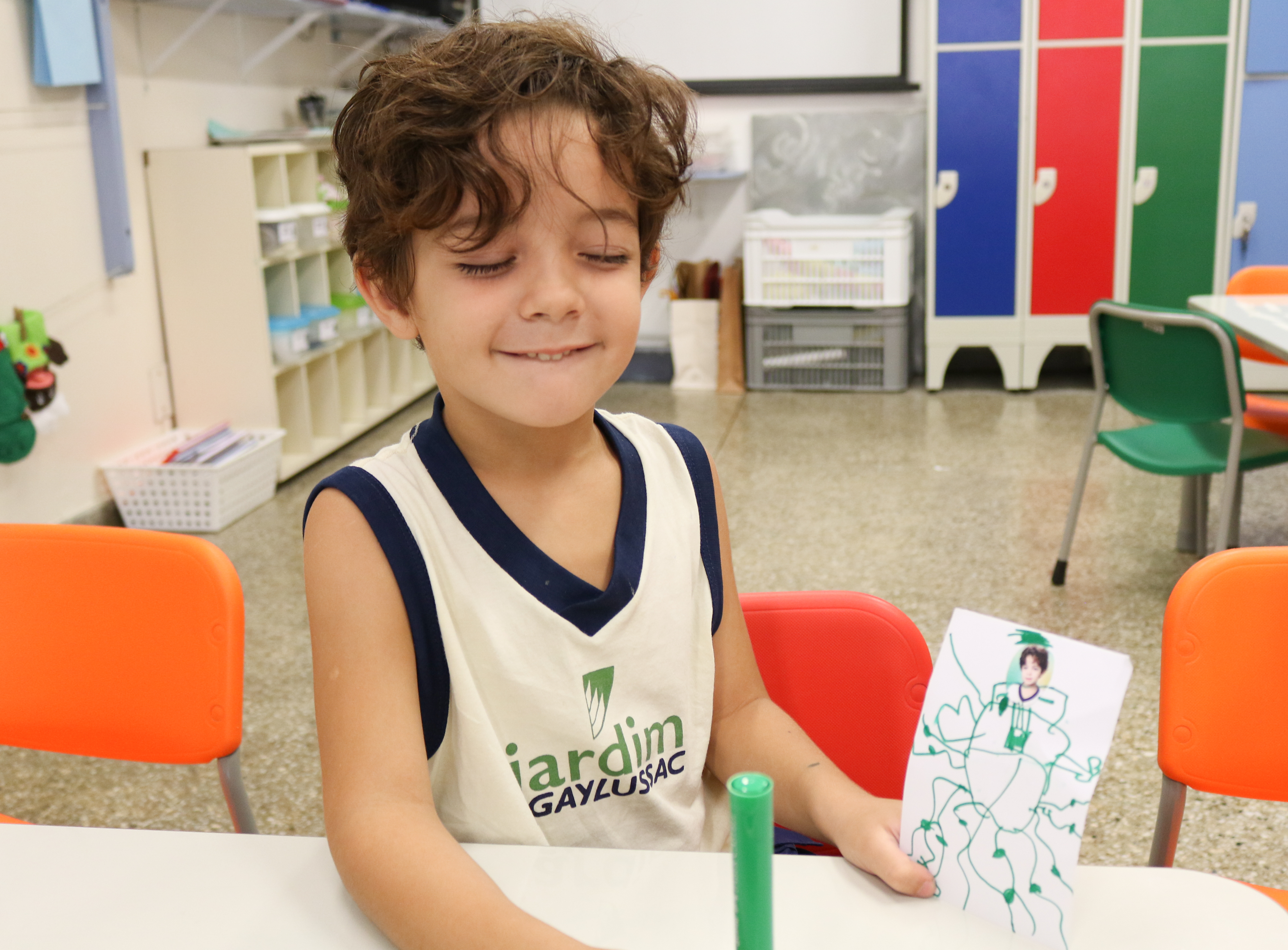 A partir da história, os alunos foram convidados a pensar sobre a importância da amizade. Francisco Aquino conta: “The friendship is important because play sozinho é very bad. Friends share toys, friends help… One day, me play sozinho e não gostei”.
