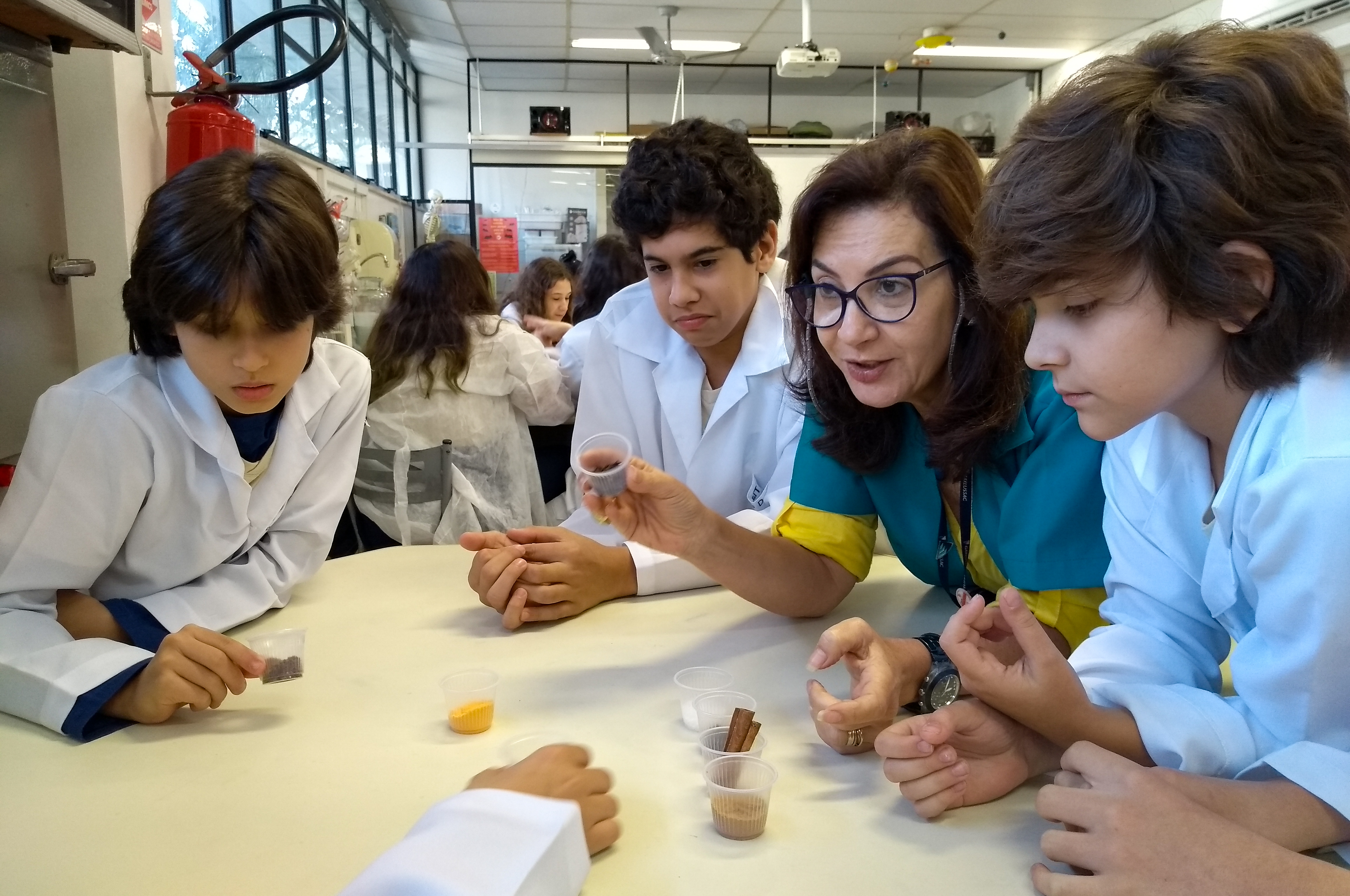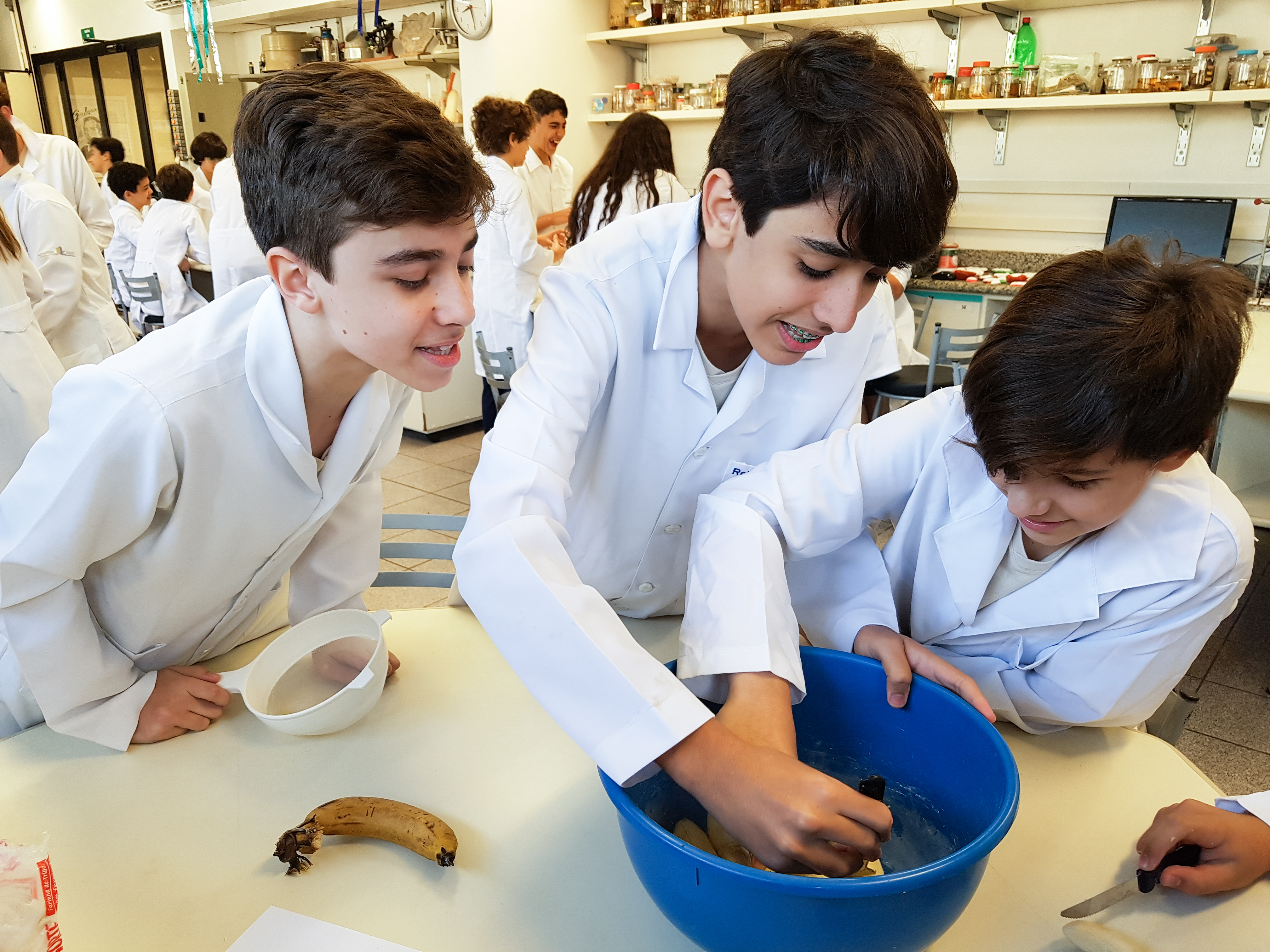 Para o aluno Davi, da 7M1: “A atividade nos deu novas experiências que ajudaram a compreender melhor as matérias de um jeito diferente. É sempre bom ir para o laboratório. A gente cozinhou, teve um contato real com o conteúdo da matéria”. Já Nathaly, da mesma turma, completa: “Cada grupo tinha que fazer uma receita. A gente cozinhou bolo de banana com canela, beijinho, canja, suco de abacaxi com hortelã e tudo estava muito bom. Lá tinham alguns temperos que eu não conhecia como, por exemplo, a canela. Foi ótimo unir história e ciências!”.