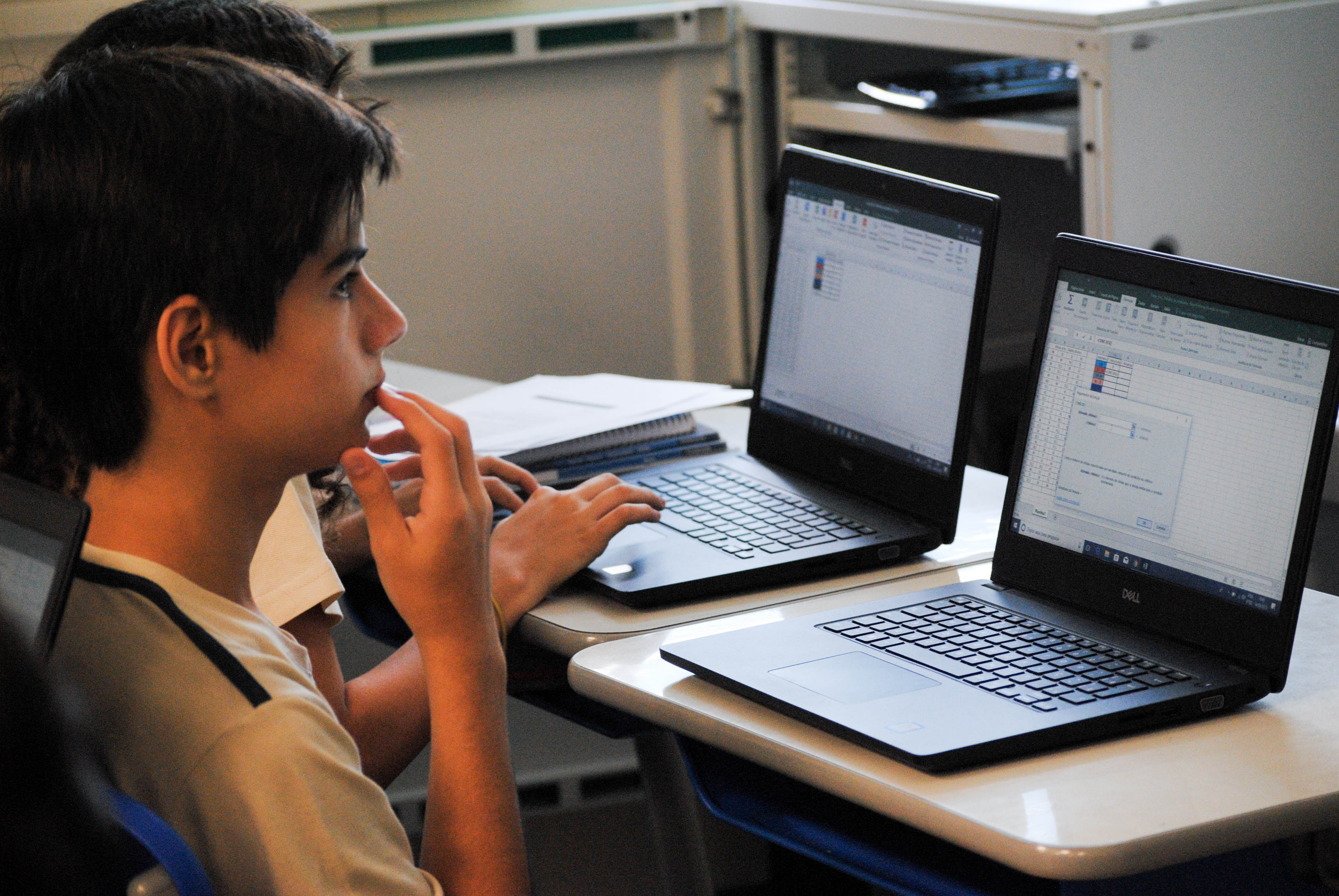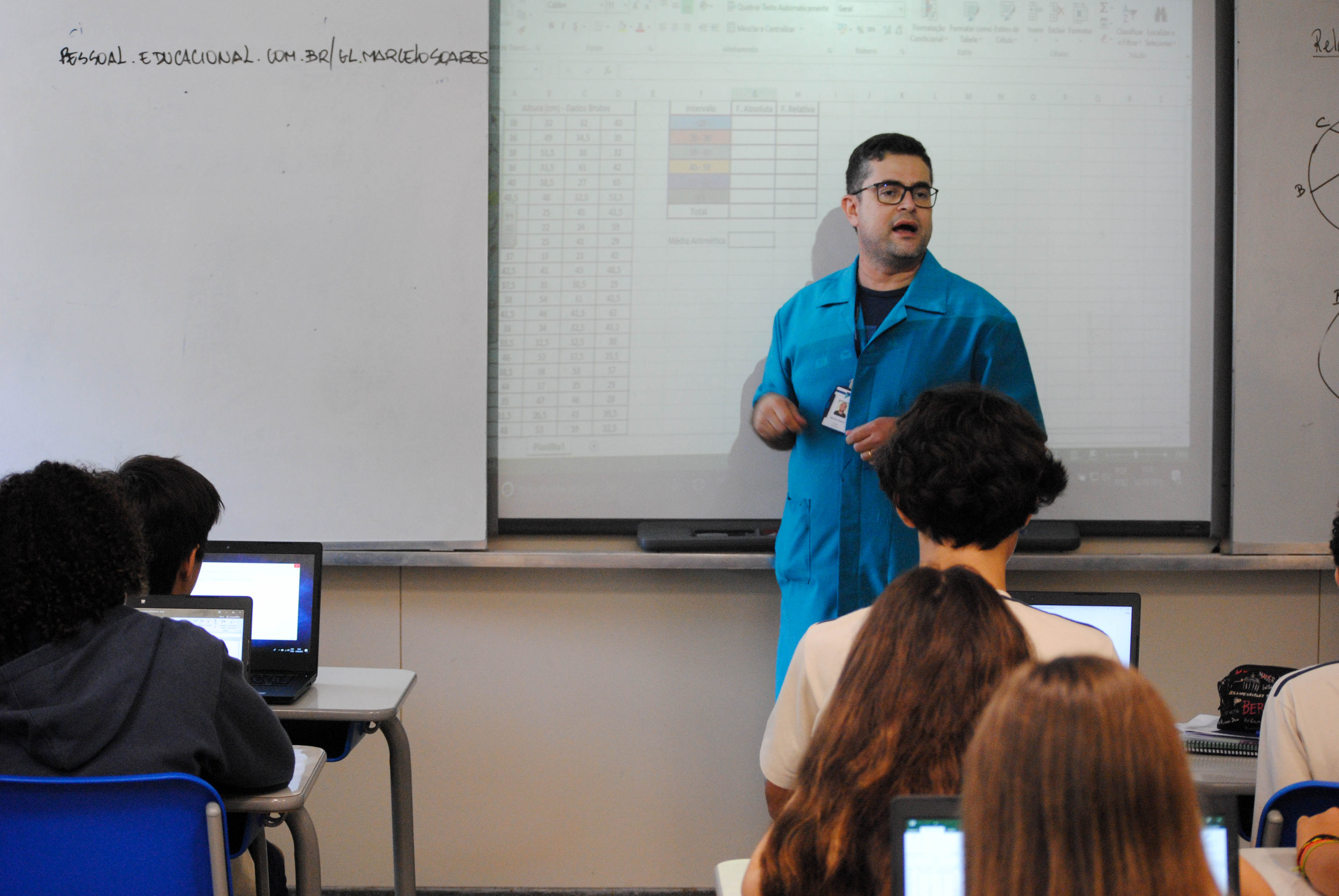 Tornar o objeto de estudo tangível é tornar a aprendizagem possível. Fazer com que o aluno aplique em seu dia a dia os conteúdos vistos em sala, é permitir que esse conhecimento ganhe sentido. Por isso, os alunos do 9º ano do Ensino Fundamental foram envolvidos pelo professor de Matemática, Marcelo Soares, no projeto Estatística, que instigou uma aprendizagem em que teoria e prática andaram lado a lado. Após colherem os dados das turmas no Teste de Impulsão Vertical, realizado na quadra da escola pelo professor de Educação Física, Darlan Campos, em agosto, os alunos fizeram a organização e classificação das informações para análises estatísticas sobre o desenvolvimento físico dos colegas.
