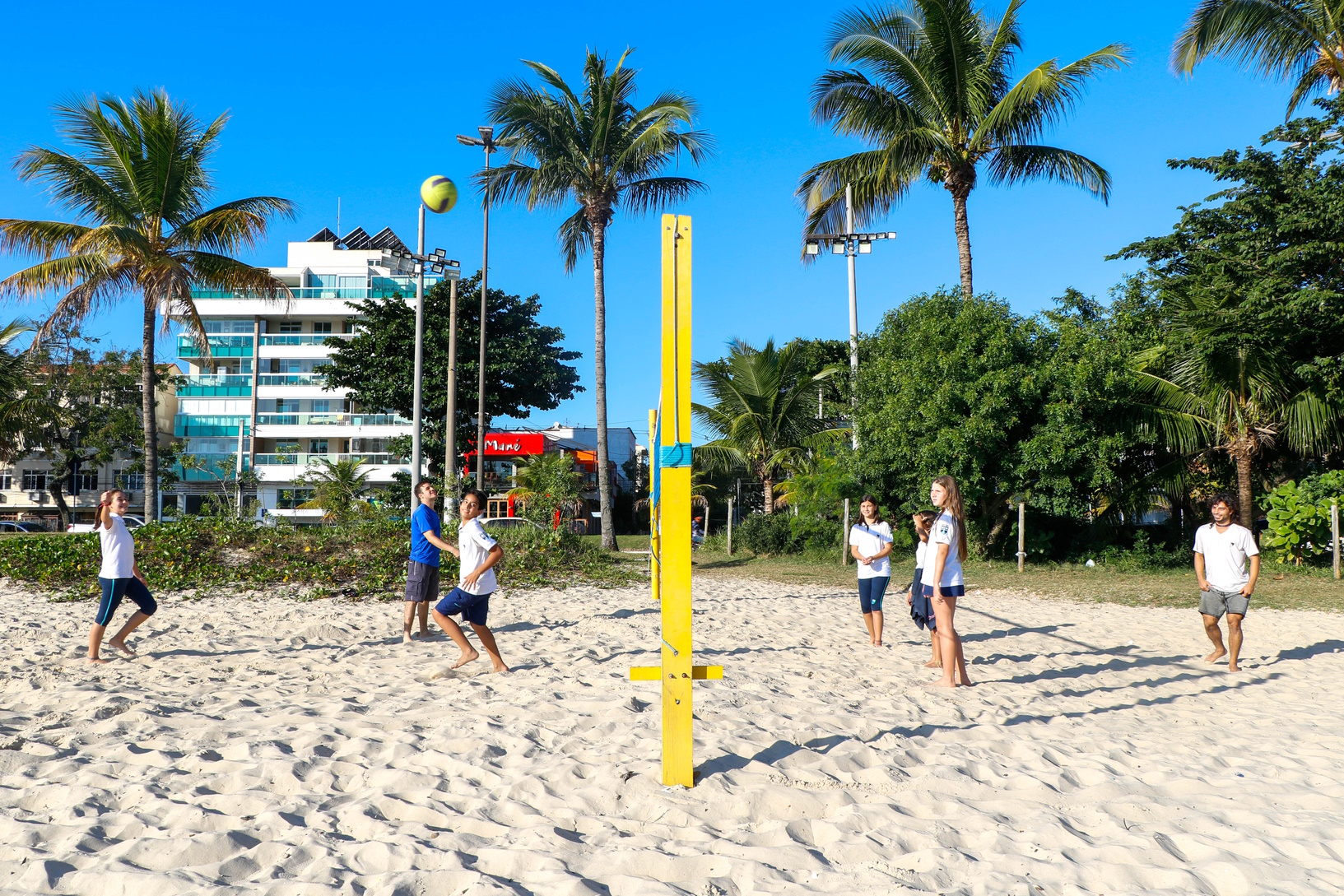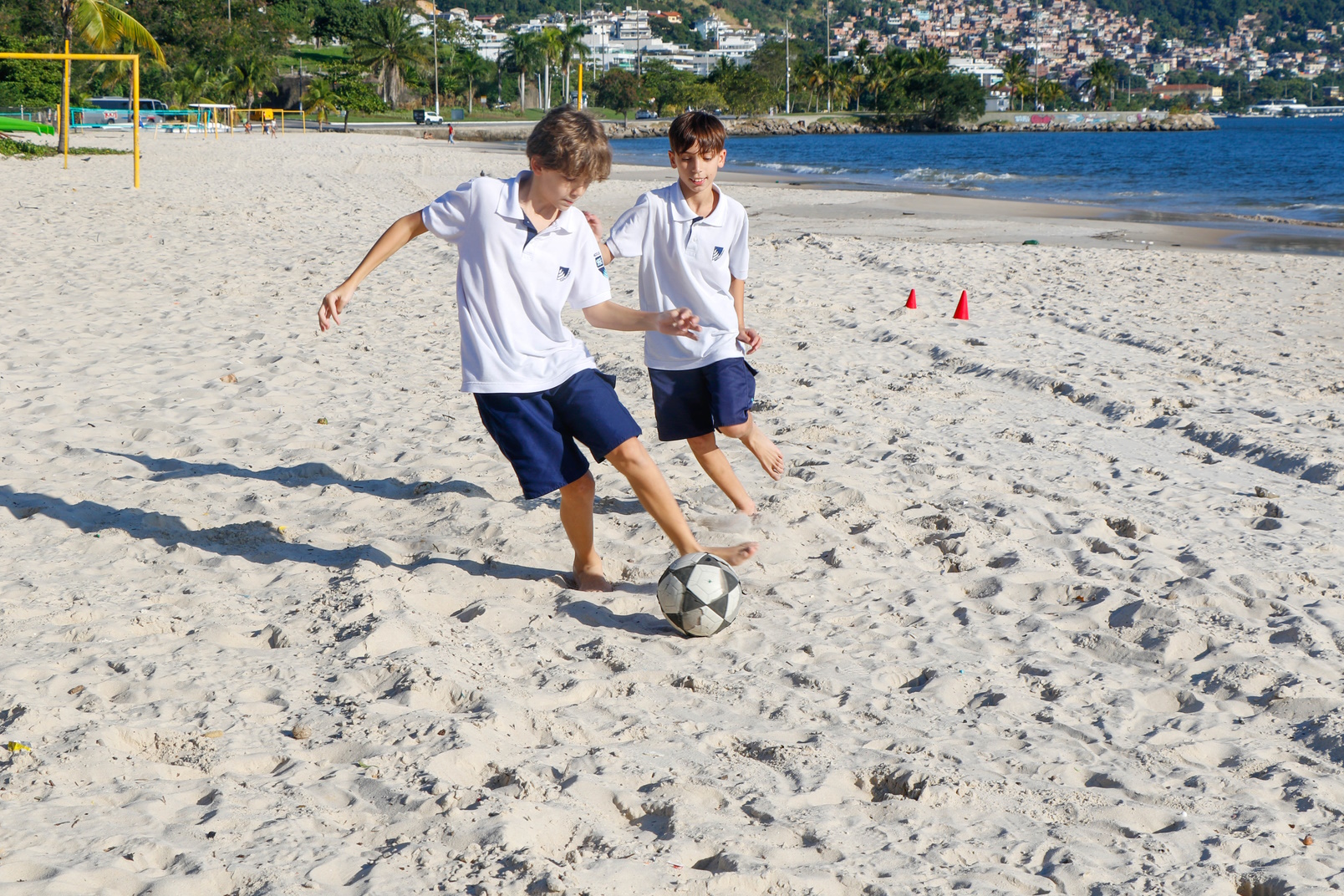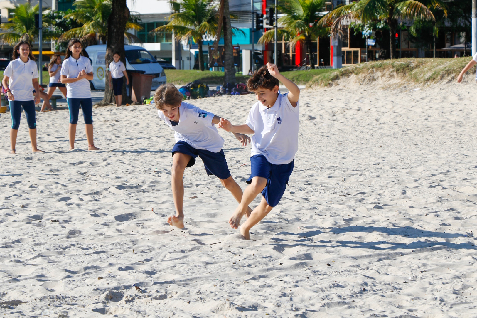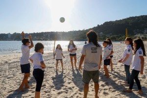 As turmas de 6º e 7º ano também viveram a experiência de ter a aula de Sports ao ar livre na Praia de São Francisco.