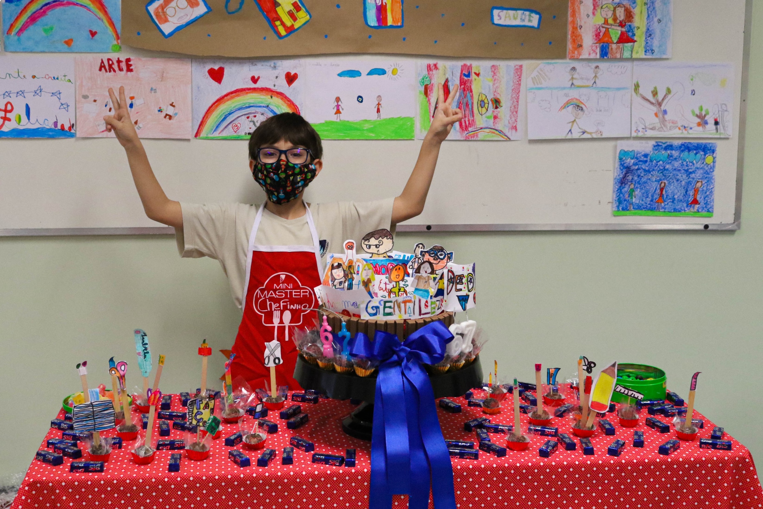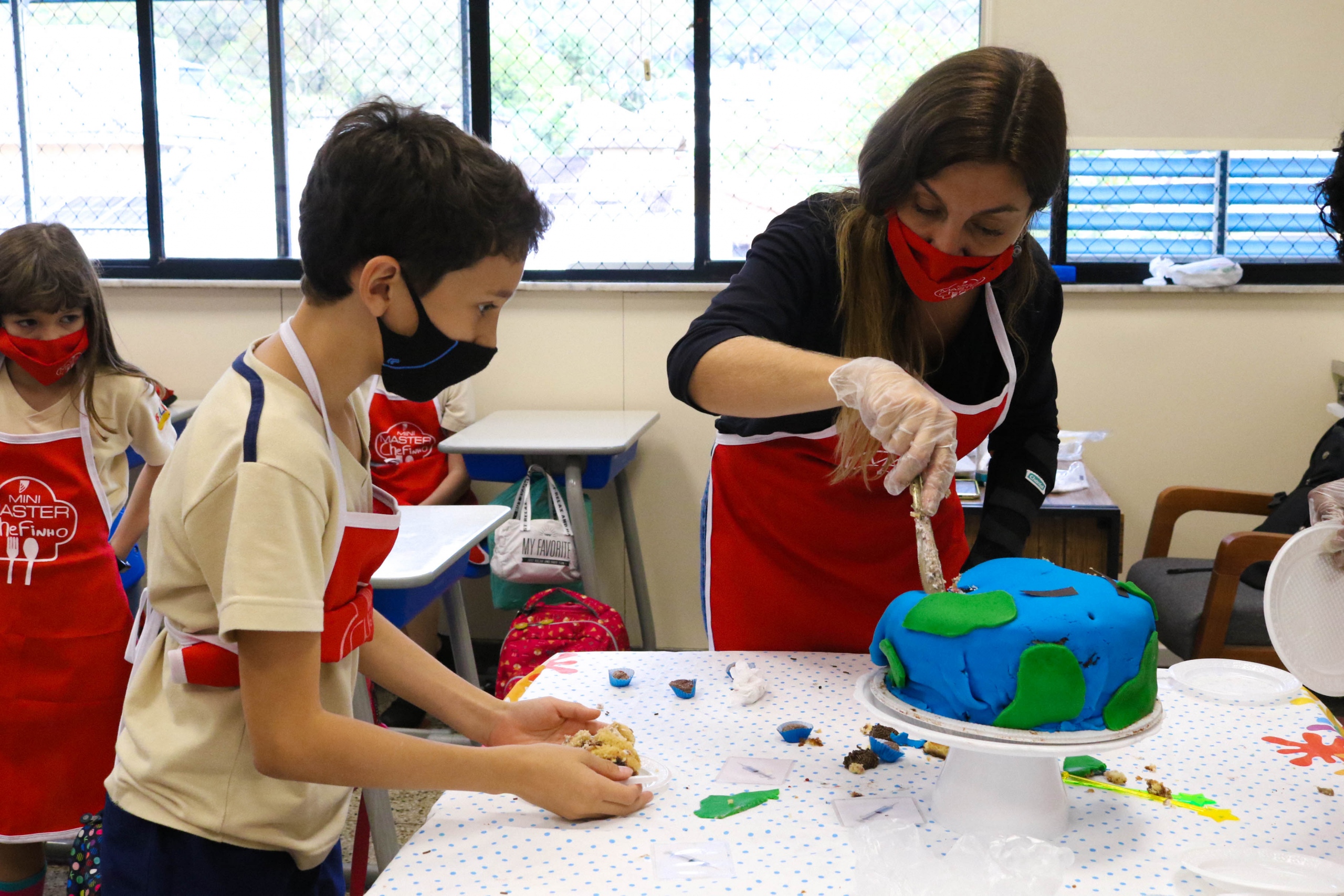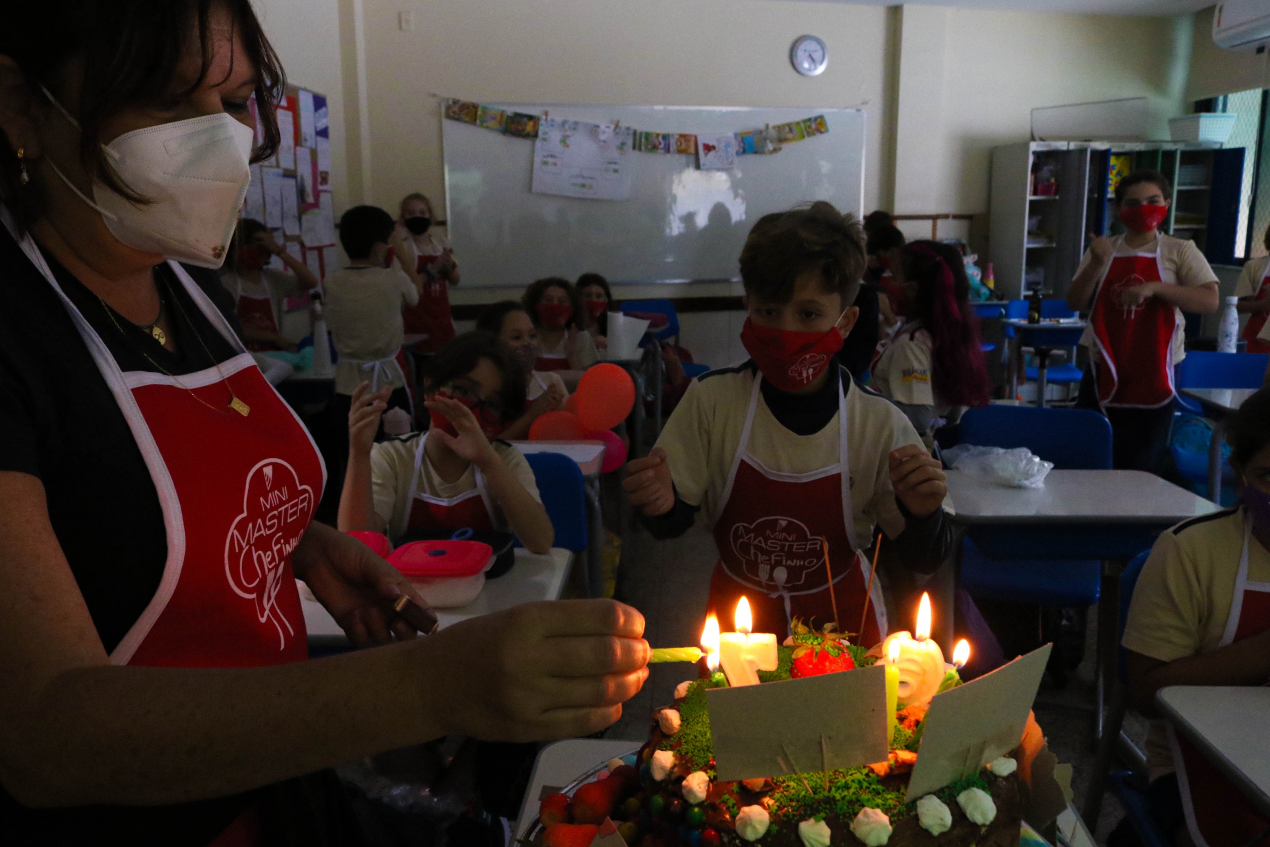 Aventais no corpo e mãos à massa! Para as turmas do 2º ao 5º ano do Ensino Fundamental, o aniversário do GayLussac contou com uma celebração mais que especial – isso porque o Mini Master Chefinho 2021, em sua 4ª edição, marcou presença de peso. O concurso, guiado pelas professoras, contou com a participação ativa das turmas, que traçaram seus próprios projetos sob o mote “A Gente Acredita”, utilizando os bolos cedidos por nós.
