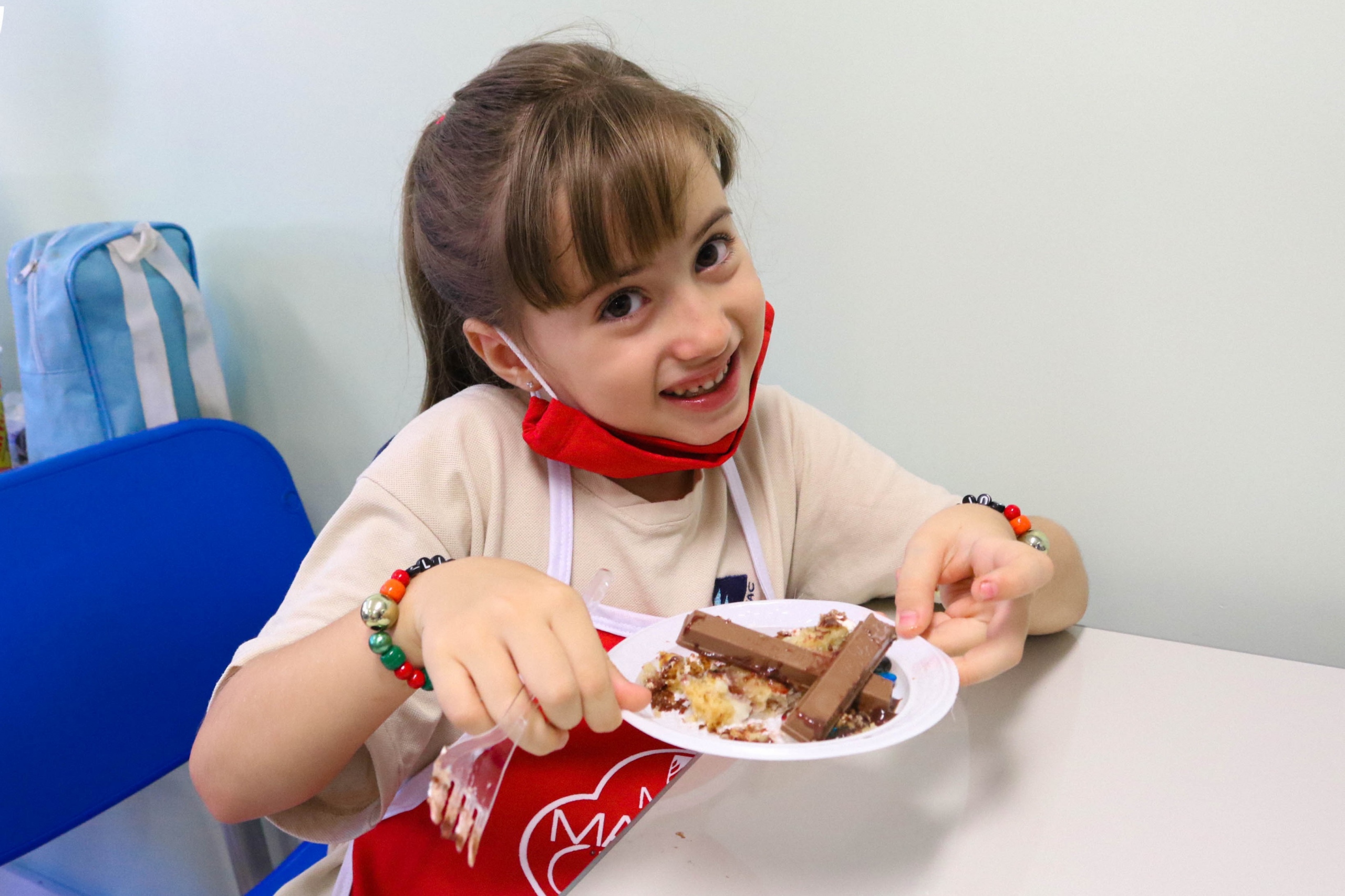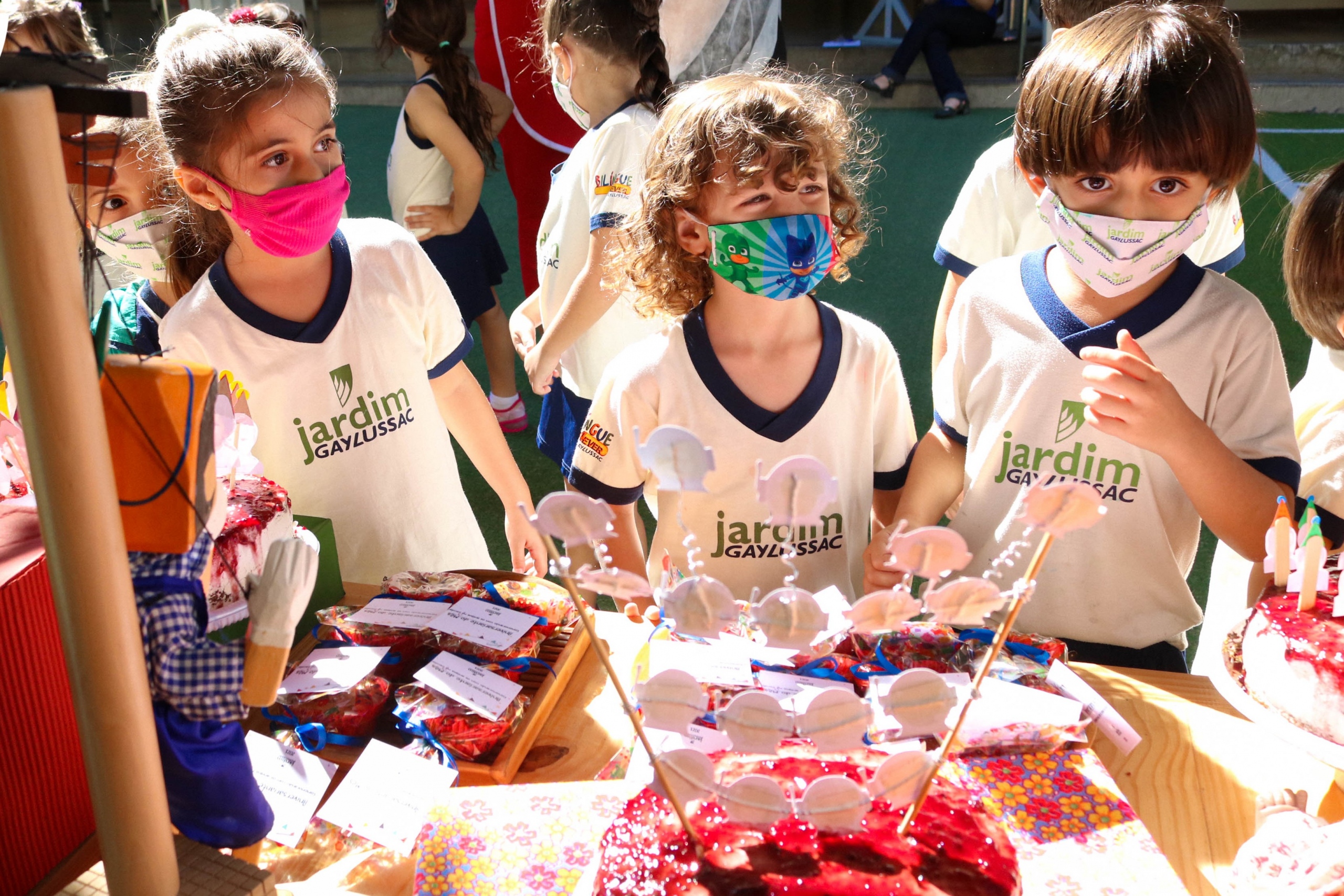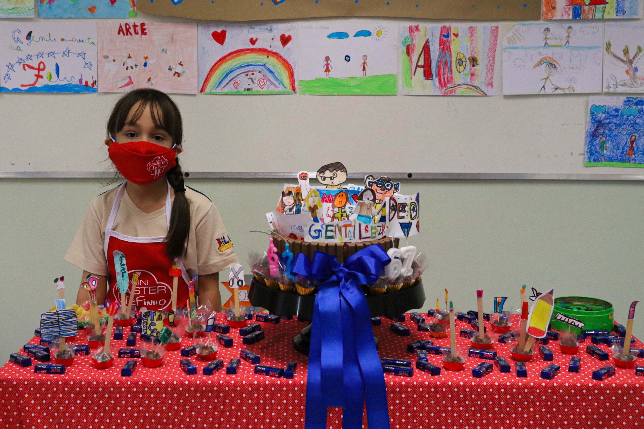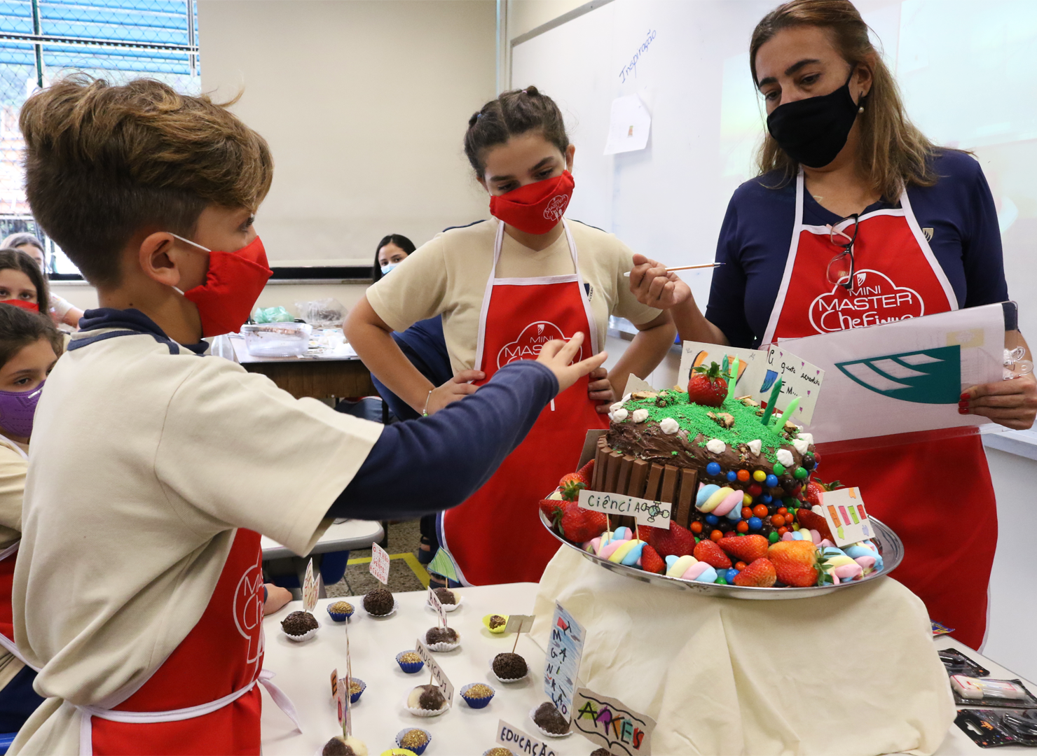 Aventais no corpo e mãos à massa! Para as turmas do 2º ao 5º ano do Ensino Fundamental, o aniversário do GayLussac contou com uma celebração mais que especial – isso porque o Mini Master Chefinho 2021, em sua 4ª edição, marcou presença de peso. O concurso, guiado pelas professoras, contou com a participação ativa das turmas, que traçaram seus próprios projetos sob o mote “A Gente Acredita”, utilizando os bolos cedidos por nós.