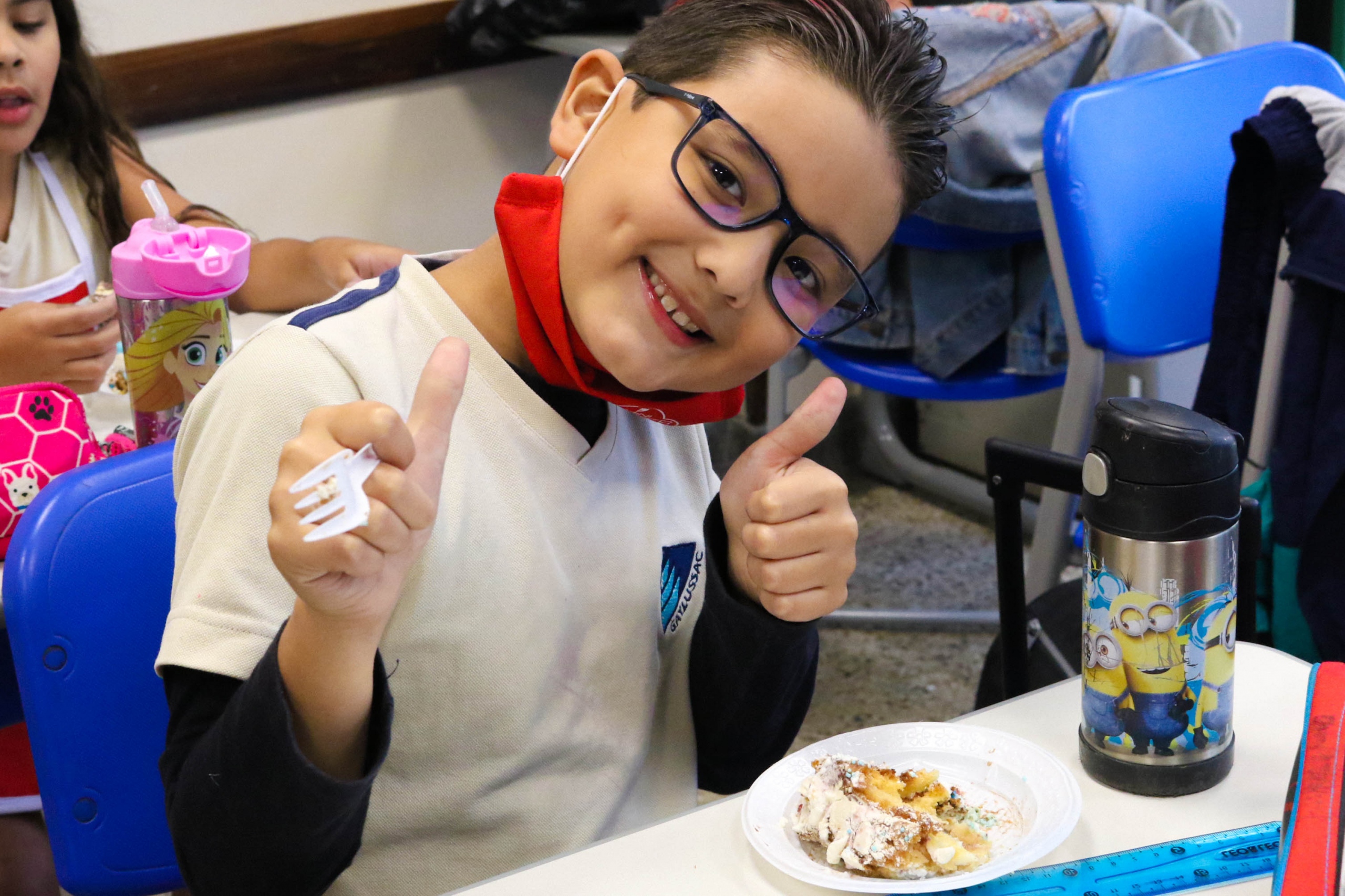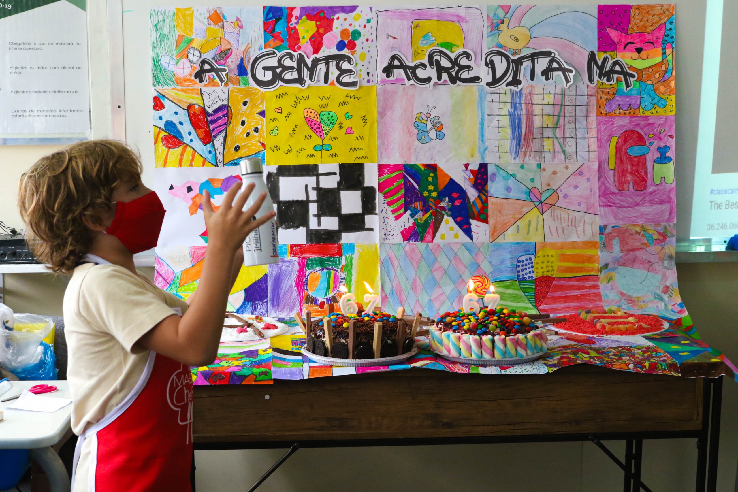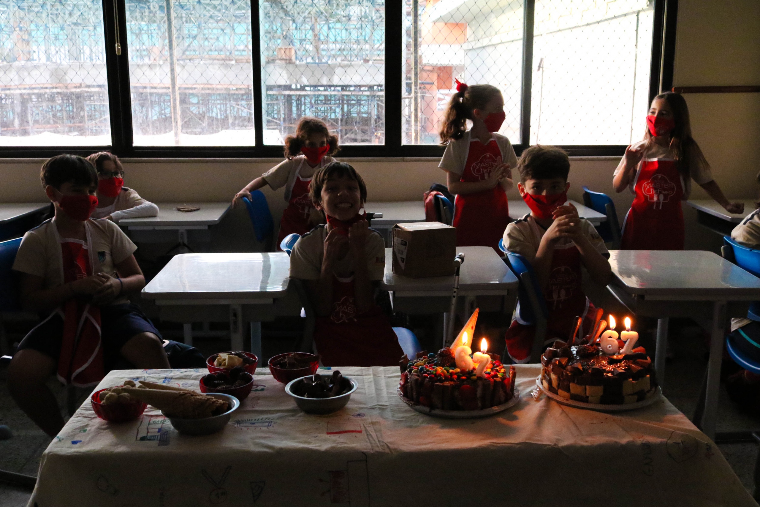 E para fechar com chave de ouro os dias de celebração, nada como um caloroso parabéns e uma fatia de bolo! “A gente acredita que, assim, as crianças estão desenvolvendo a criatividade, o trabalho coletivo e a memória afetiva, já que esse é também um momento em que eles estão se divertindo”, explica a Coordenadora do 3º ao 5º ano, Fernanda Benevento.