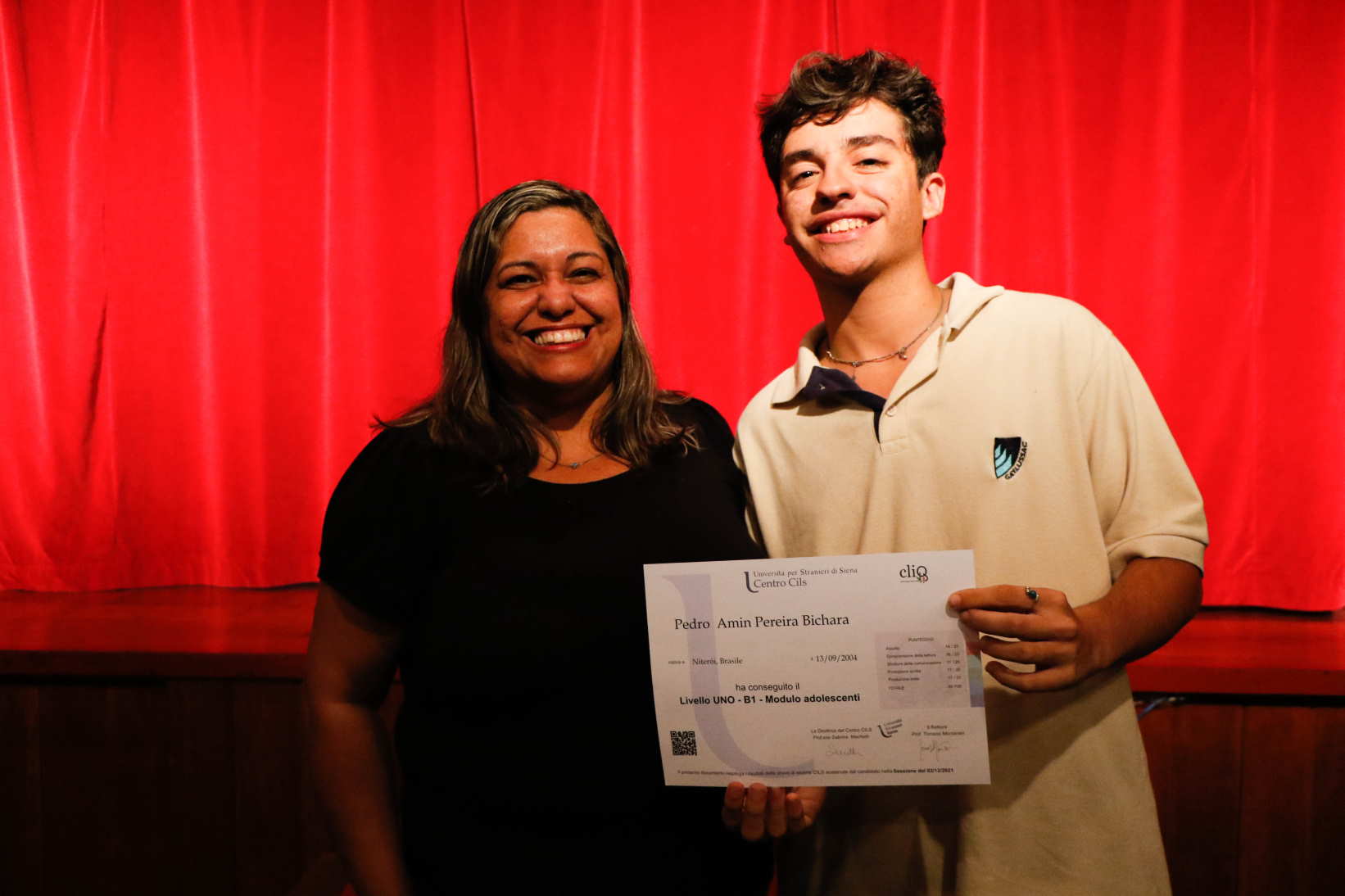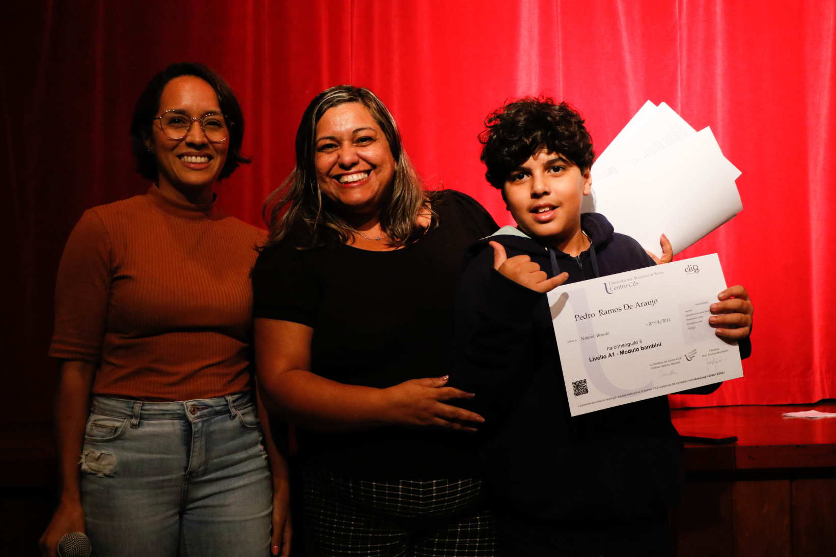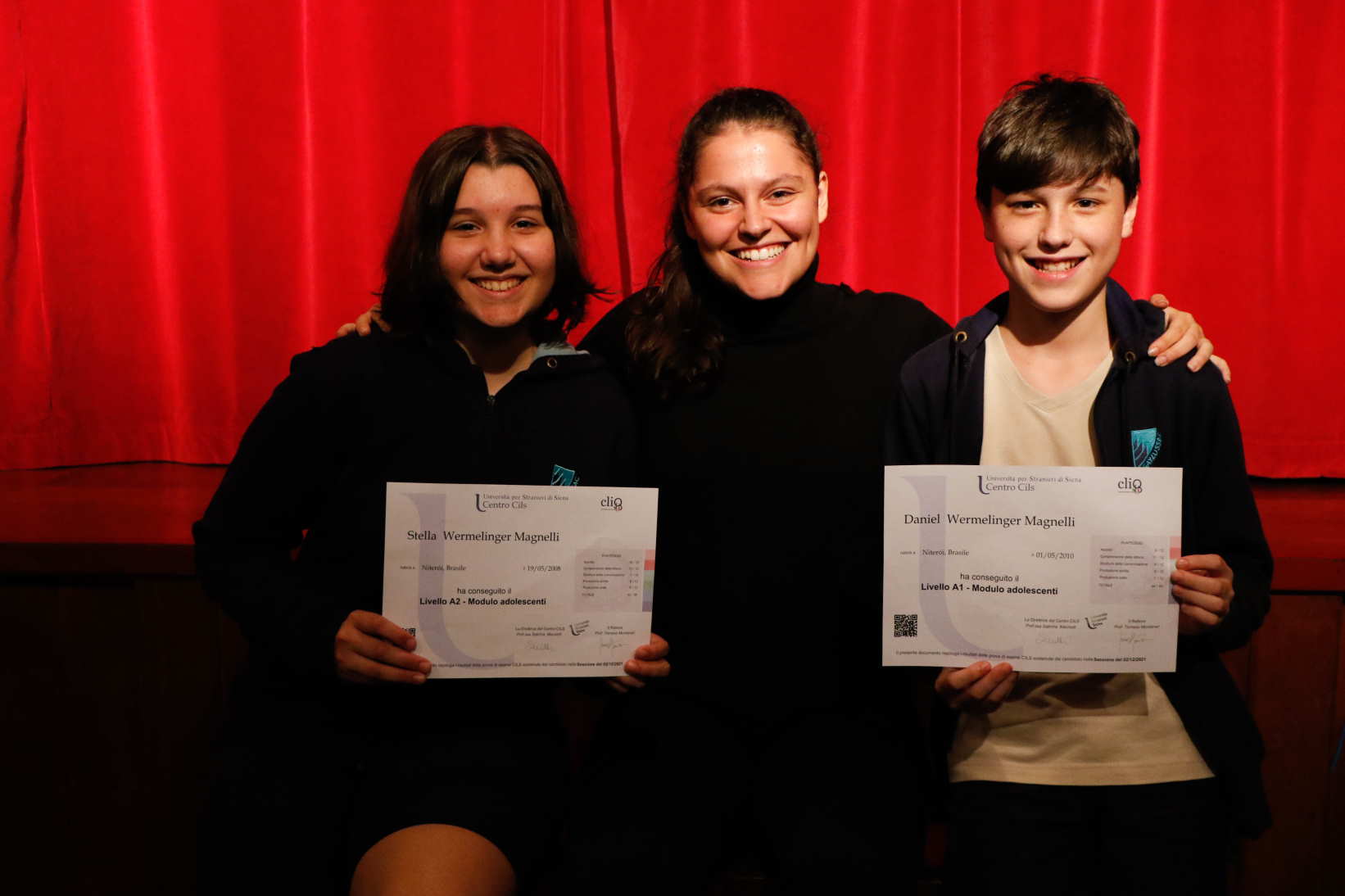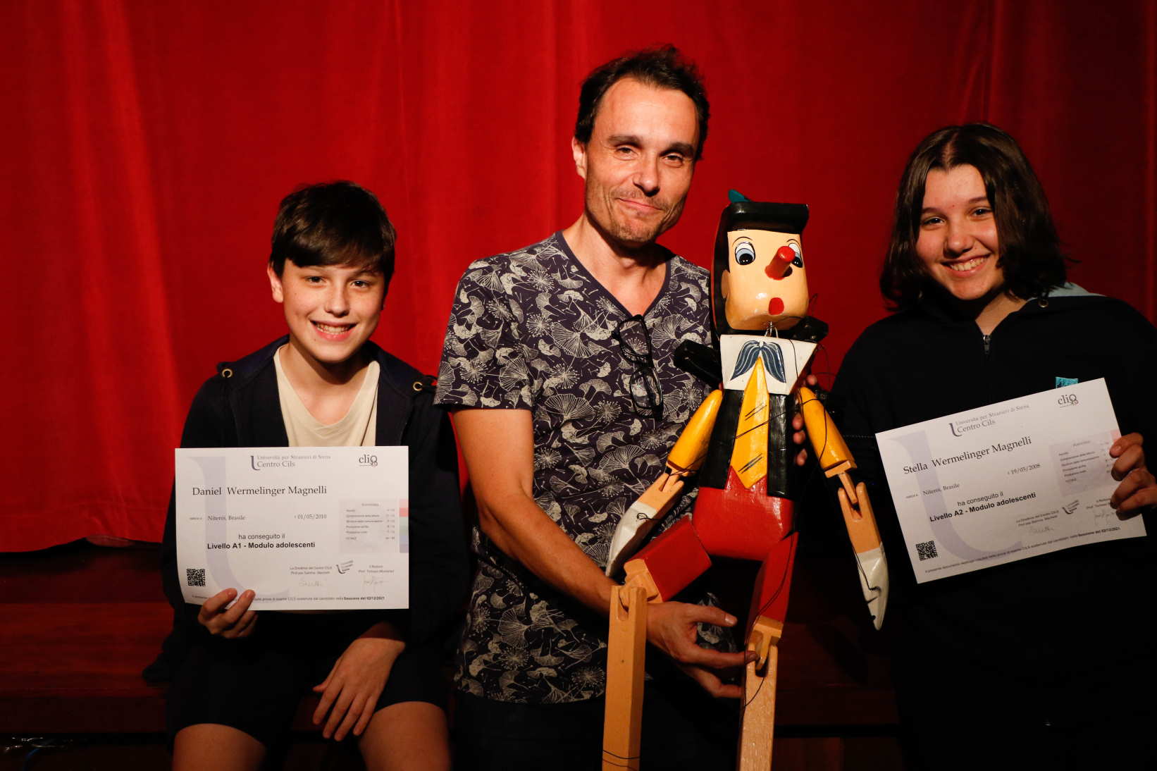 Para demonstrar o conhecimento adquirido, os alunos fizeram diferentes provas de proficiência do nível A1 ao nível B1 em italiano, colocando à prova o aprendizado de um ano de muita dedicação. Como reconhecimento, a Universidade de Siena, na Itália, emitiu certificados, atestando que todos estão prontos para a segunda fase de imersão na língua. Para celebrar o momento, eles foram convidados a assistir à peça Pinocchio, Cia de Teatro da Scuola di Cultura.