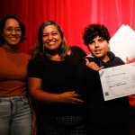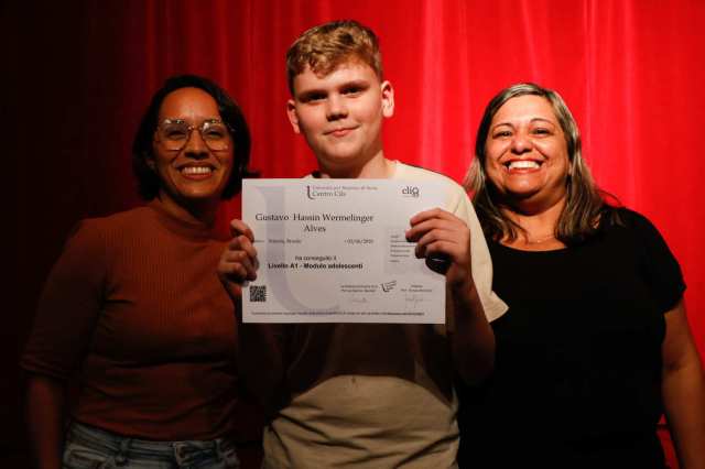 “É o meu 3º ano e eu gosto muito das aulas, aprendo muito e pratico minha oralidade. Receber o certificado foi importante pois mostra o resultado da minha dedicação ao curso”, conta a aluna Giovanna.