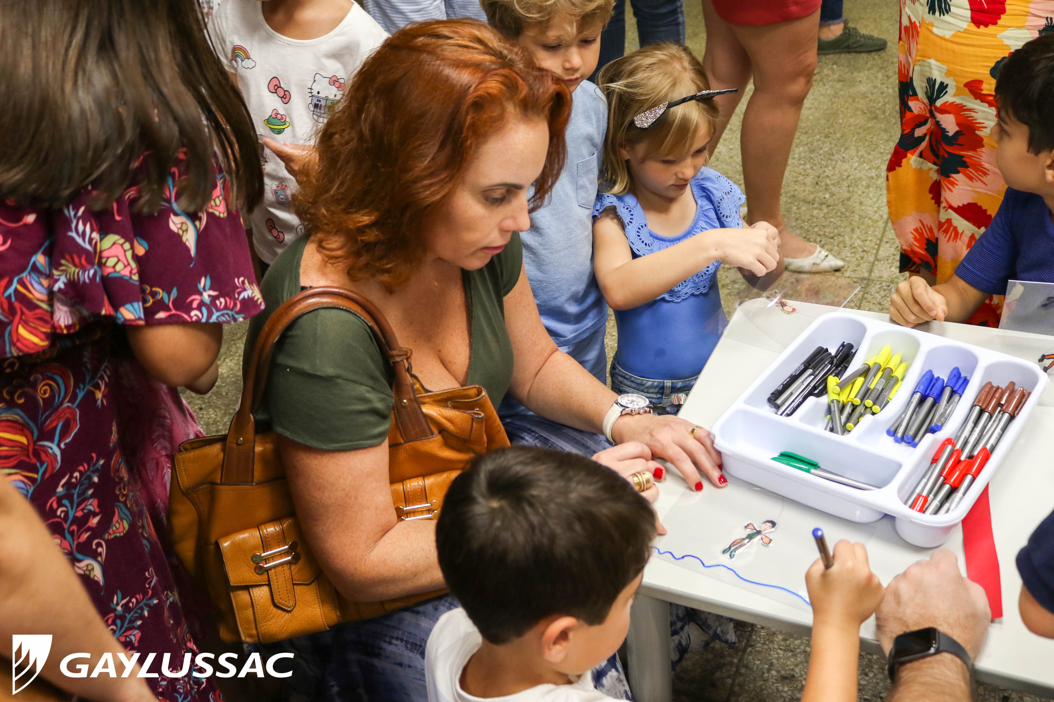 Letícia Lima, mãe do Gabriel, da M2T2, e do Pedro, da J2T2, conta: “O Clube de Pesquisa é incrível para o desenvolvimento das crianças. O Gabriel ficou muito curioso e querendo saber o funcionamento de tudo que roda. Já o Pedro dava aulas sobre o espaço, o movimento do sol, dos astros, que foi o tema do Clube dele. Hoje é o momento de ver tudo que foi aprendido de integrar a família e a escola. Estar aqui para mim, que tenho uma vida tão corrida, é muito importante”.