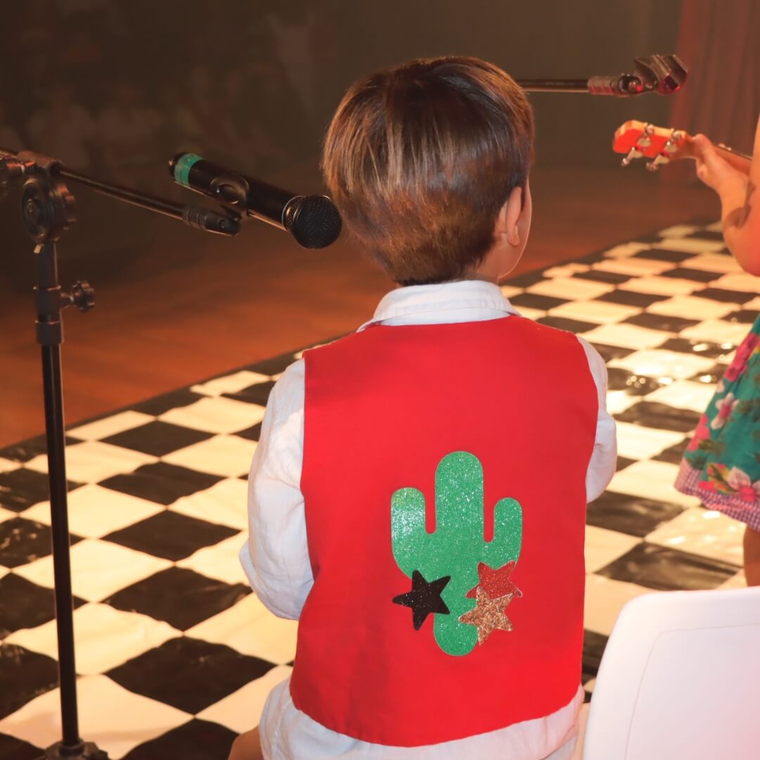 Em 2025, o grande homenageado foi o baiano Gilberto Gil, cantor, compositor e criador do movimento tropicalista, que há mais de 60 anos contribui de forma brilhante para a cultura brasileira. Nos palcos do Teatro GayLussac, já passaram homenagens a grandes ícones da nossa música, como Sandra de Sá, Barão Vermelho, Rita Lee, Milton Nascimento e outros clássicos do cancioneiro nacional, transformando a mostra de talentos em um verdadeiro show de música brasileira. O objetivo é ampliar o repertório cultural dos alunos, valorizando a diversidade e incentivando cada criança a brilhar com seu talento. Nossos pequenos artistas surpreenderam: pintores, cantores, guitarristas, pianistas e percussionistas animaram a plateia com performances cheias de energia e sensibilidade.