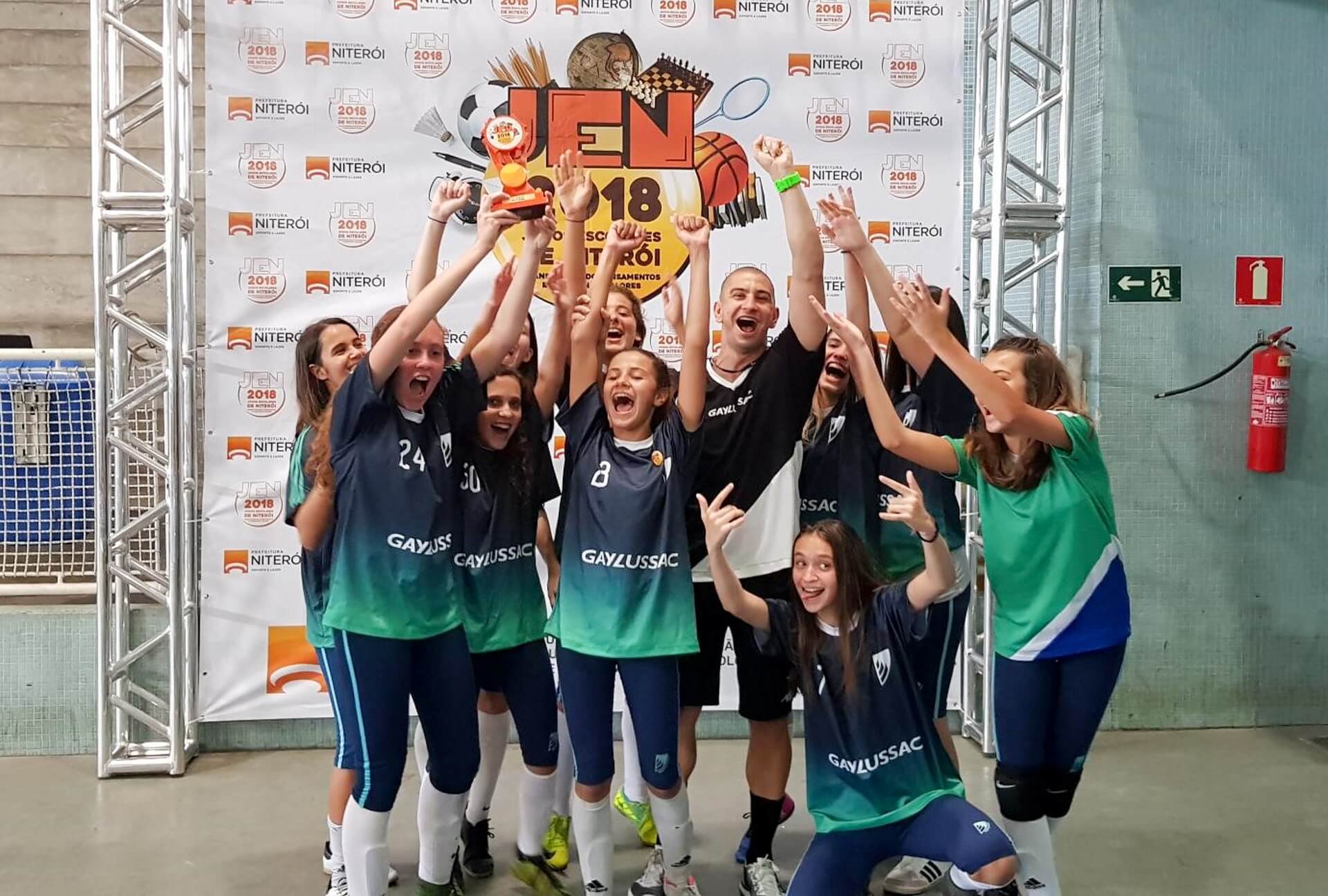 Muita garra, força, concentração e a paixão pelo esporte, levaram as equipes de Futsal e Rugby ao pódio dos melhores times esportivos da cidade, os Jogos Escolares de Niterói (JEN). Neste ano, as equipes femininas e masculinas de Futsal e o nosso primeiro time de Rugby, subiram ao pódio e voltaram com o ouro, a prata e o bronze para casa.