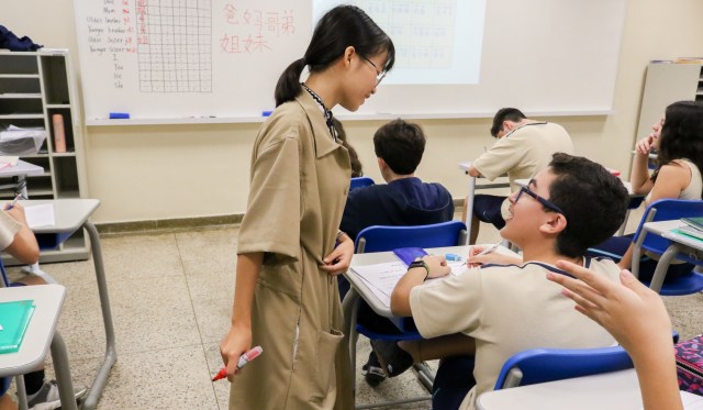 Já pensou em ter que se comunicar sem expressar o gênero? Sem poder indicar se é singular ou plural? Ou sem conjugar os verbos em passado, presente e futuro? Essas são algumas características marcantes do Mandarim, que os alunos do 7º e 8º anos estão aprendendo, junto com a alfabetização em ideogramas.