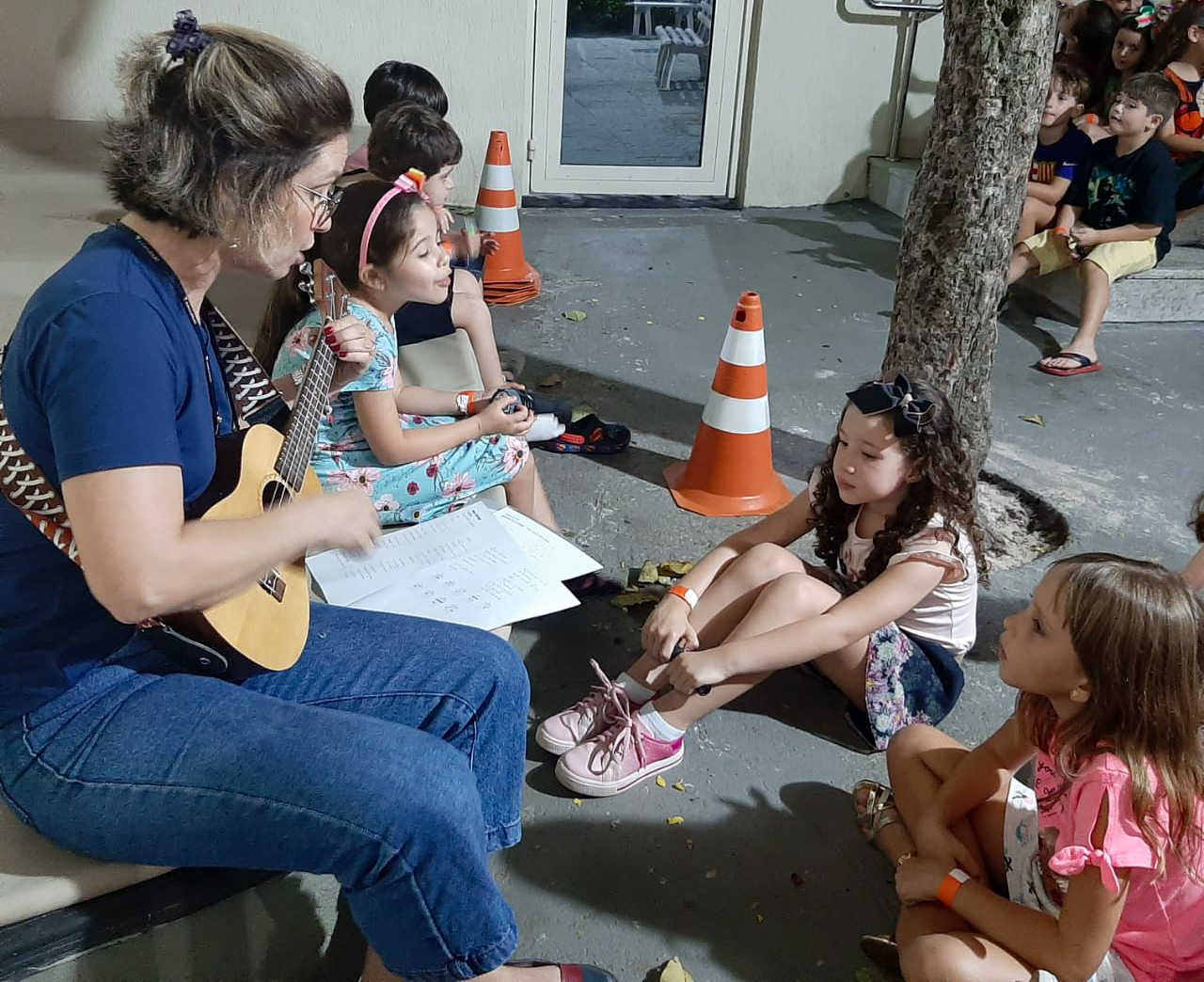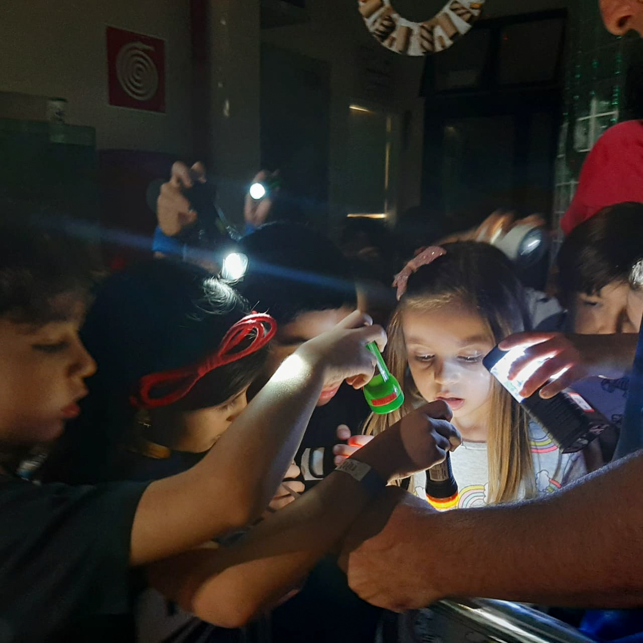 A noite começou com uma discoteca Dancing with the Stars na aguardada Noite do Pijama do 1º ano do Ensino Fundamental. Depois, uma cantoria embaixo da árvore, todos caçaram o tesouro, que eram as próprias mensagens que os alunos iriam deixar para o GayLussac Jardim em seu último ano no prédio da Educação Infantil. Observação das estrelas e pintura neon também marcaram presença. Mas o ápice da noite foi a contação de histórias com a professora Bolinha na Sala de Leitura. Lá, após os olhinhos ficarem vidrados com a história de uma princesa perdida, os alunos receberam e folhearam pela primeira vez o livro produzido por eles “Nós os autores”, lendo os próprios texto e os dos colegas.