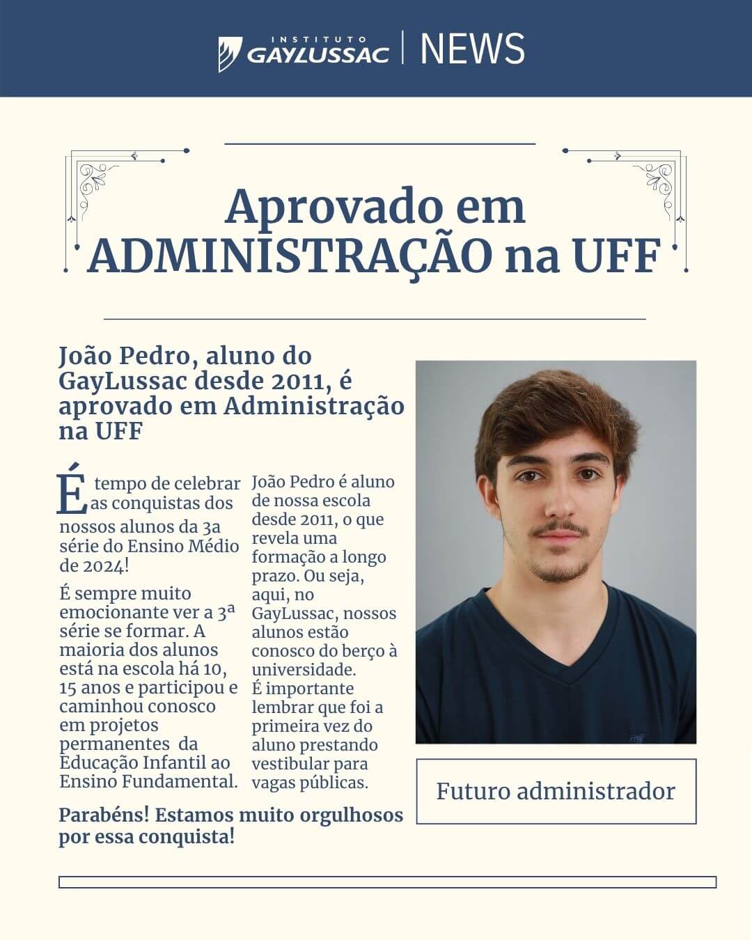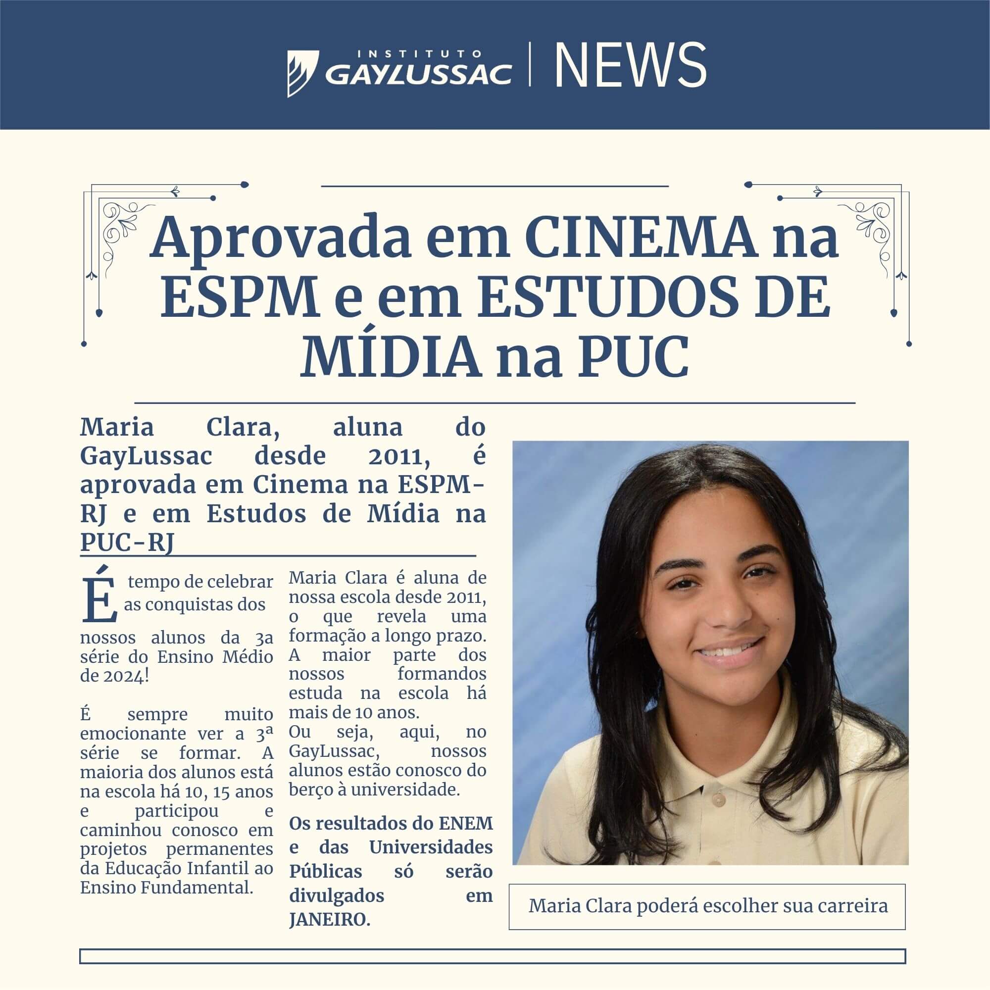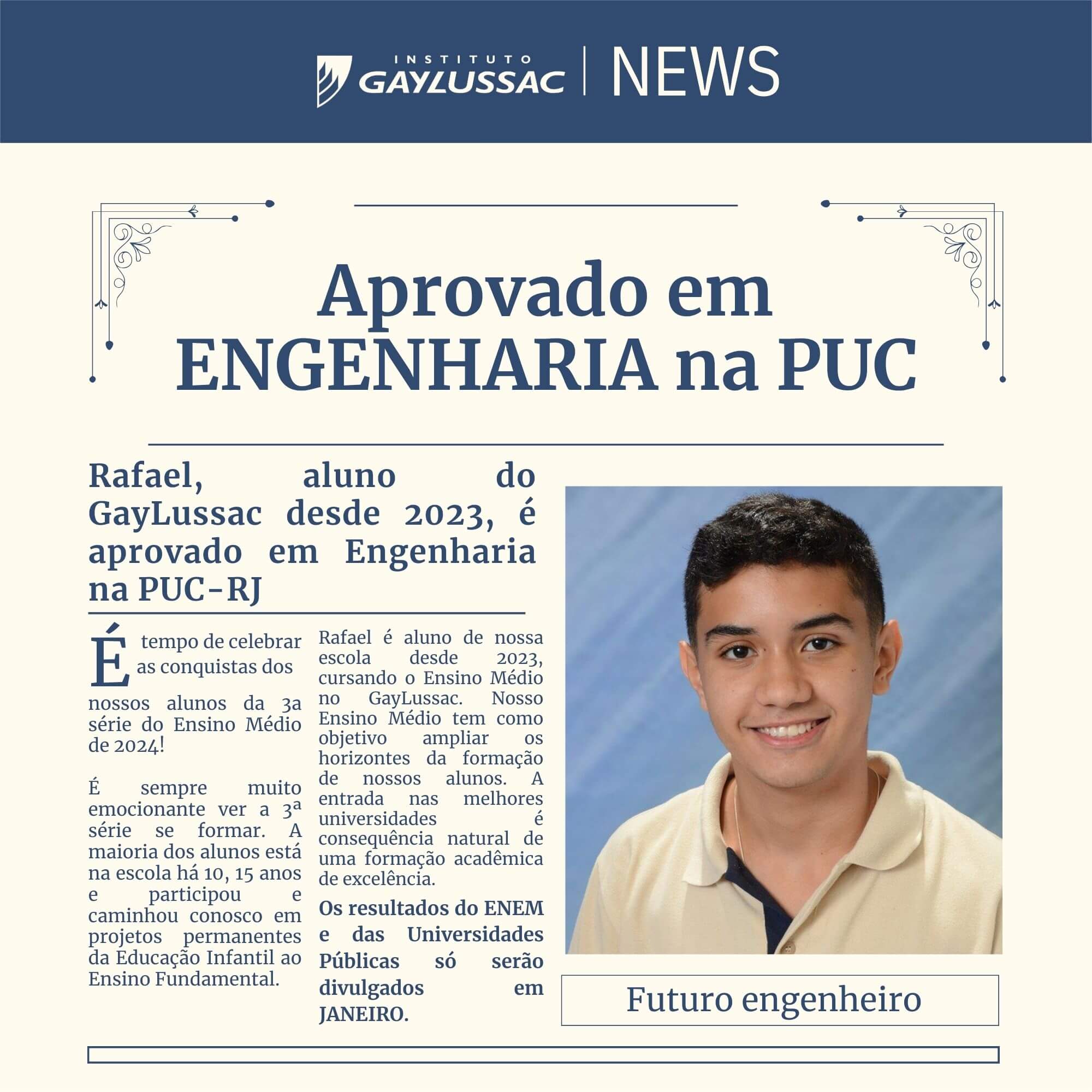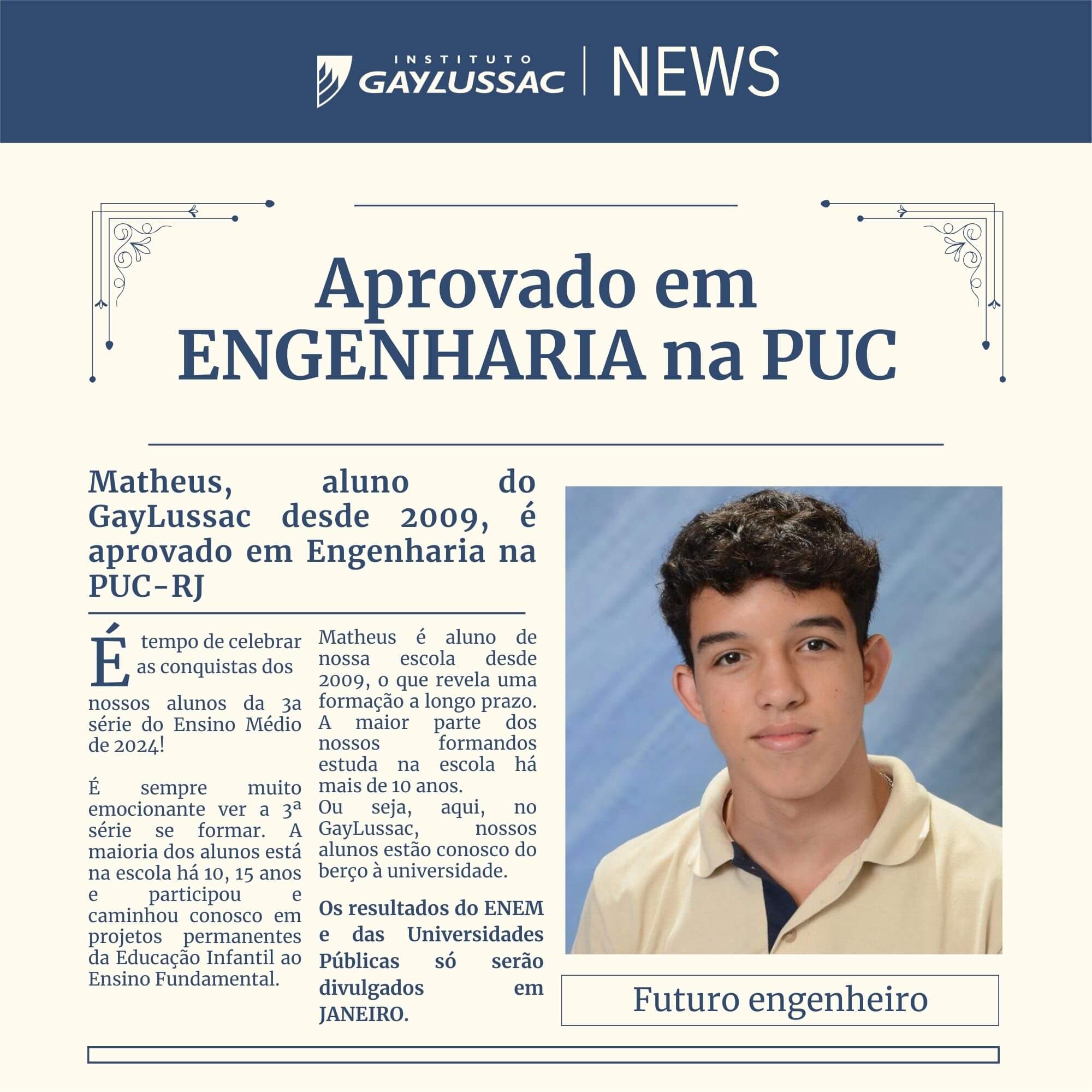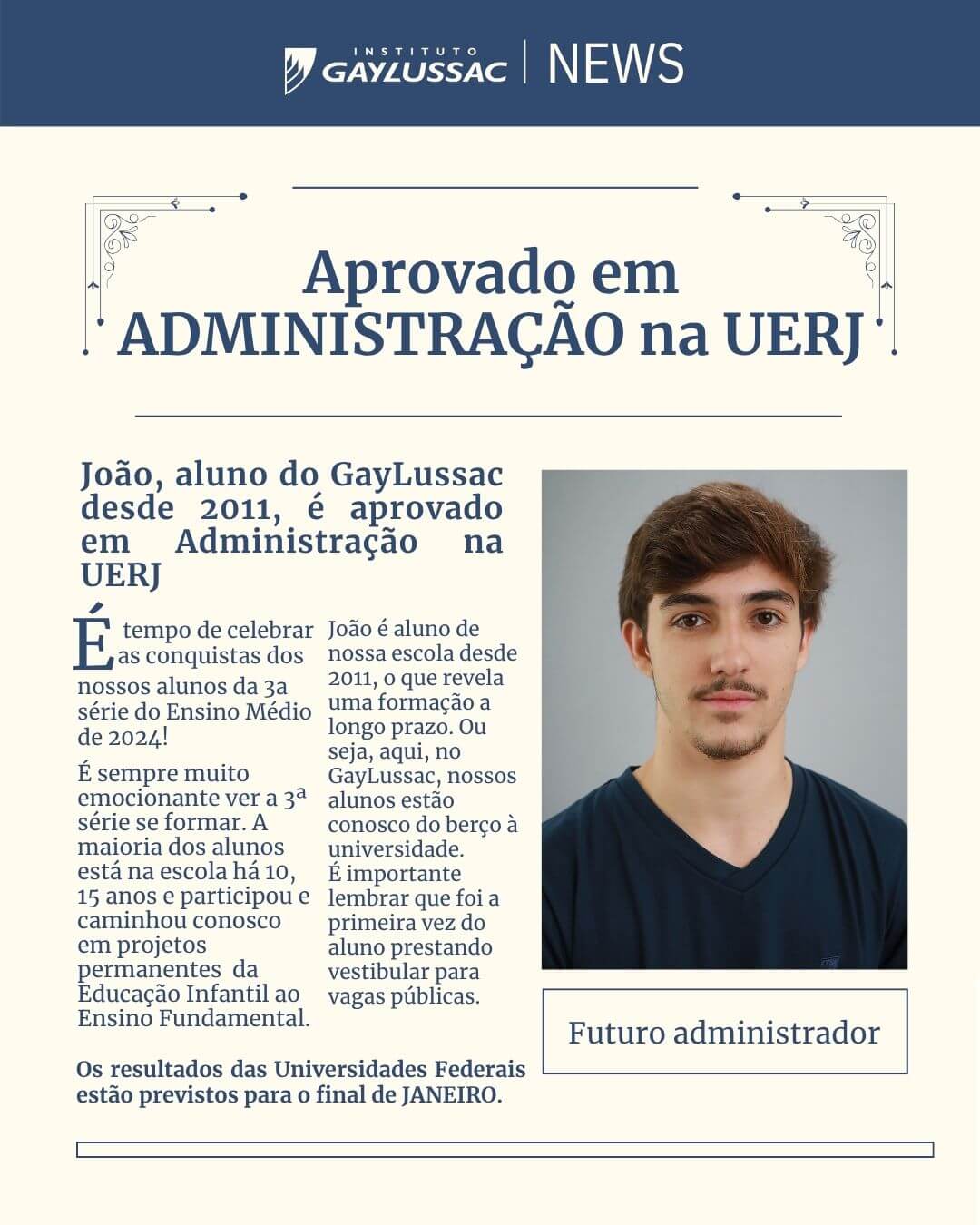O Instituto GayLussac tem o orgulho de anunciar os resultados das aprovações de seus alunos da 3ª série do Ensino Médio em 2024. Foram 151 vagas conquistadas em universidades públicas, privadas e internacionais, por 77 alunos com apenas 17 anos. Um marco que comprova a força do nosso projeto pedagógico, pautado na excelência acadêmica, na formação crítica e na valorização do protagonismo juvenil.