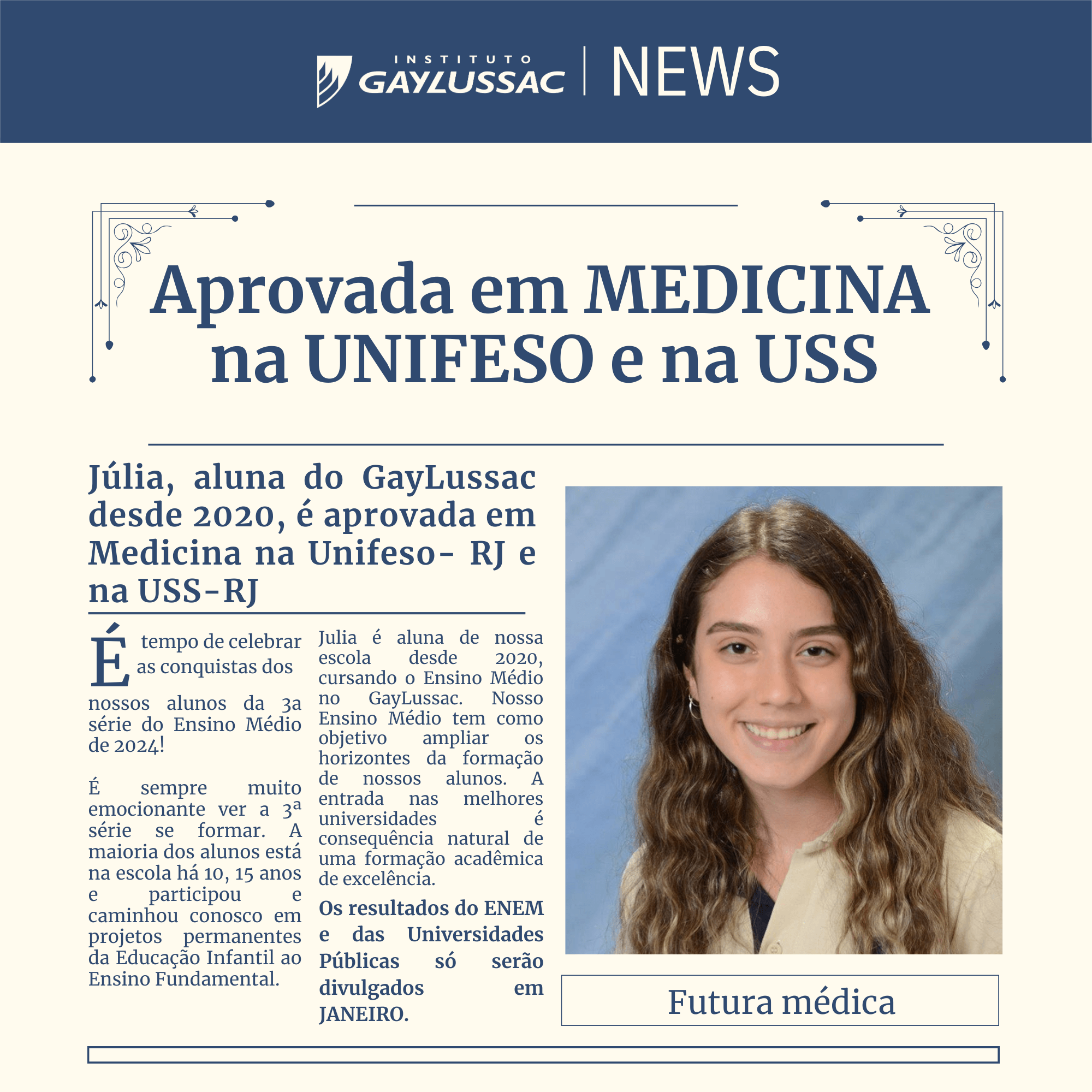 - 22 aprovações em Medicina, sendo 1 na UFRJ;