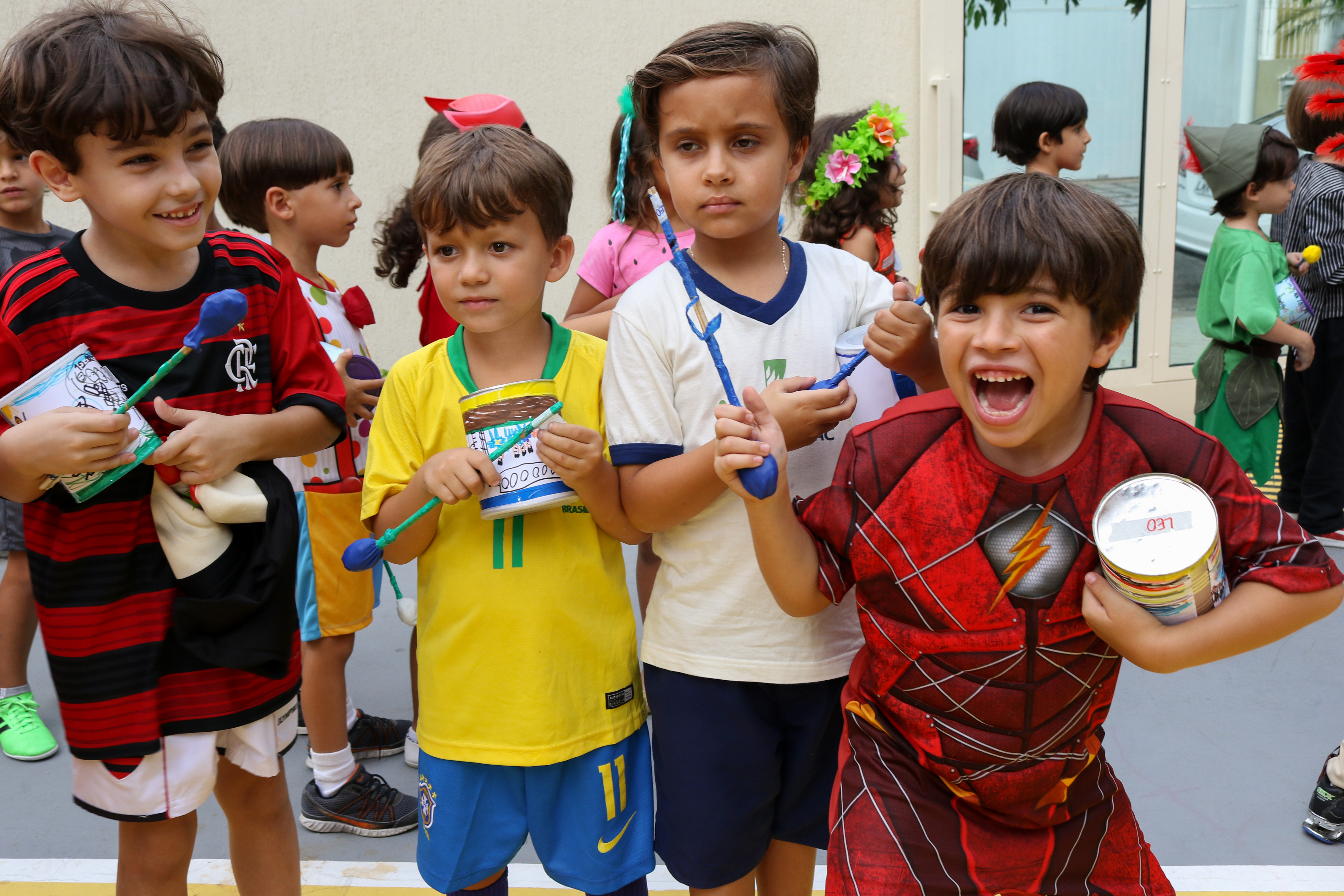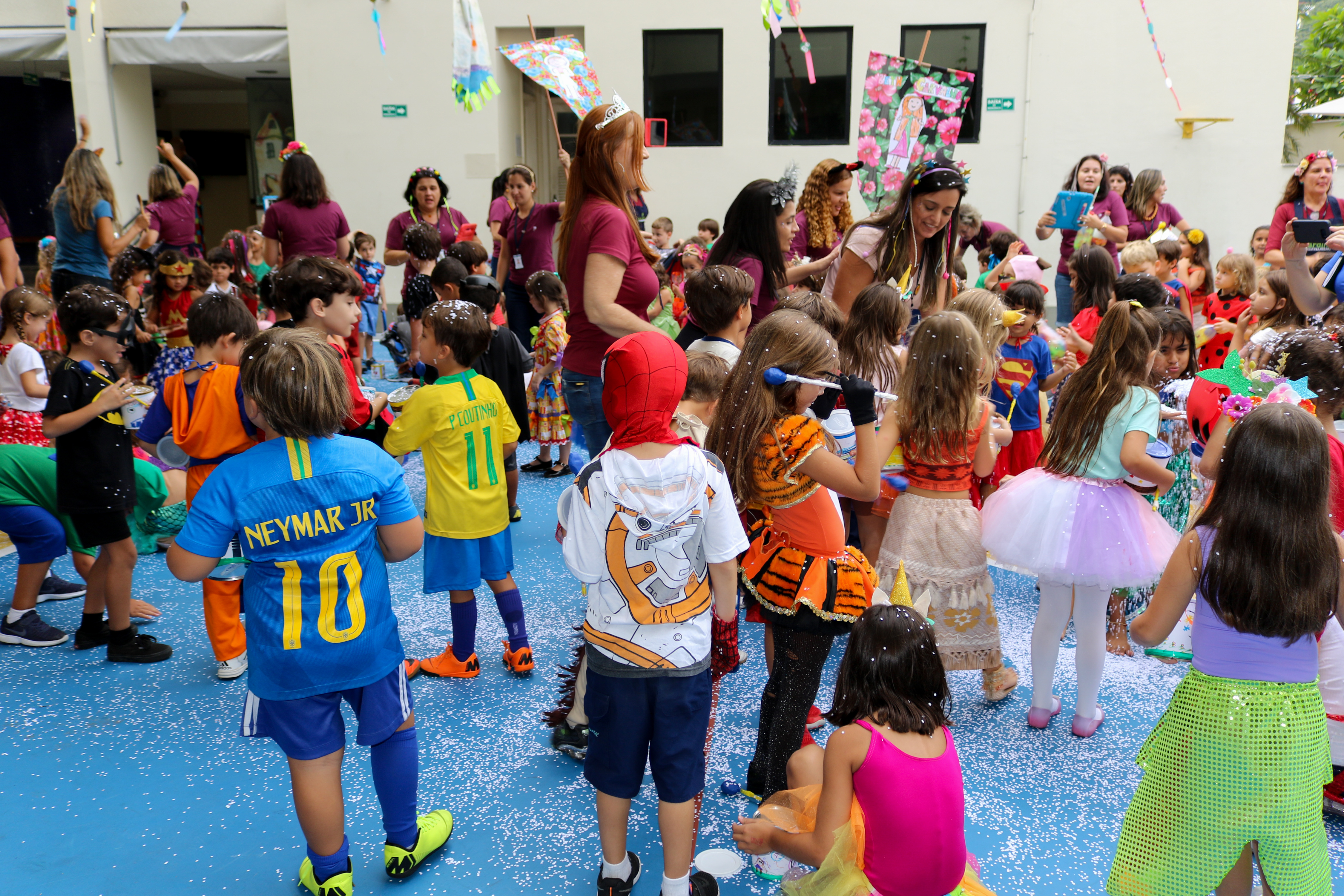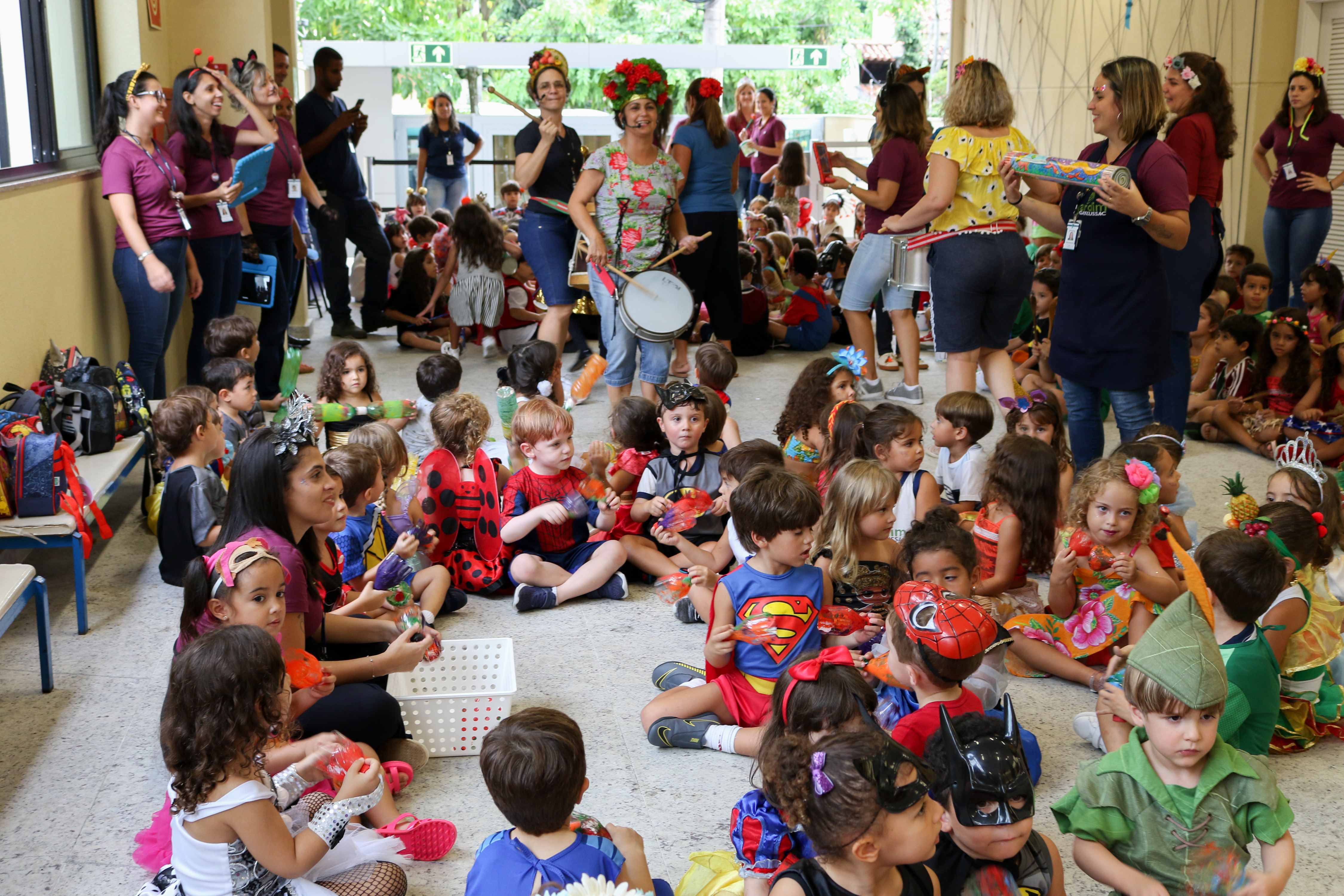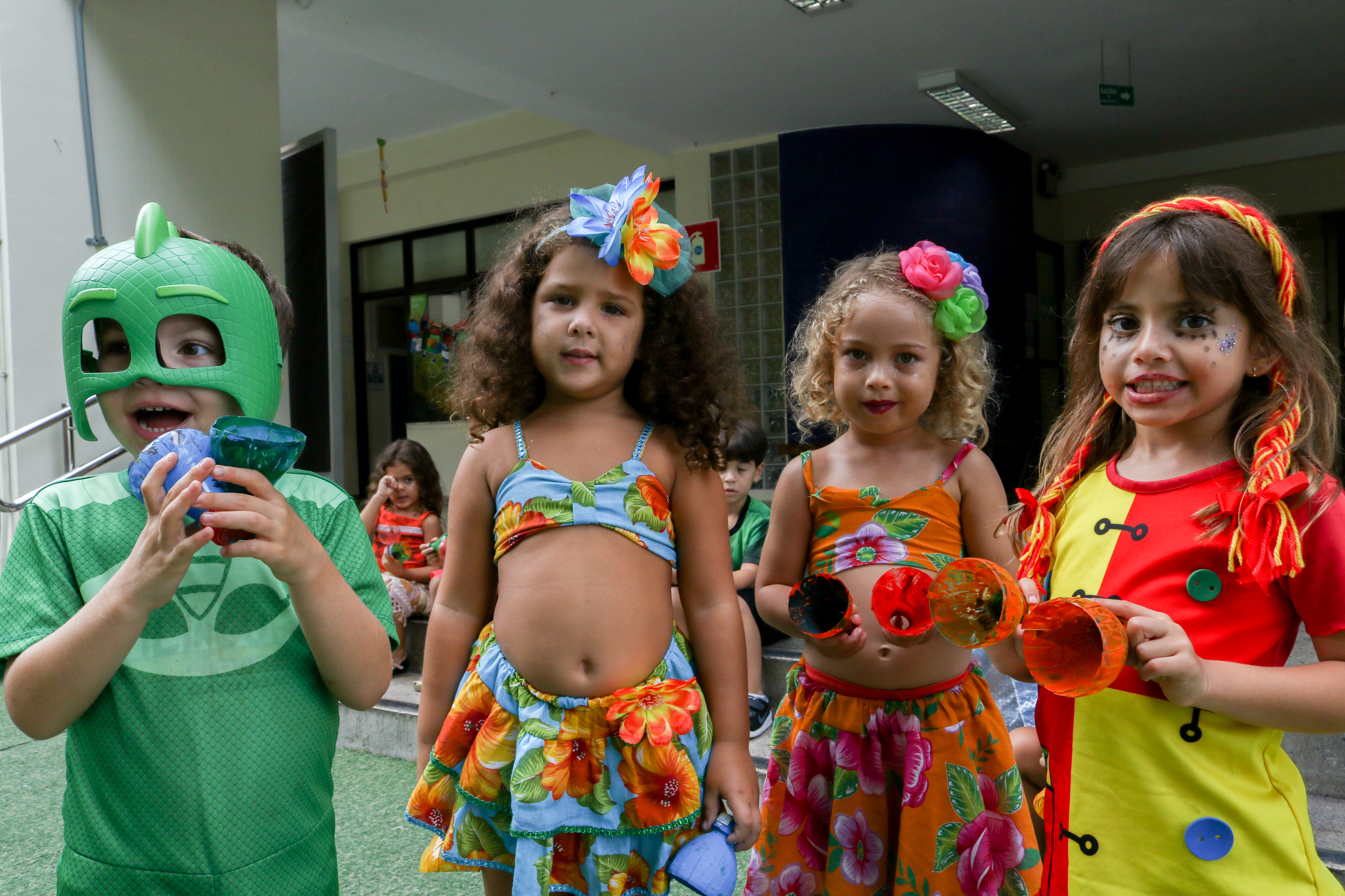 Nos dias de folia, as crianças se vestiram de seus personagens preferidos e pularam ao som das marchinhas que haviam aprendido. As professoras de música Cláudia Barros e Priscilla Paraíso, comandaram o cortejo e as docentes empunhavam o estandarte feito pela sua turma. No fim, muito confete feito de material reutilizável, que animou nossos pequenos.