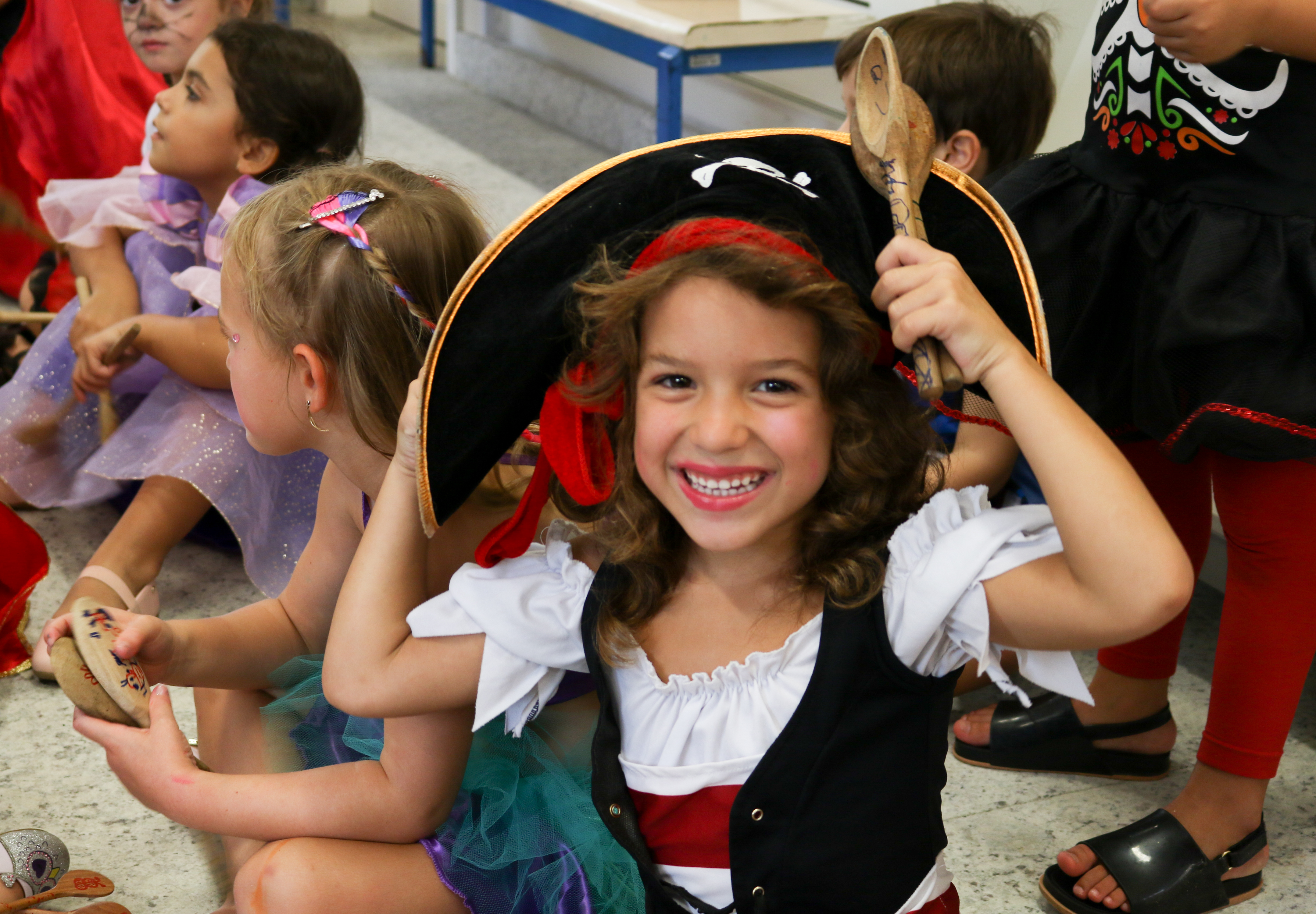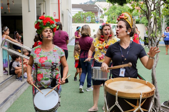Fantasias, confetes, estandartes e marchinhas animadas percorriam o pátio do Jardim. Inspirado nas canções de Chiquinha Gonzaga, Clementina de Jesus e Dona Ivone Lara, em fevereiro, o bloco de carnaval “Eu vim de lá pequenininho” fez as turmas da Educação Infantil celebrarem a cultura e a diversidade da festa mais popular do país, o carnaval. Saúde, diversão e sustentabilidade fizeram parte desse dia, que contou com apresentação de instrumentos confeccionados nas aulas de música com material reciclável, 5ª Fruta coletiva e uma impecável decoração feita pelos alunos em oficinas de ornamentos com sacolas reutilizadas.