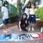 As alunas Ana Luisa Flores, Manuela Chagas e Maria Clara Meneses, da 6M3, contaram: “Gostamos de ver as obras do Banksy e de debater sobre elas. Achamos que é um convite à reflexão, mas de forma indireta. Não conhecíamos antes”. Maria Clara finaliza: “Gostei muito de trabalhar com o spray, foi muito diferente”.