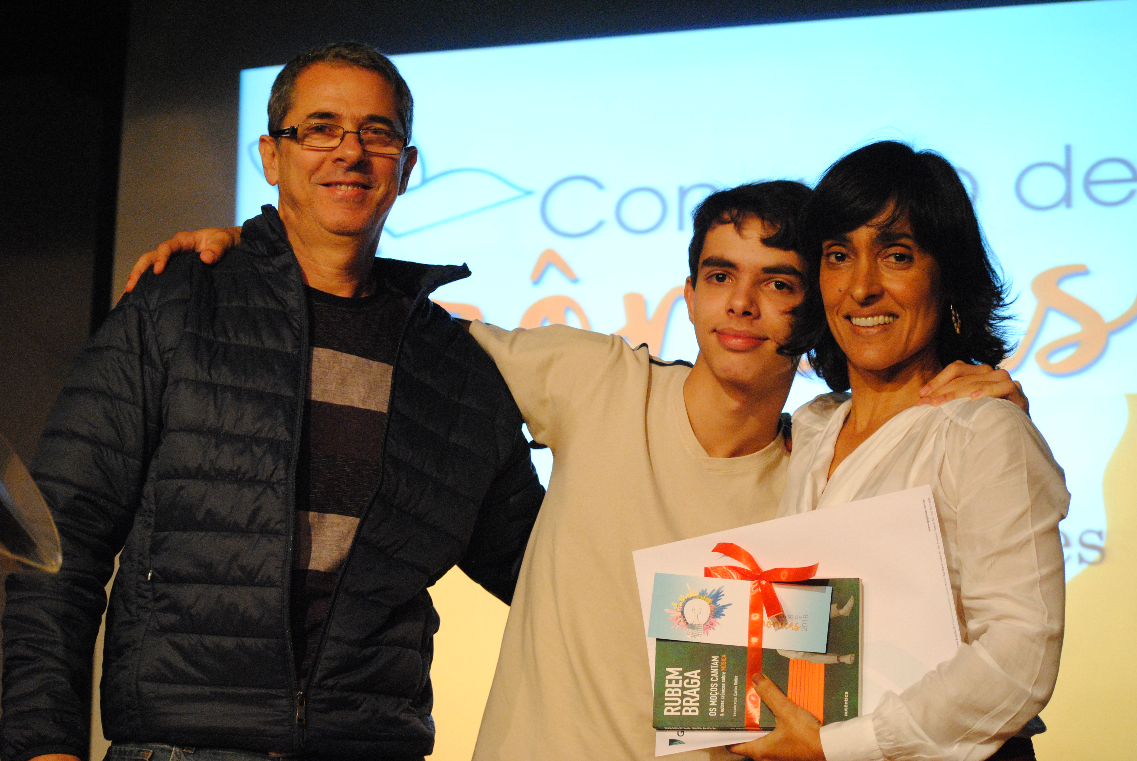 “Estar participando dessa conquista do Bernardo é algo fabuloso, ainda mais com algo que sai do lugar comum das atividades acadêmicas. Vê-lo premiado por uma produção que tem um cunho artístico, se torna um destaque da escola no ensino da literatura. Ficamos surpresos com a qualidade das produções e com a fluência escrita, realmente foi além das minhas expectativas” – Ana Cláudia Corado, mãe de Bernardo