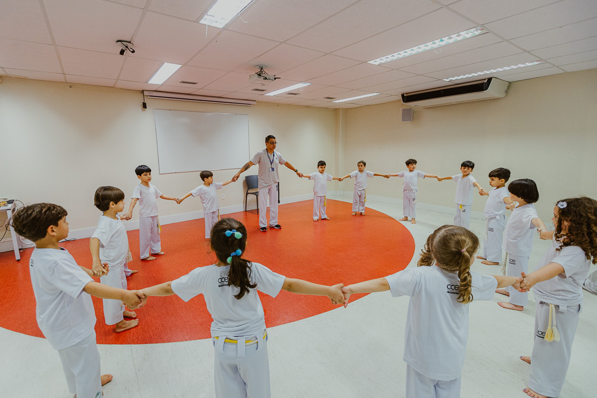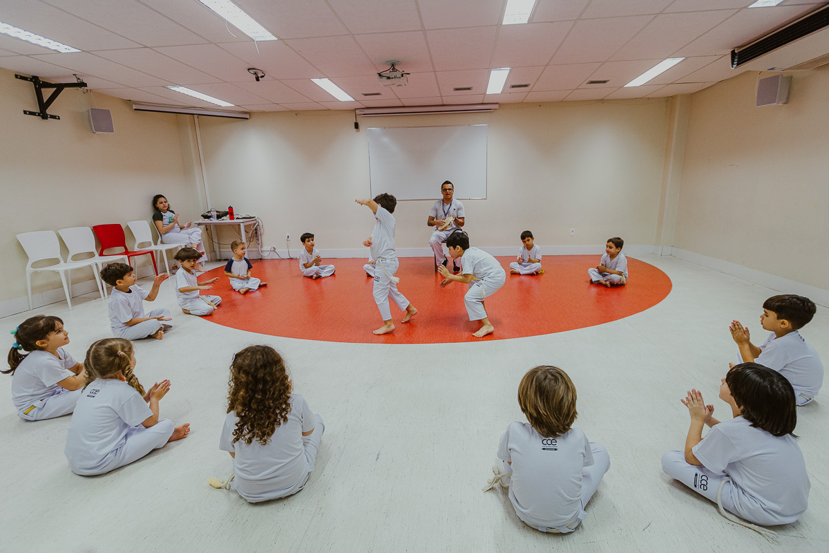 Durante a aula de Contextos Transdisciplinares, alunos do 6º ano do Ensino Fundamental aprenderam a história e a filosofia da Grécia Antiga. O julgamento de Sócrates, acusado por Meleto, foi uma disputa jurídica travada na cidade-estado de Atenas. A partir da simulação, os alunos tiveram poder de escolha para mudar ou não o final dessa polêmica história.
