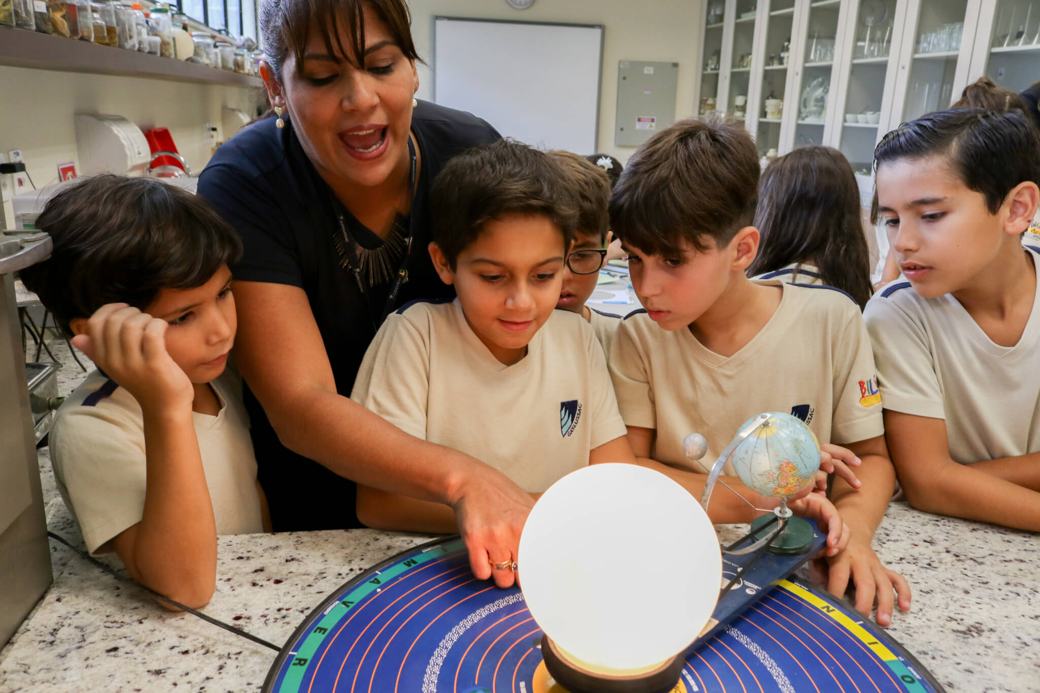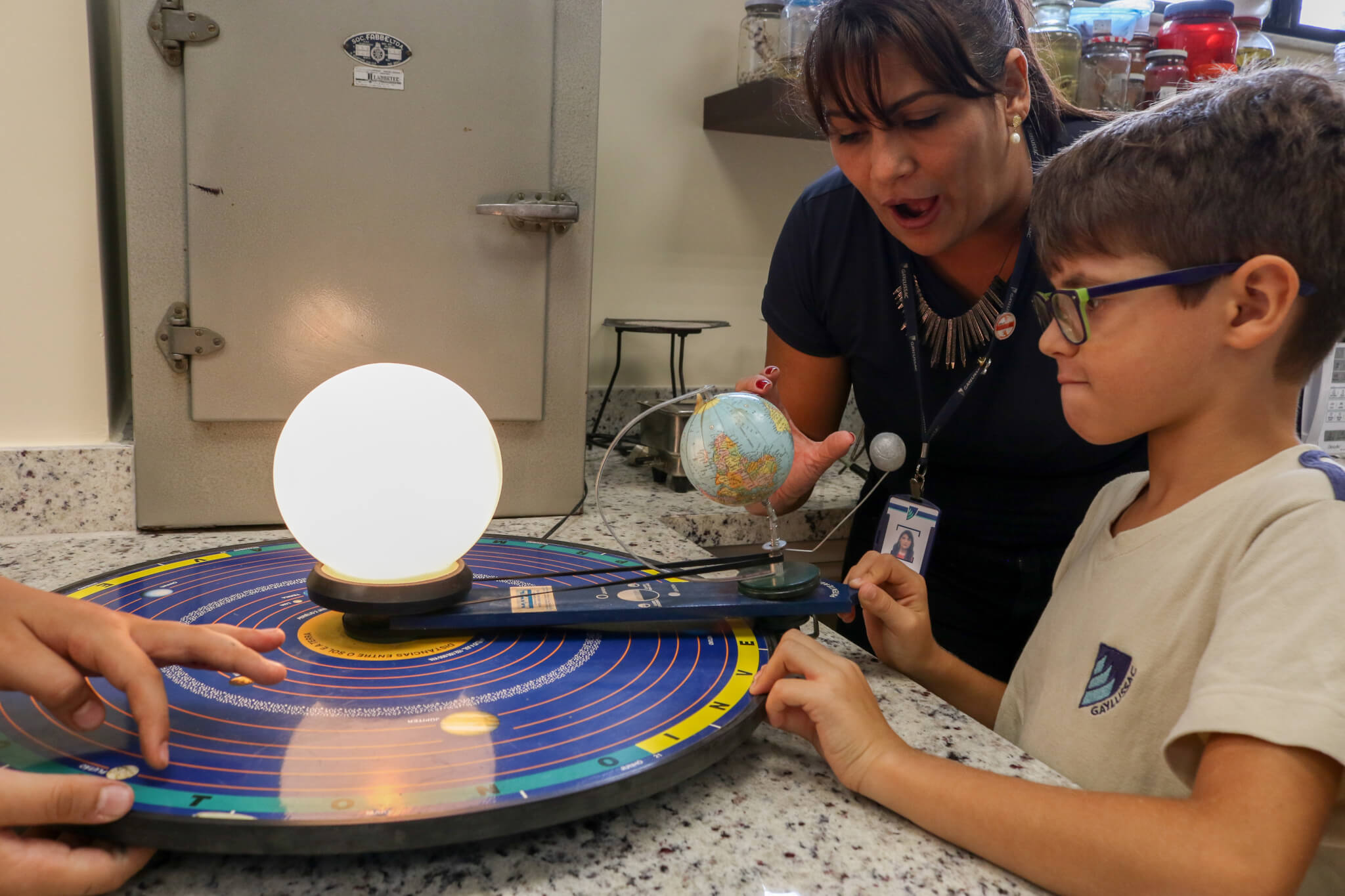 A turma 4T1 visitou o Laboratório de MultiCiências para obter imagens e informações sobre a nossa casa, o planeta Terra. Com muita curiosidade e ludicidade, as crianças foram desvendando a posição dos planetas e a importância do Sol sobre a Terra. O espaço sideral e seus mistérios se tornaram alvo de muitos questionamentos. A atividade faz parte da disciplina de Ciências e está inserida no objetivo 15 da Agenda 2030, que é o mote do ano letivo de 2019.  Trata-se de sensibilizar os alunos para preservação do planeta e da vida terrestre, refletindo sobre desenvolvimento sustentável.