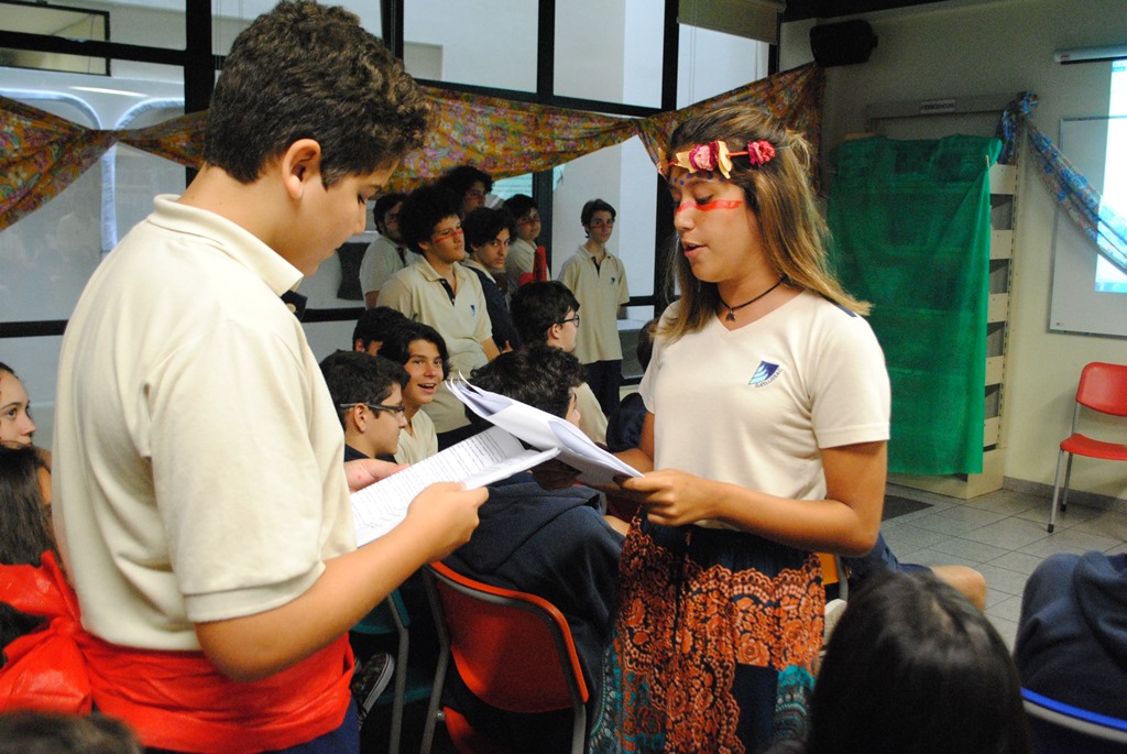 Quando o estudo de obras clássicas ultrapassa as paredes da sala de aula, a experiência literária dos alunos se torna muito mais rica. Foi ao ler Iracema, obra de José de Alencar, que a 1ª série do Ensino Médio decidiu colocar a história em prática. Com a professora Aline Bernar, a 1M2 adaptou o romance para teatro e encenou trechos da obra na Biblioteca, como parte da programação do Mês Literário.