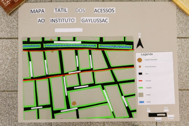Nossa escola participa pela 1ª vez da Olimpíada Brasileira de Cartografia (OBRAC). Um grupo de alunos da 1ª série do Ensino Médio, orientados pela professora de Geografia Isabel Gomes, alcançou a 2ª fase da competição, de tema “Somos todos refugiados”. O desafio da segunda fase incluiu pensar o bairro da escola sob outra perspectiva, indo a campo observar calçadas, ciclovias, faixas de pedestres e localização de árvores pelas vias, para criar um mapa sensorial com escrita em braile para pessoas de baixa visão e cegos. Aprender um novo código, pensar a importância da acessibilidade e da integração, também foram pontos trabalhados pelos alunos.