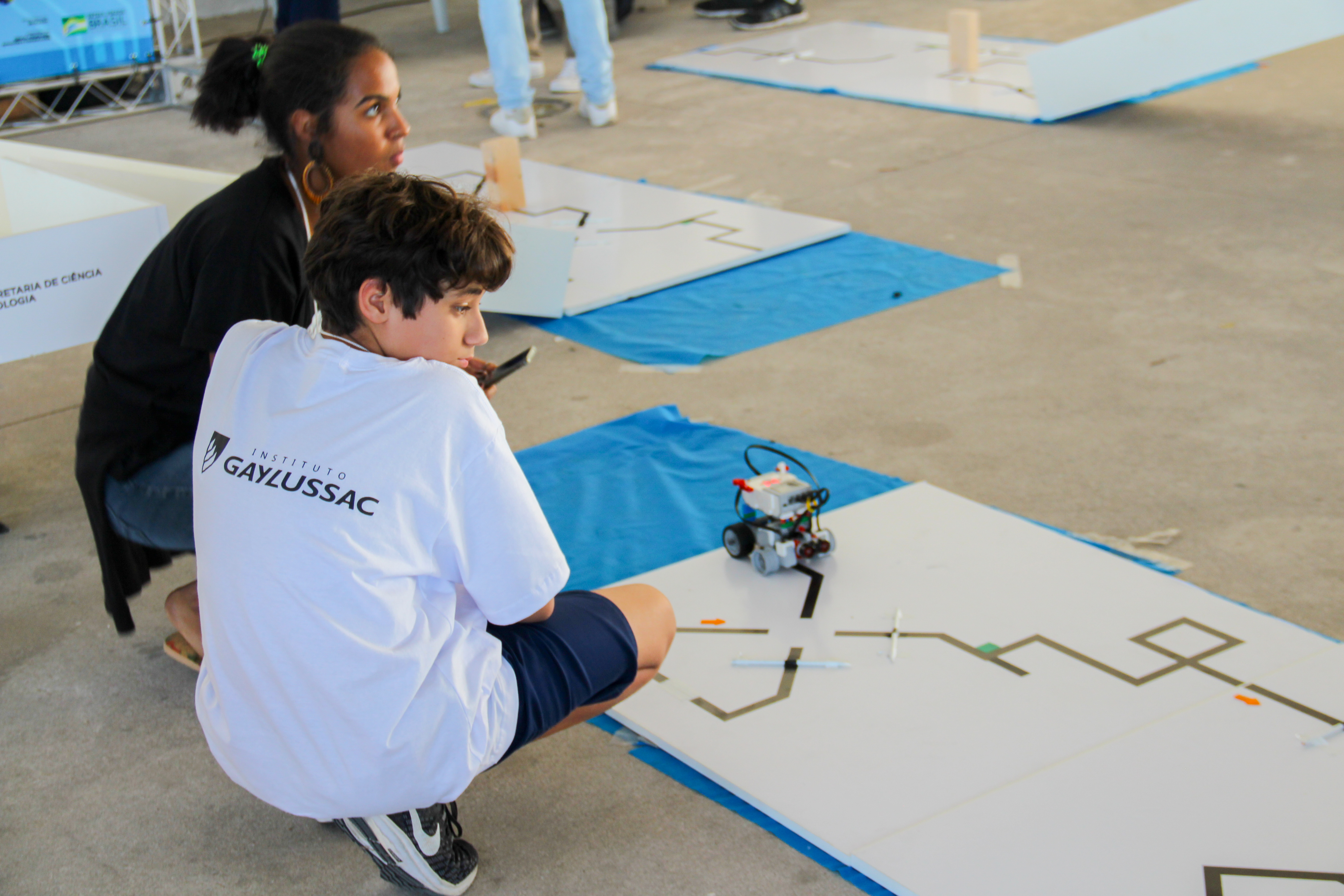 O desafio da OBR desse ano foi simular um resgate a vítimas presas em um local onde as equipes de busca não poderiam ir. Por isso, os alunos precisavam programar um robô forte e eficiente para subir rampas e desviar de obstáculos.