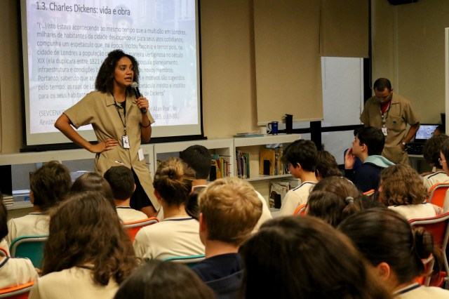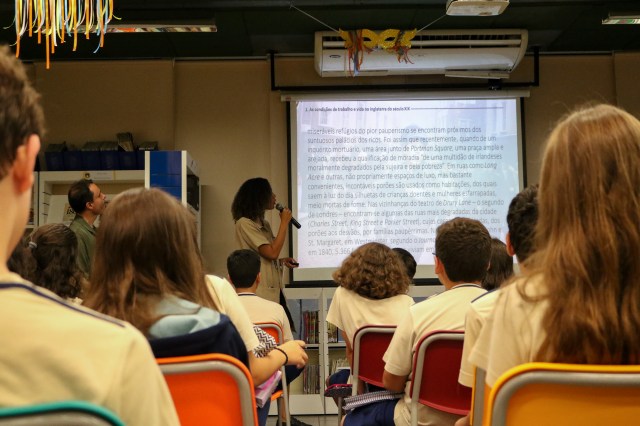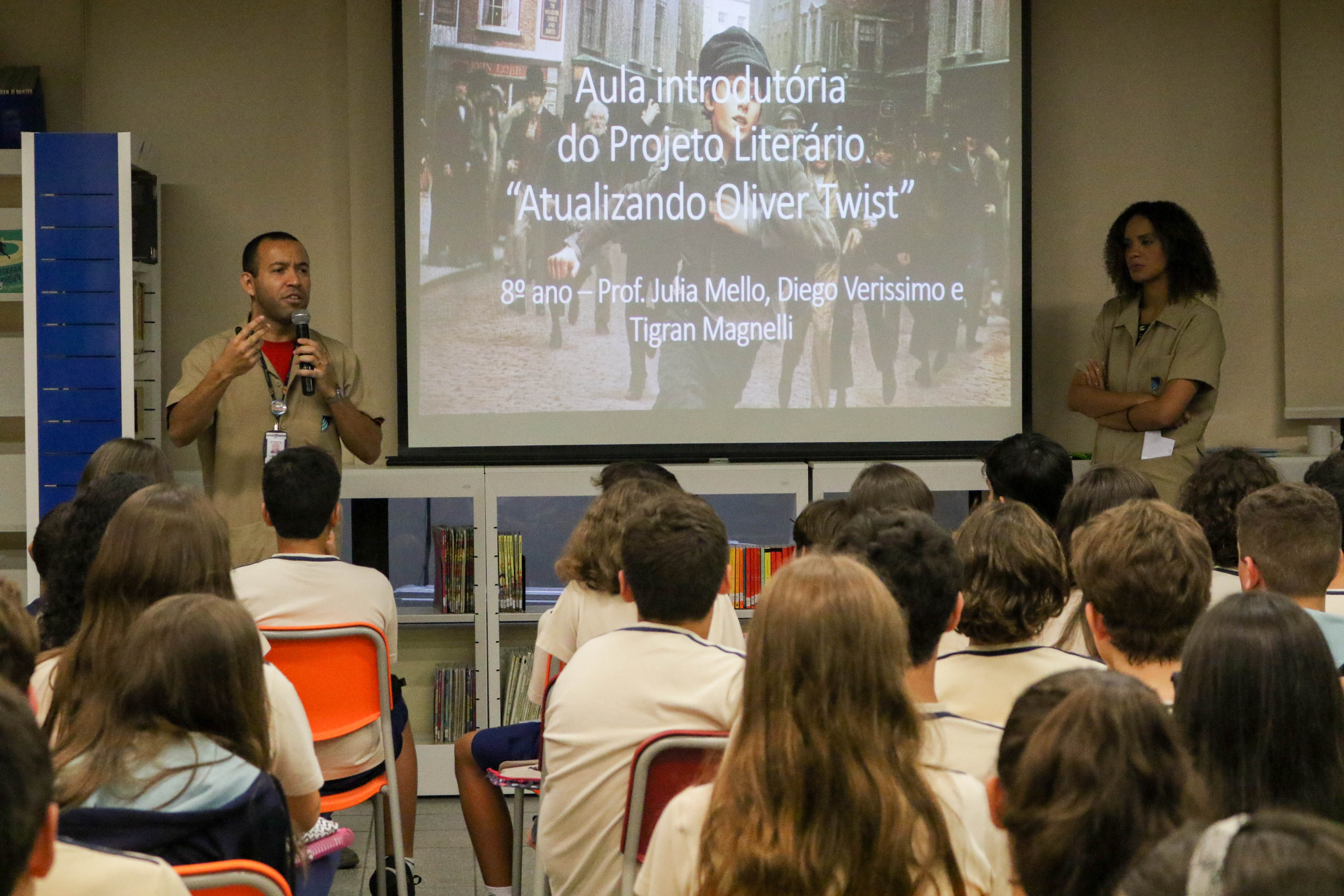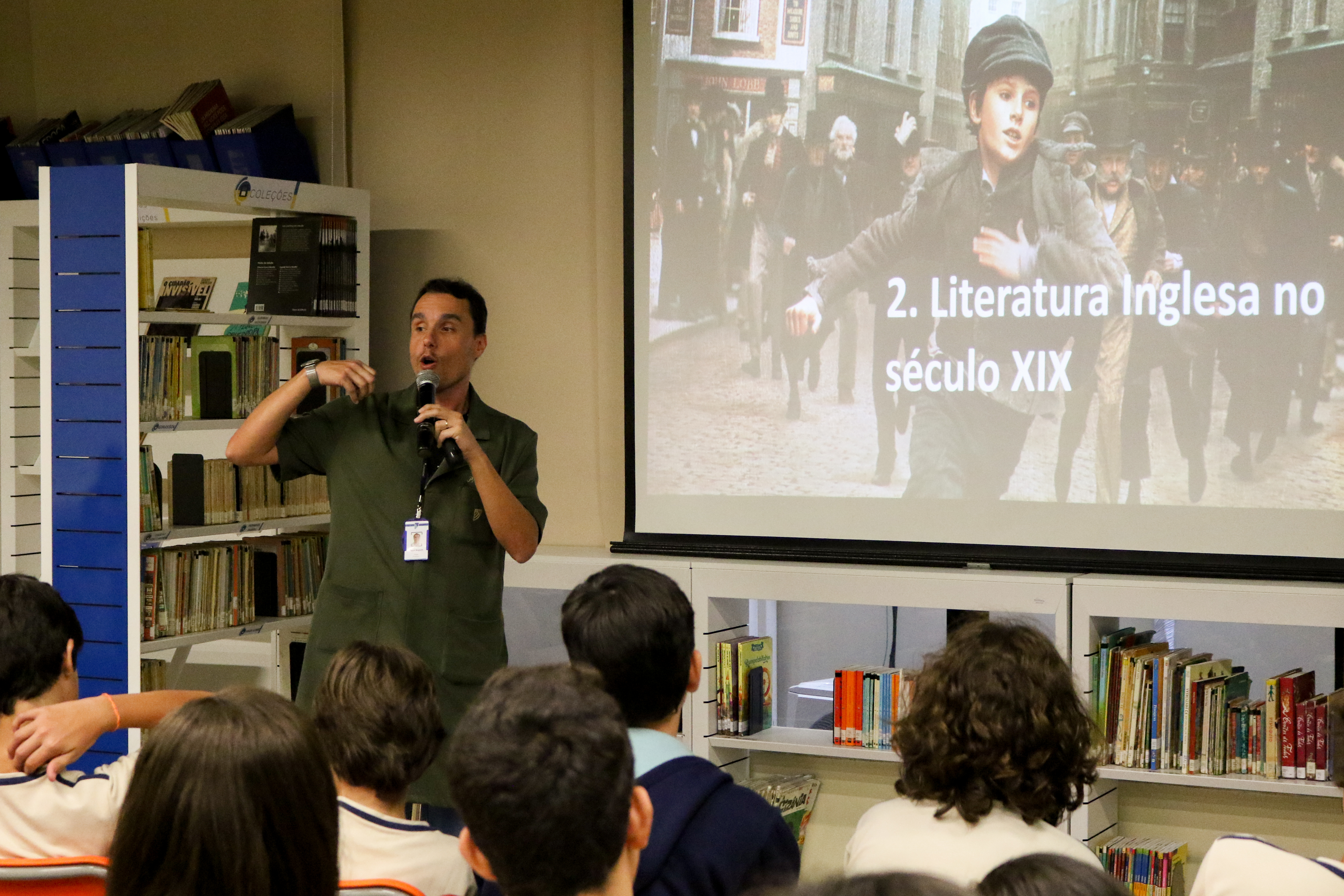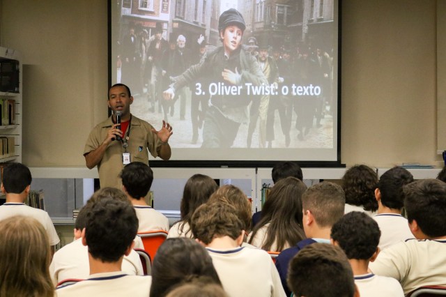 Muito além das linhas impressas, uma obra literária pode conter informações importantes sobre o contexto histórico, o imaginário social e a leitura do autor sobre a sociedade que o cerca. São enredos não explícitos no texto que levam o leitor a territórios mais profundos. Por isso, em fevereiro, os alunos do 8º ano do Ensino Fundamental, foram até a Biblioteca Sylvia Orthof ter uma aula interdisciplinar sobre o livro Oliver Twist, iniciando o Projeto Literário de 2019.