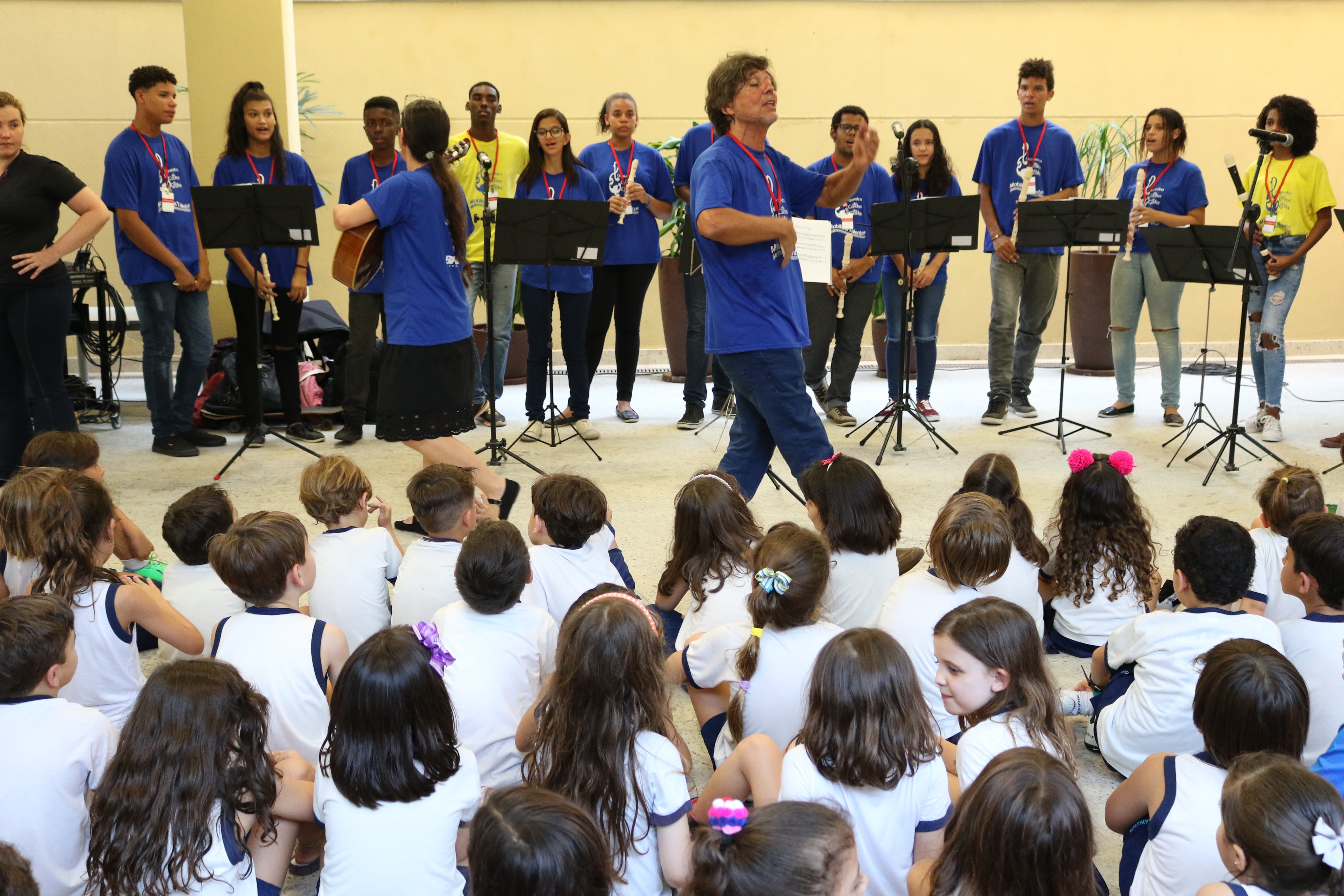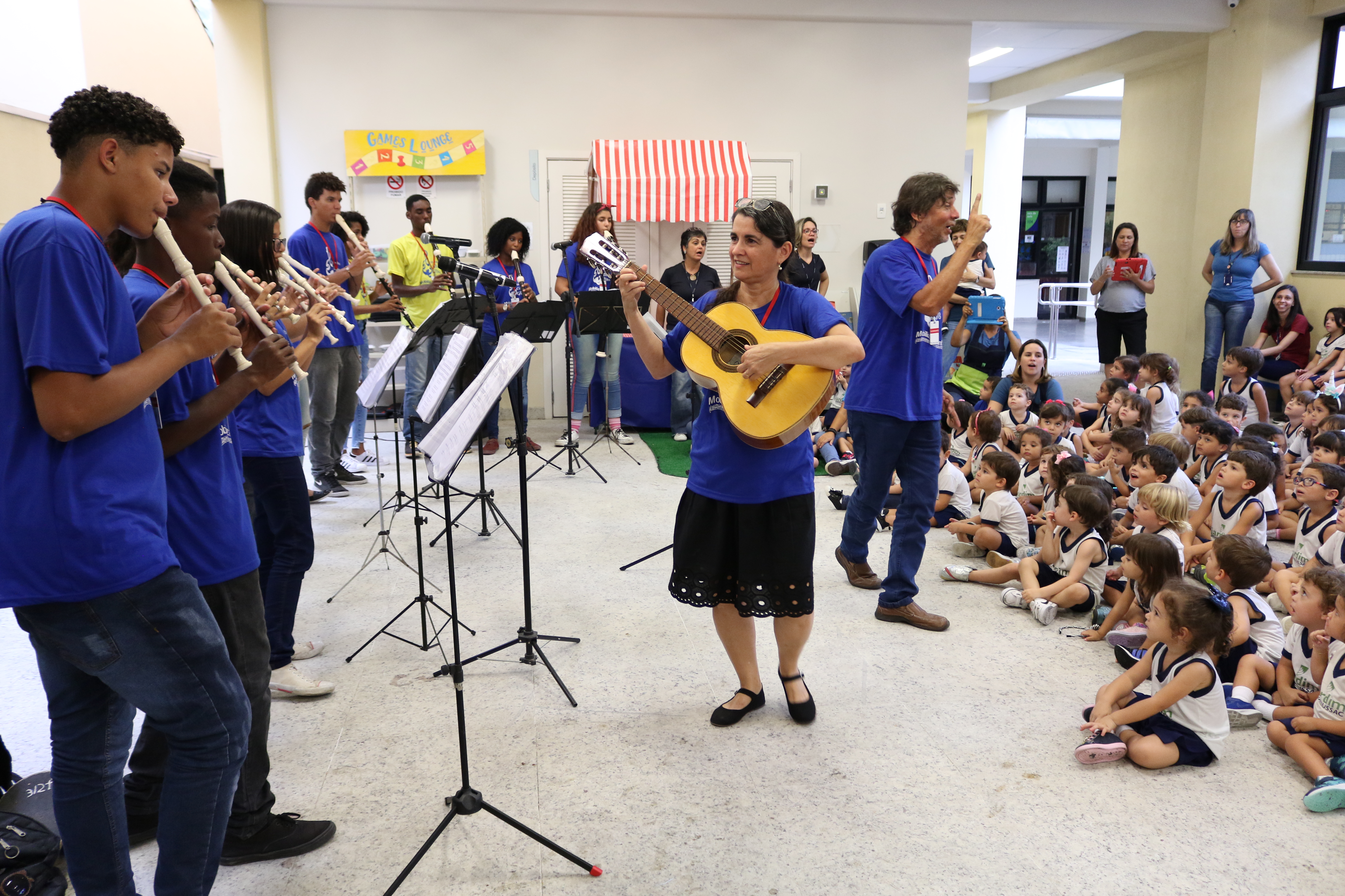Contamos com a presença da nossa parceira, Orquestra de Cordas da Grota, um projeto social que ensina música às crianças da comunidade da Grota do Sururu. Sob a direção de Lenora Mendes e Marcio Selles, os meninos da Grota apresentaram aos nossos pequenos do Jardim um repertório popular e diversificado