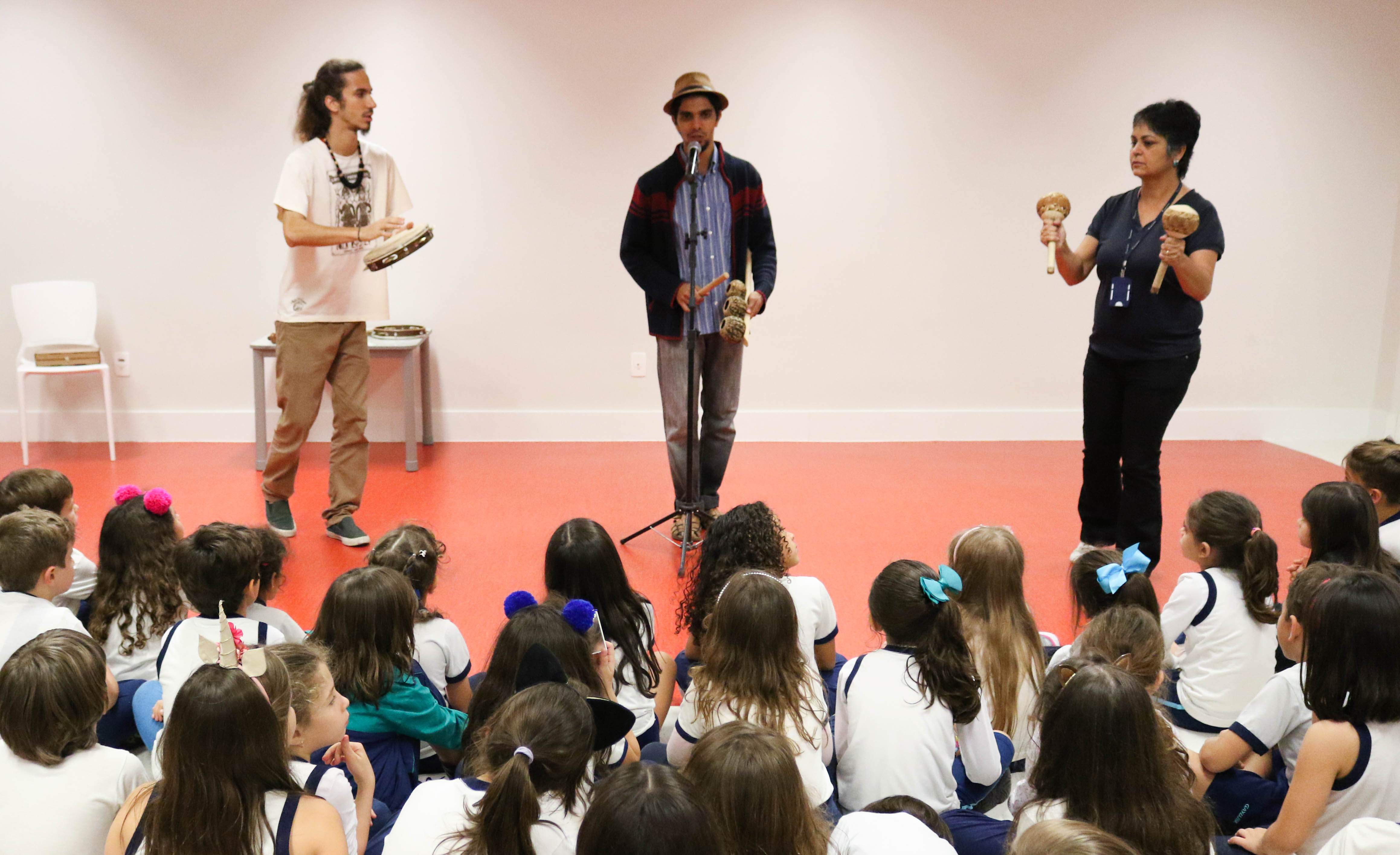 Durante a semana, os alunos também assistiram o Grupo Duo Rabecaria, entoando canções típicas do Nordeste, do forró ao baião. Na apresentação, nossa professora Claudinha incorporou o boneco de Olinda para animar a cantoria