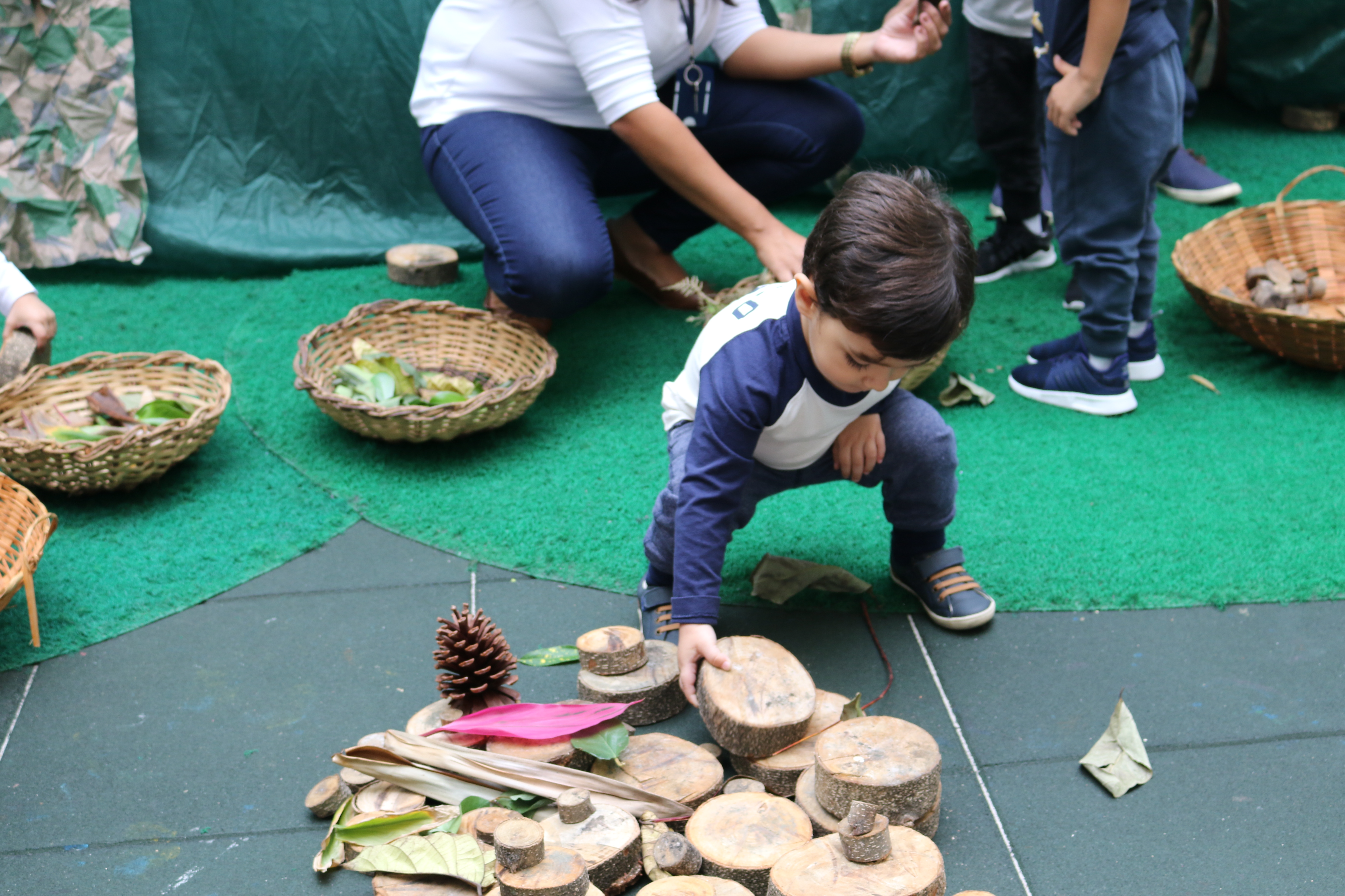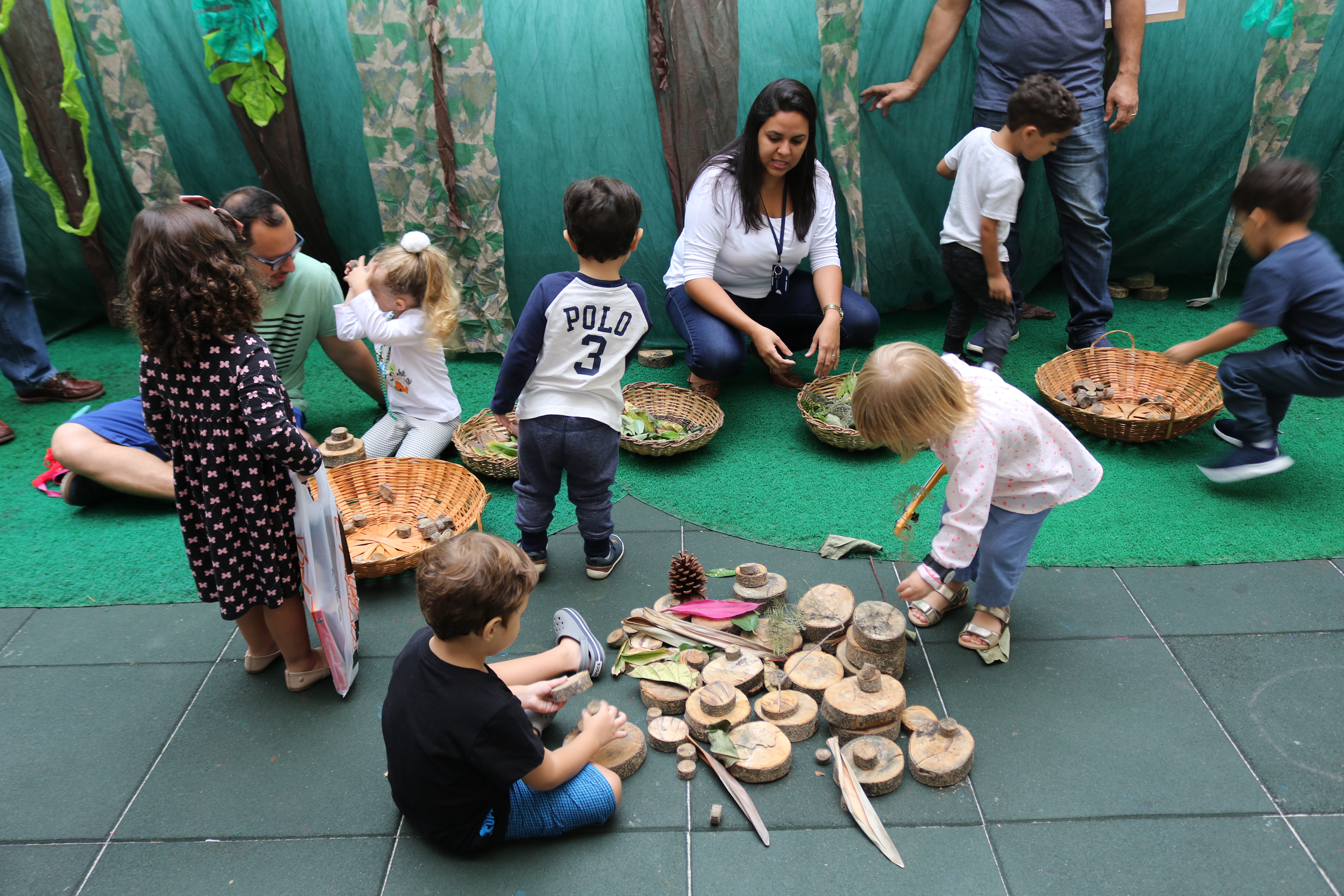 No pátio Lateral, o Jardim 1 revisitou a história da Cirgarra e da Formiga, modificando seu final. As formigas ensinaram as cigarras a trabalhar para nada faltar no inverno, em uma lição de união. A atividade envolvia as crianças em uma construção coletiva com elementos da natureza ]