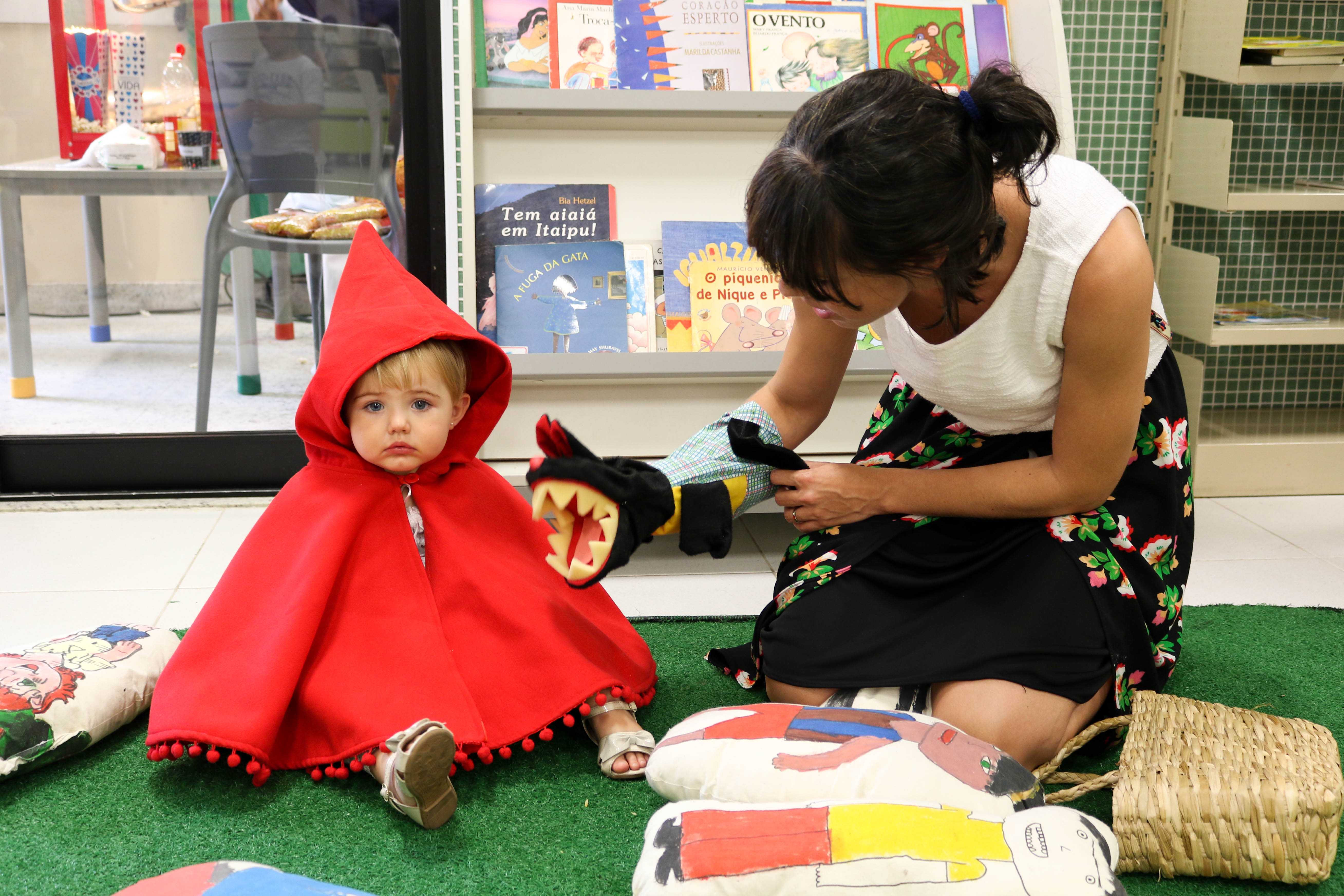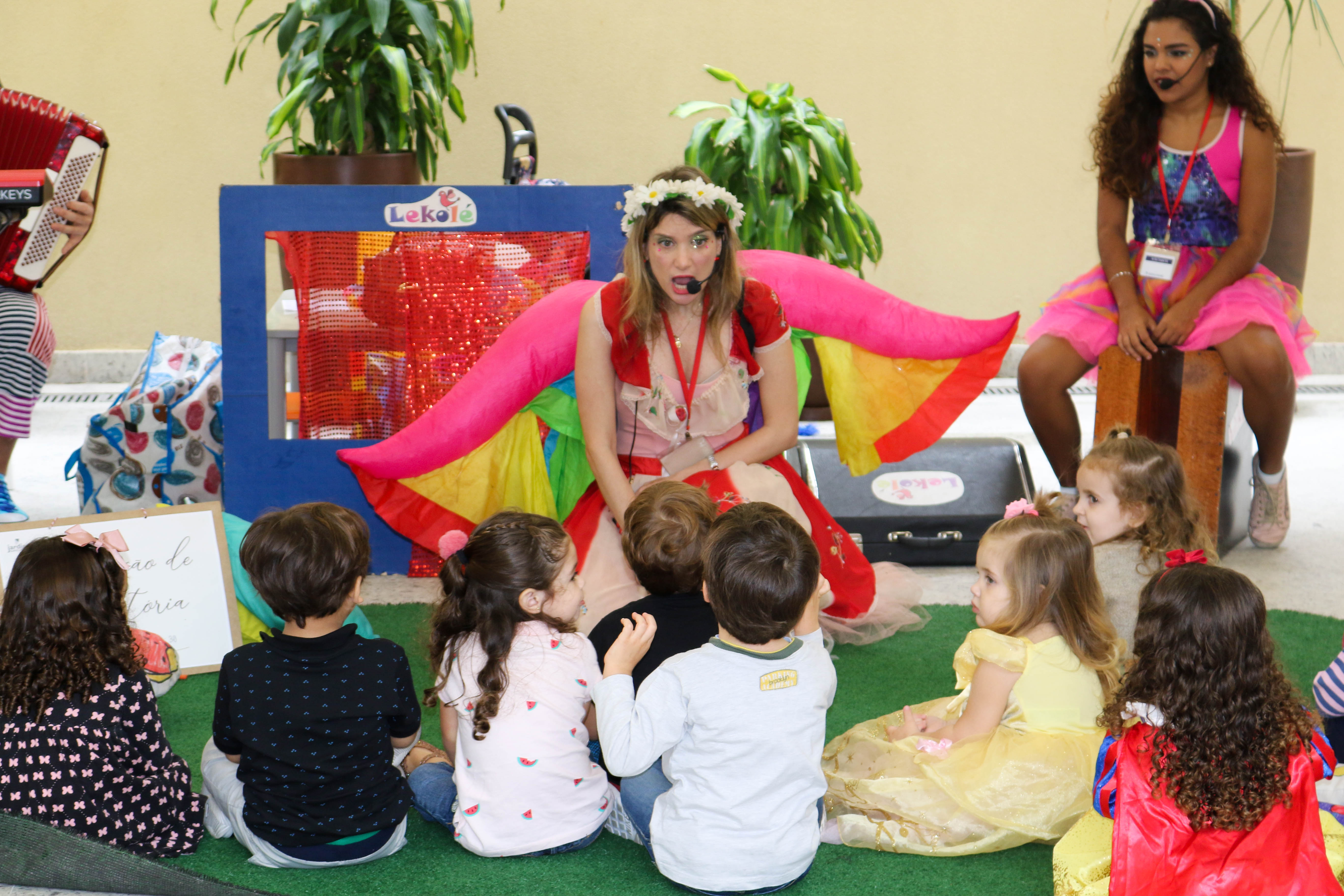 A Contação de Histórias foi animada pelo Grupo Lekolê, que contagiou a manhã com representações teatrais, canções infantis e muitas brincadeiras lúdicas